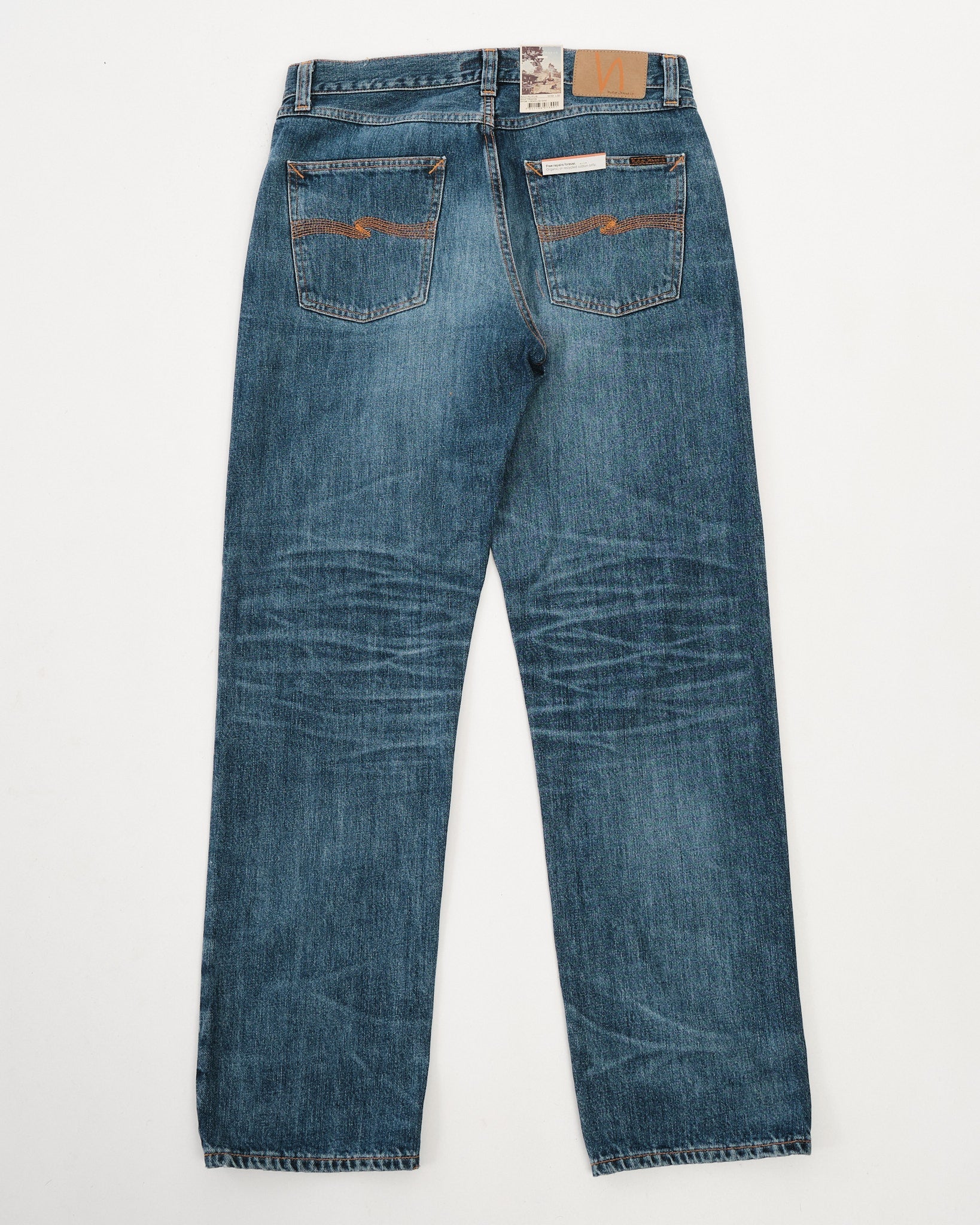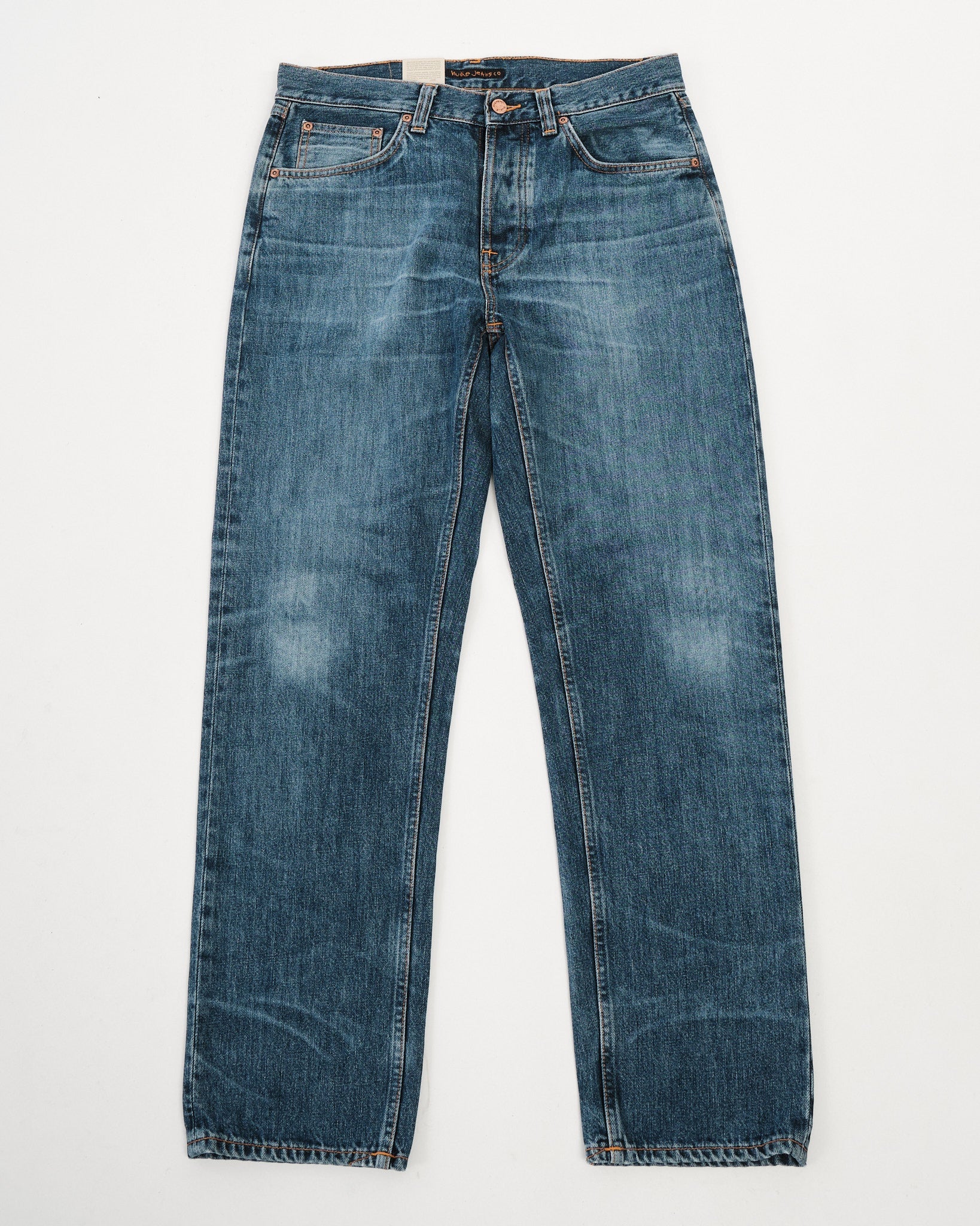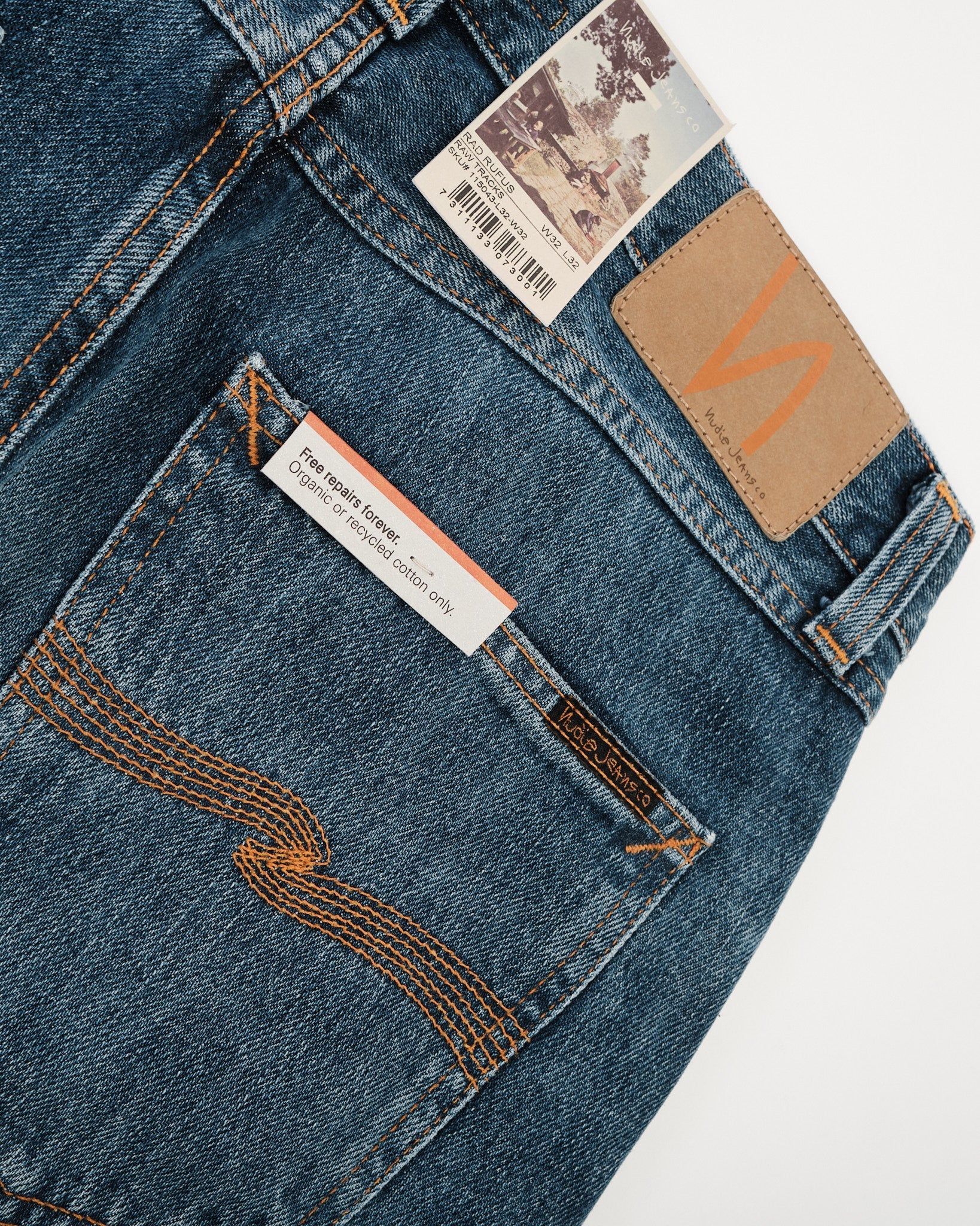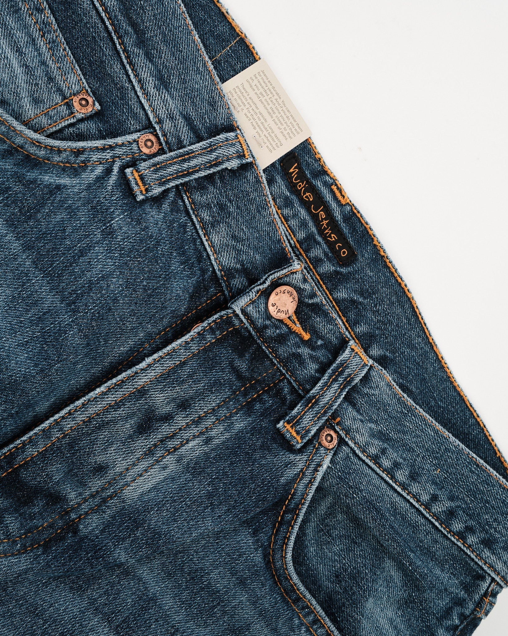 2. Autentisk gengivelse af slidte Nudie Jeans for et naturligt falmet look.