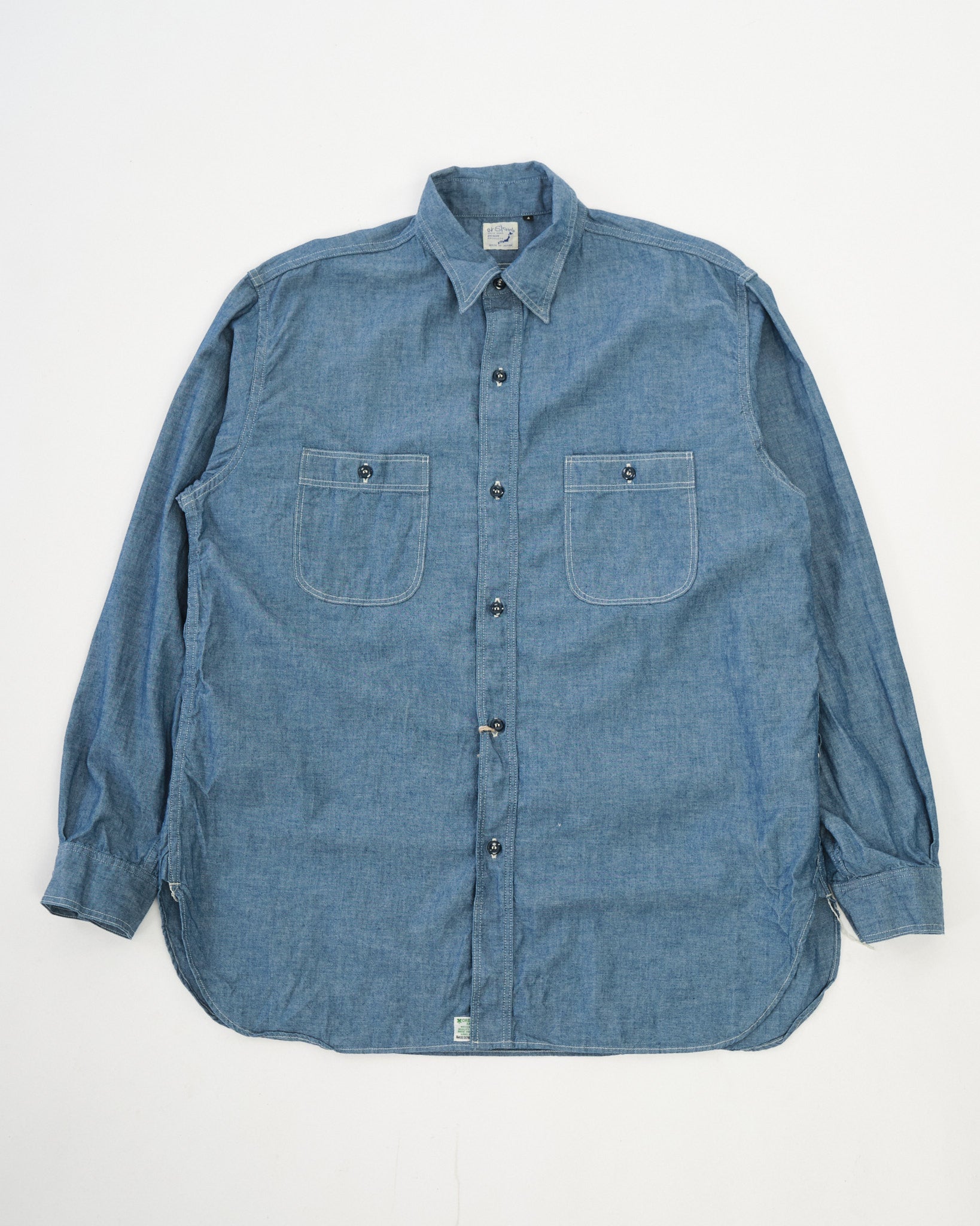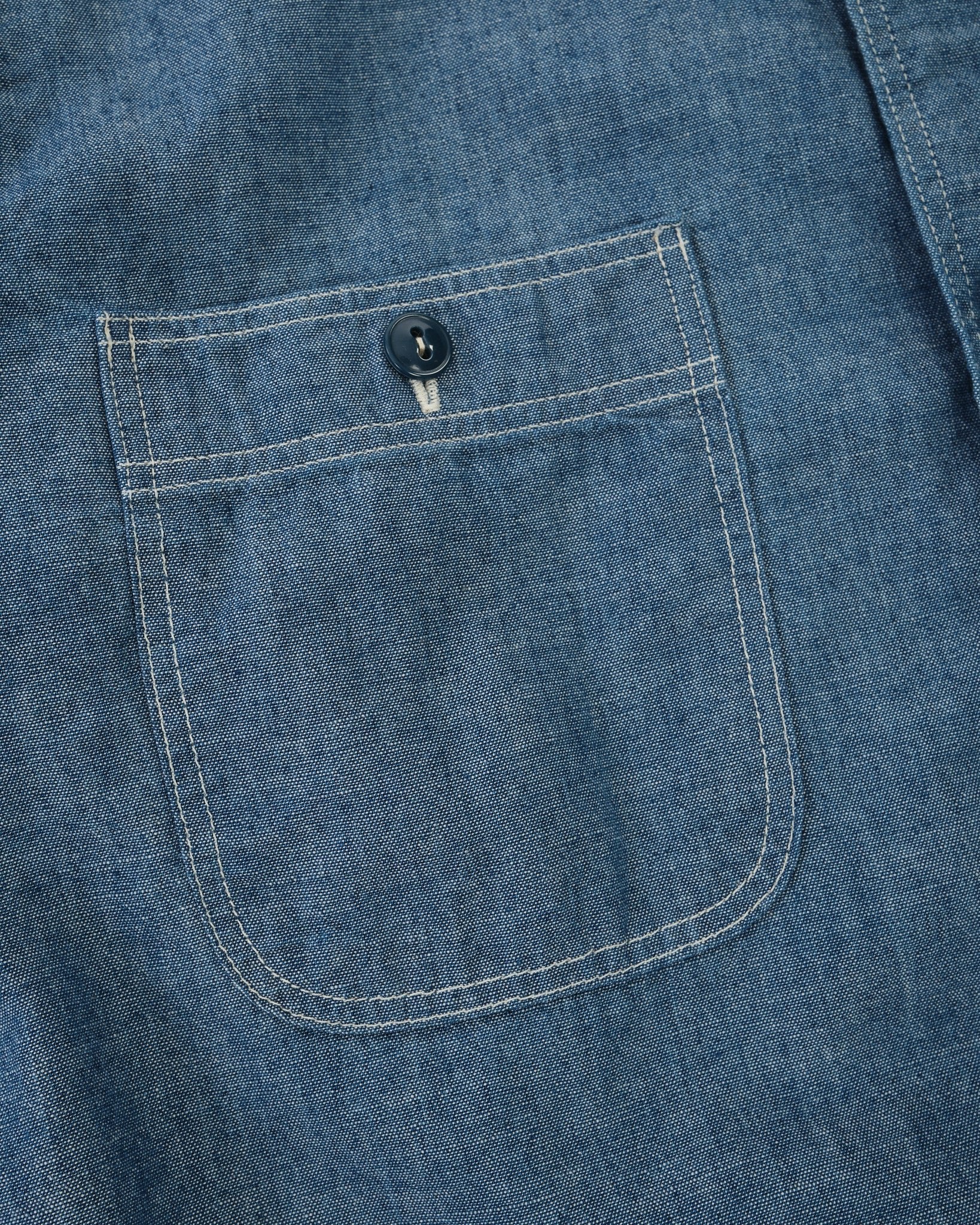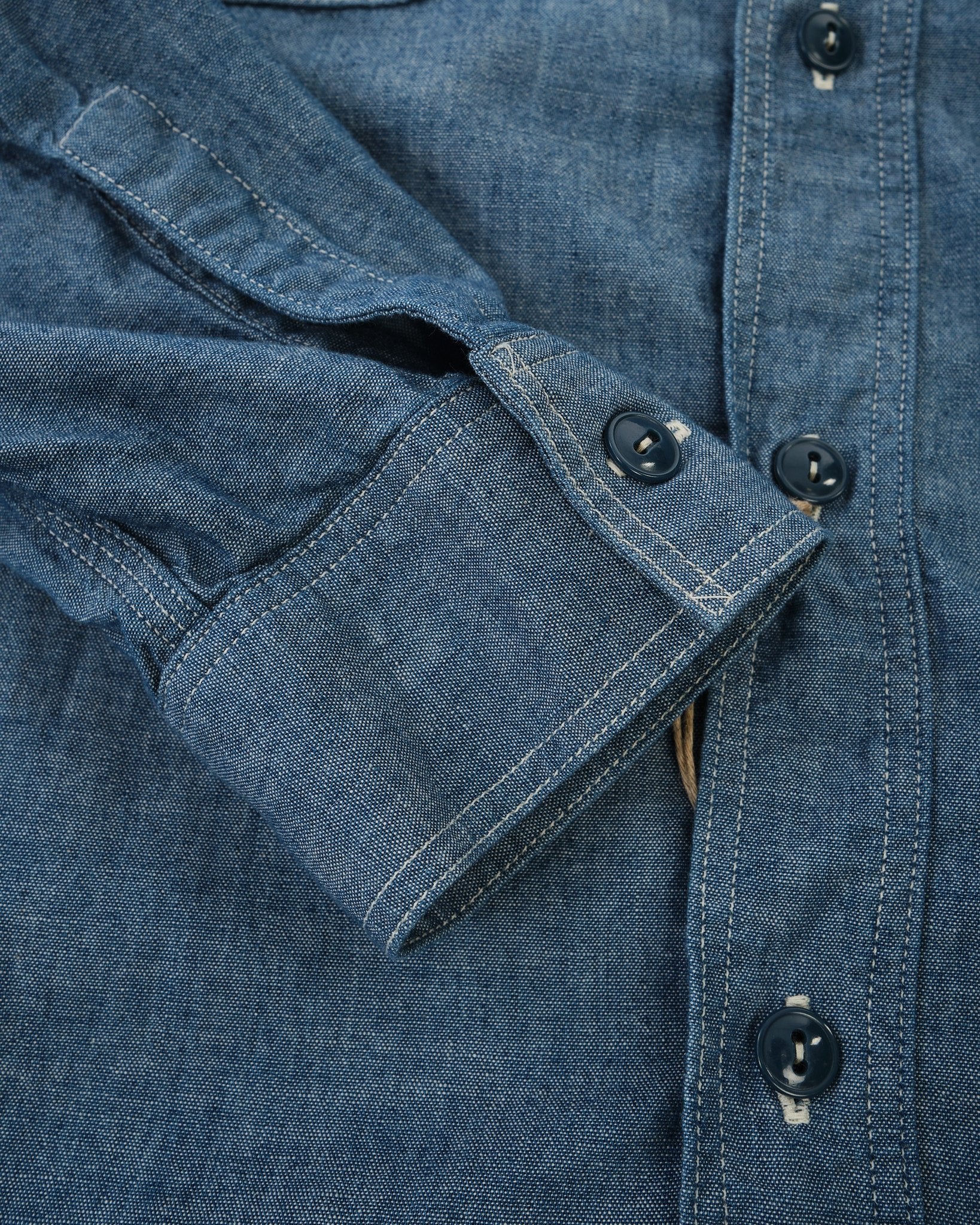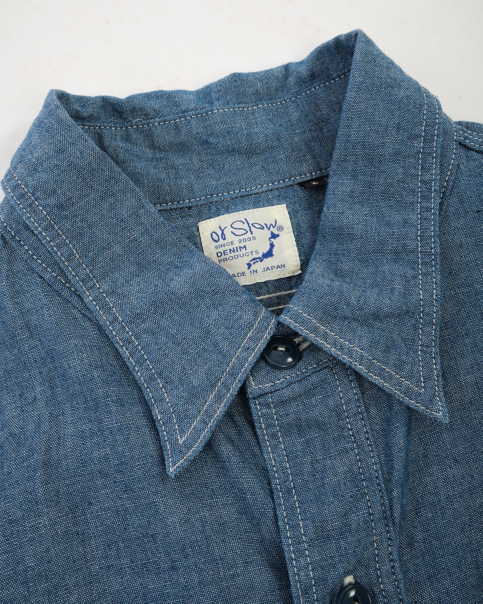 Den orSlow Relax Fit Chambray Work Shirt i Chambray er en moderne fortolkning af klassisk arbejdstøj, omhyggeligt fremstillet for at tilbyde både komfort og holdbarhed. Fremstillet af premium 100% bomuld chambray stof, giver denne skjorte en blød, åndbar fornemmelse, hvilket gør den ideel til brug året rundt.