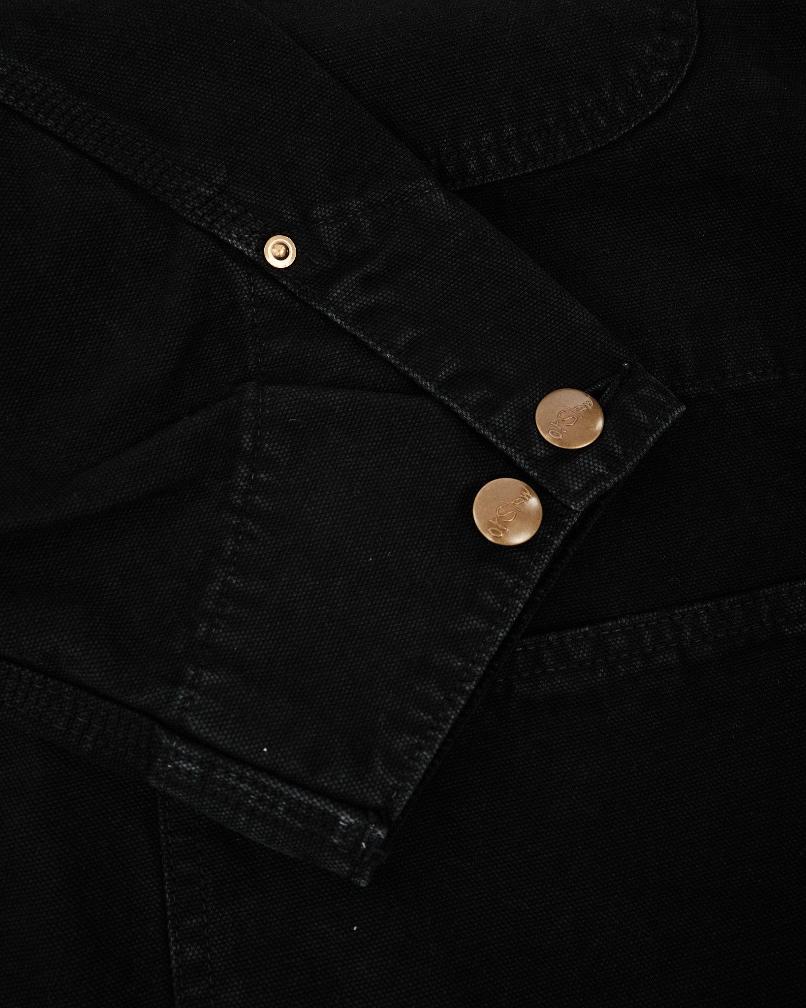 • Messingknapper for et klassisk, arbejdstøj-inspireret look