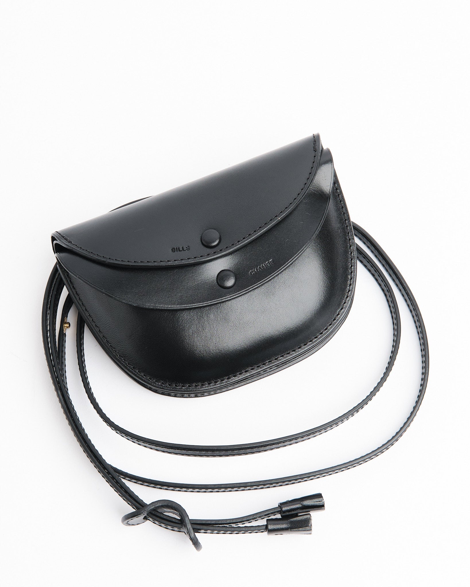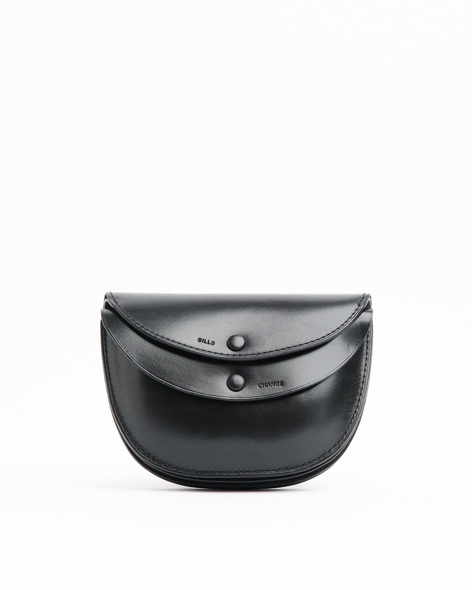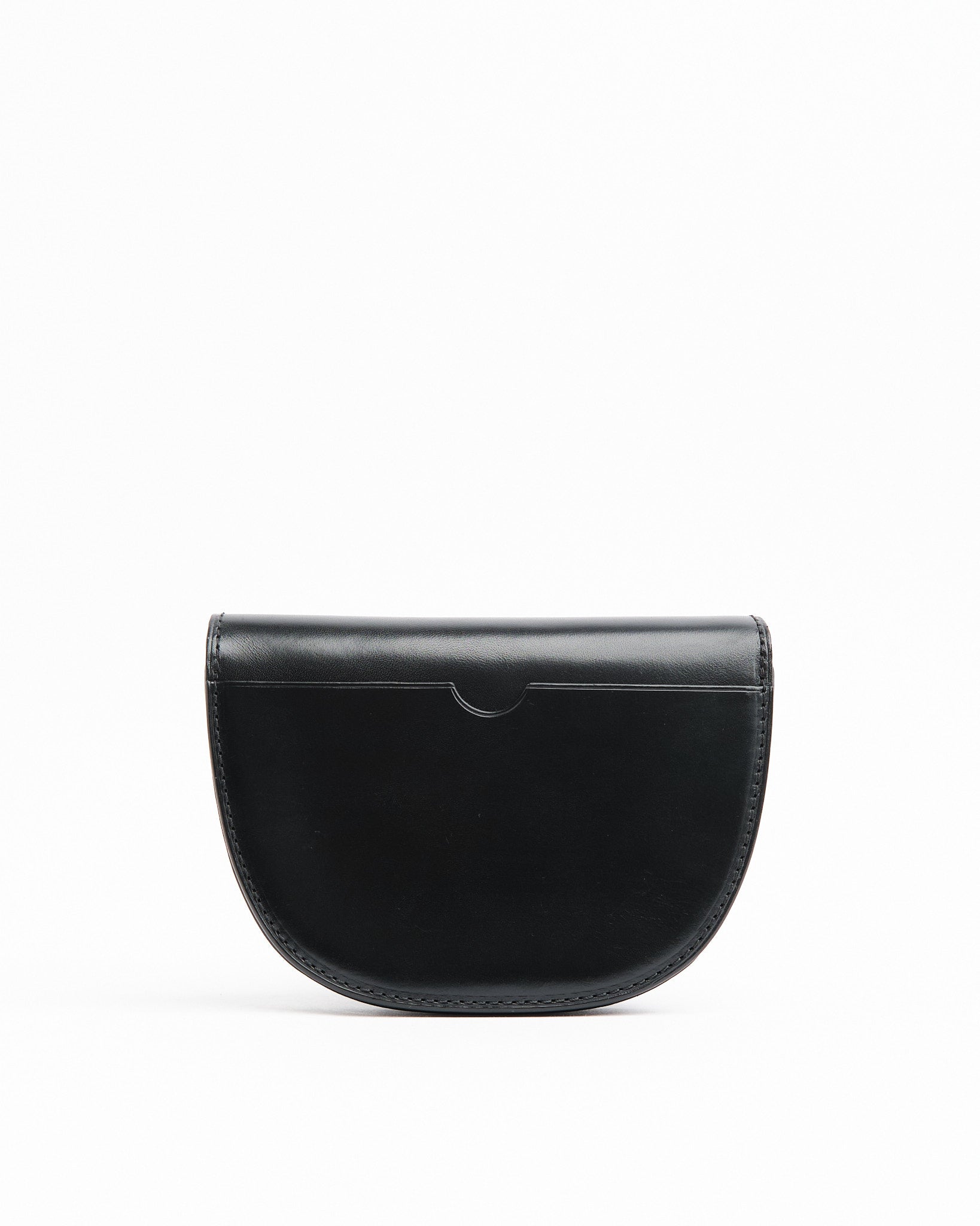 Tag et kig på Kaptain Sunshine Round Wallet Mid Porch i sort, fremstillet af italiensk kolecuir. Dette multifunktionelle stykke fungerer både som en pung og en taske med en klokkeformet lomme, til masser af opbevaring. Skift din stil ved at bruge skulderremmen for at opnå en blanding af bekvemmelighed og elegance.