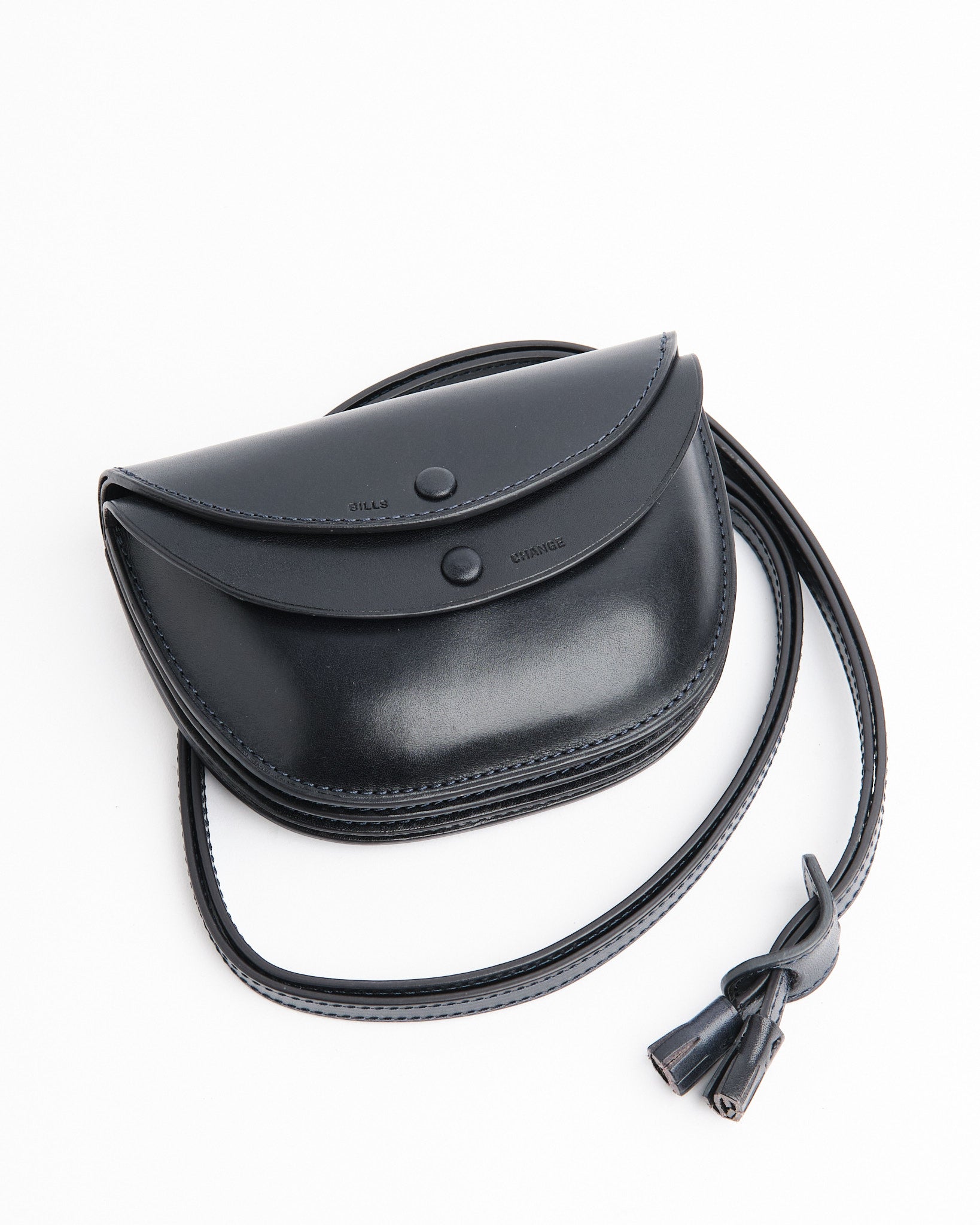 Alsiddigt design; omdannes fra en pung til en pose ved brug af et lædersnor.