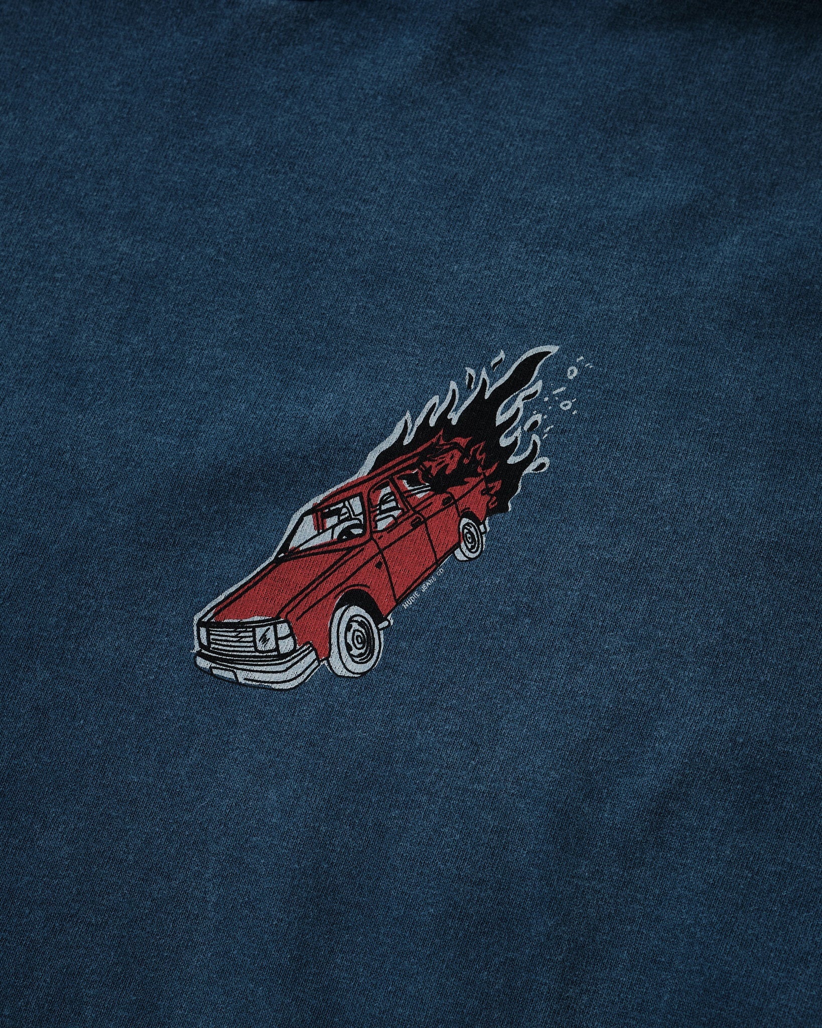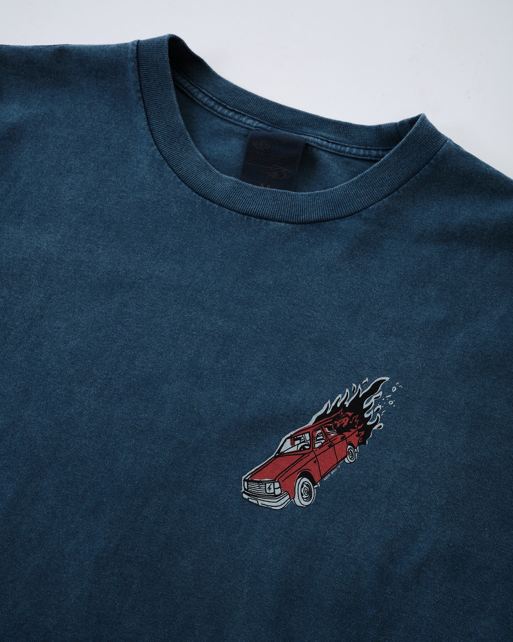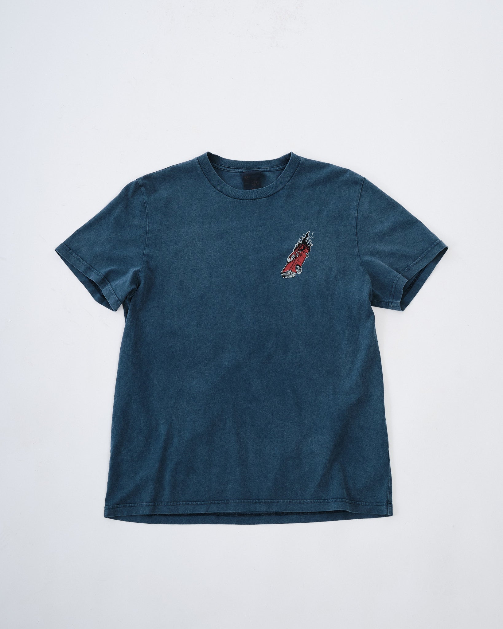 Den bløde kridhvide nuance opnås gennem garmentfarvning og en fade-out vask, hvilket giver t-shirten et naturligt brugt udseende, der passer perfekt sammen med denim. Over tid vil farven fortsætte med at falme, hvilket forbedrer dens vintage æstetik. Afsluttet med et brystprint, tilbyder denne t-shirt ubesværet stil med en tidløs, velbrugt charme.