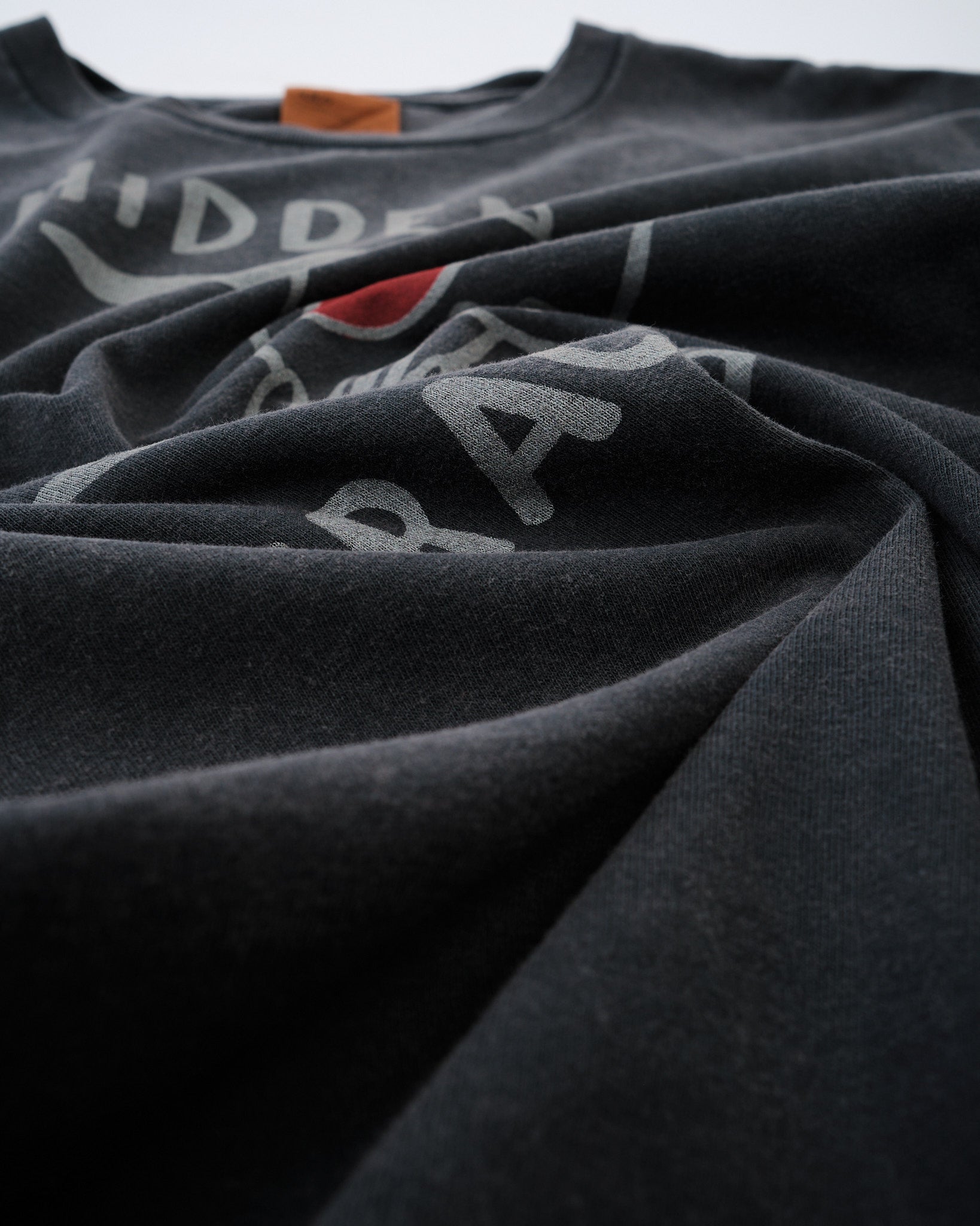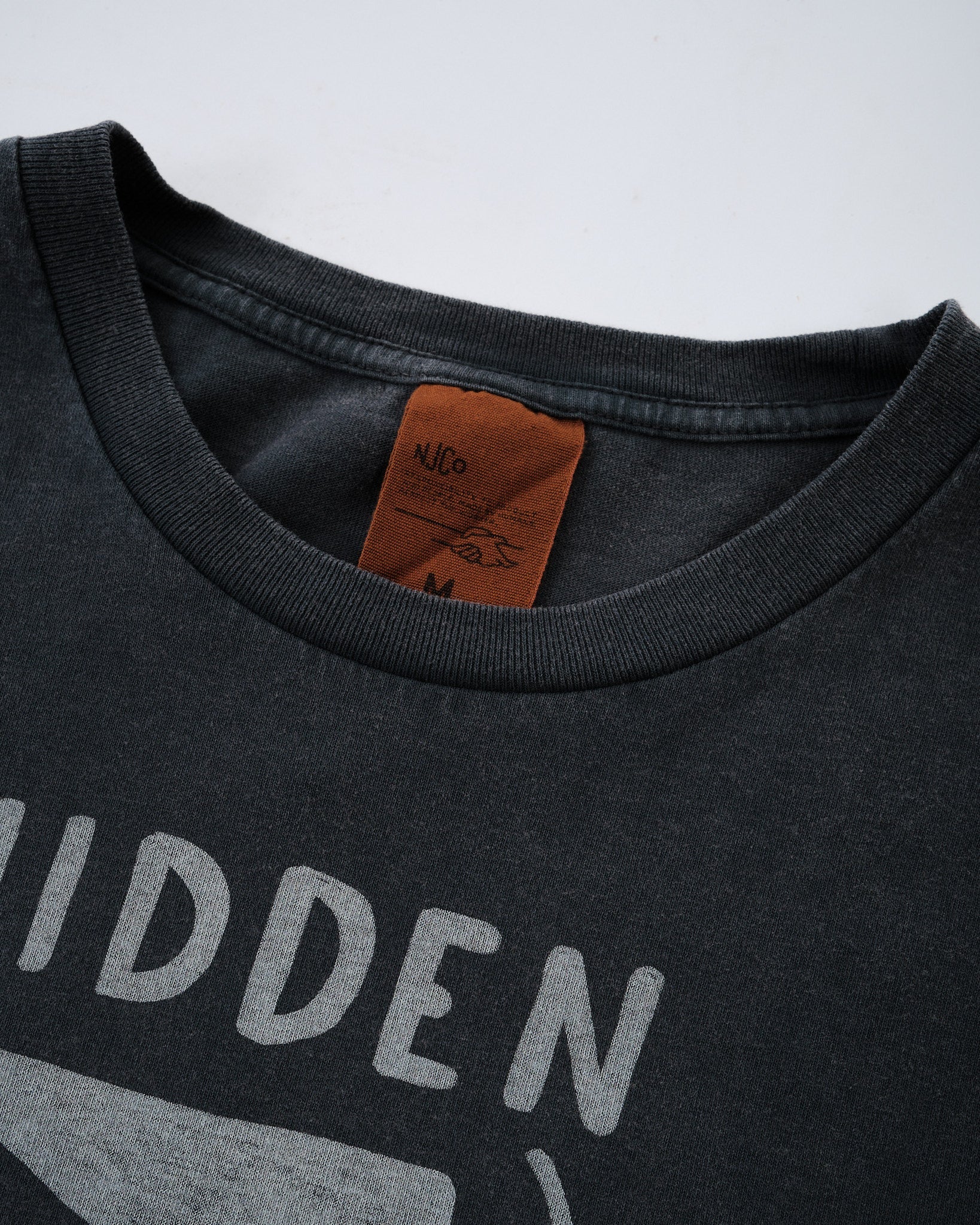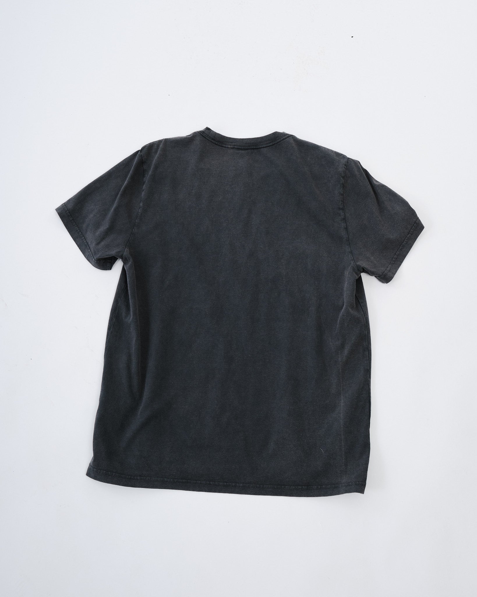 Den dybe antracitfarve er blevet garment-farvet og fade-vasket, hvilket forstærker dens naturligt levede udseende. Over tid vil farven fortsætte med at falme, hvilket gør den til det perfekte supplement til velbrugt denim. Afsluttet med et brystprint, blander denne t-shirt ubesværet stil med en udpræget vintage karakter.