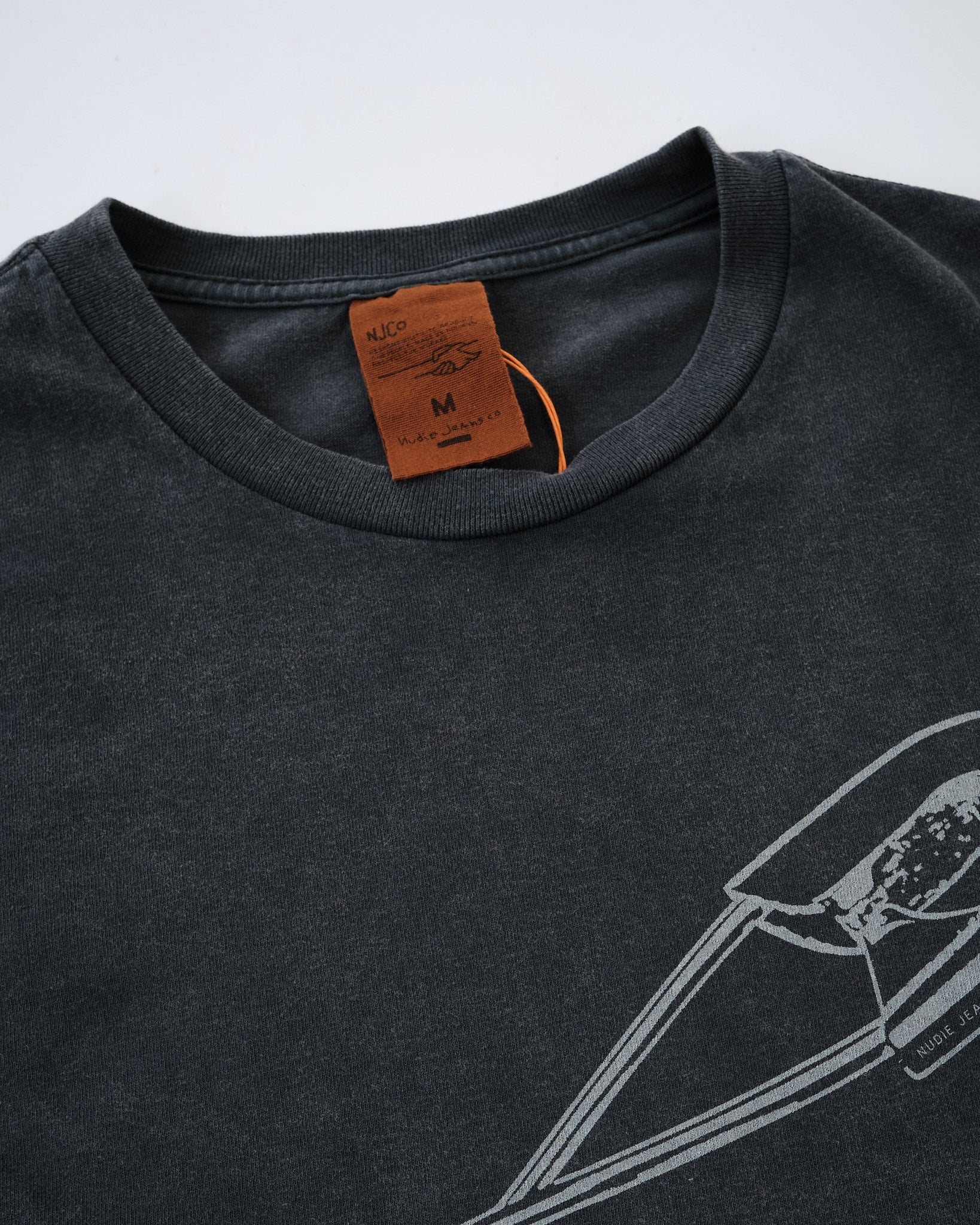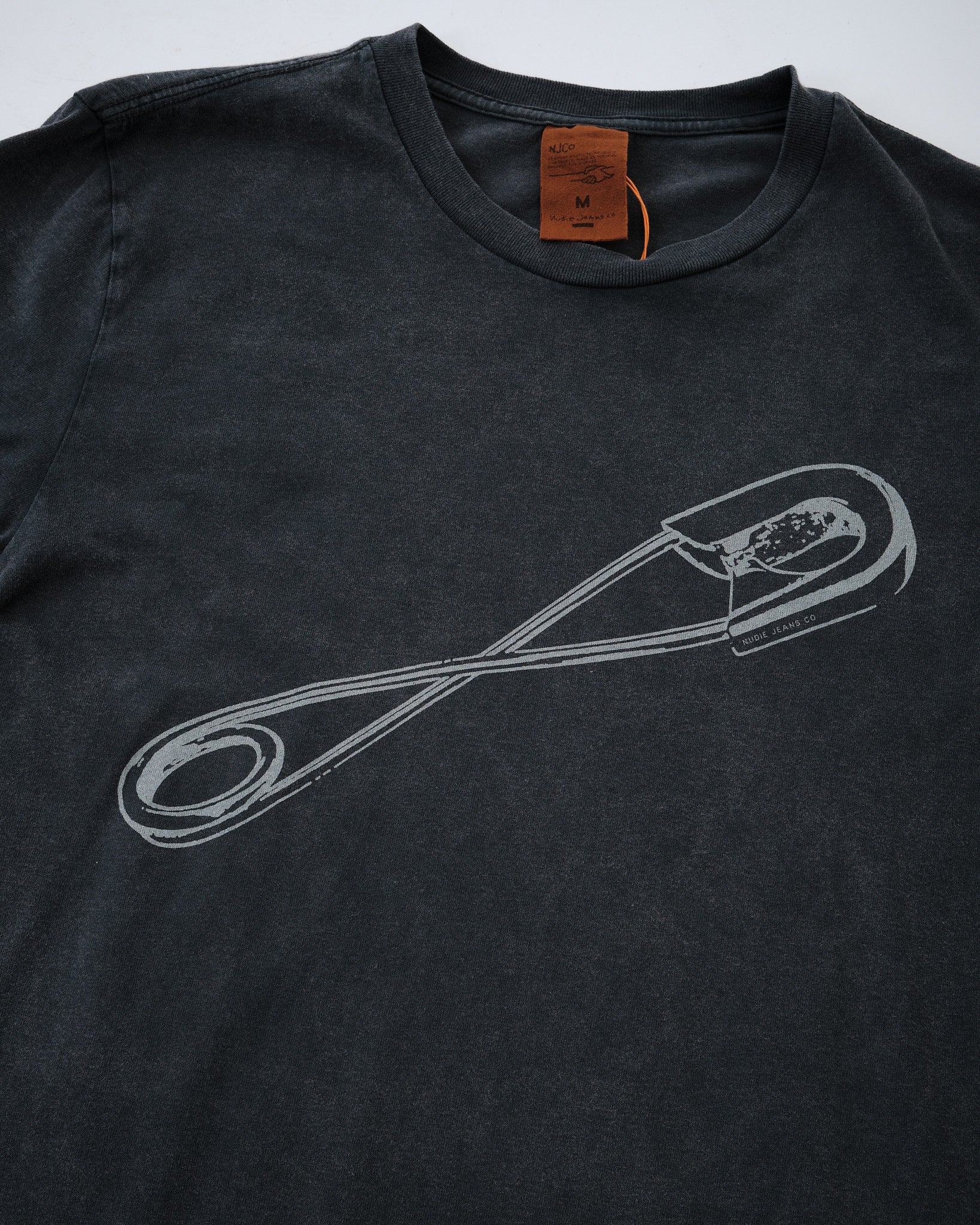 The NUDIE JEANS CO. ROY SAFETY PINFINITY T-SHIRT ANTRACITE er en vintage-inspireret rundhals t-shirt, designet til et naturligt brugt udseende. Fremstillet af 100% økologisk bomuld, den har open-end spundet garn, hvilket skaber en åben strikstruktur med en uregelmæssig tekstur, en tør håndfølelse og subtil hårighed.