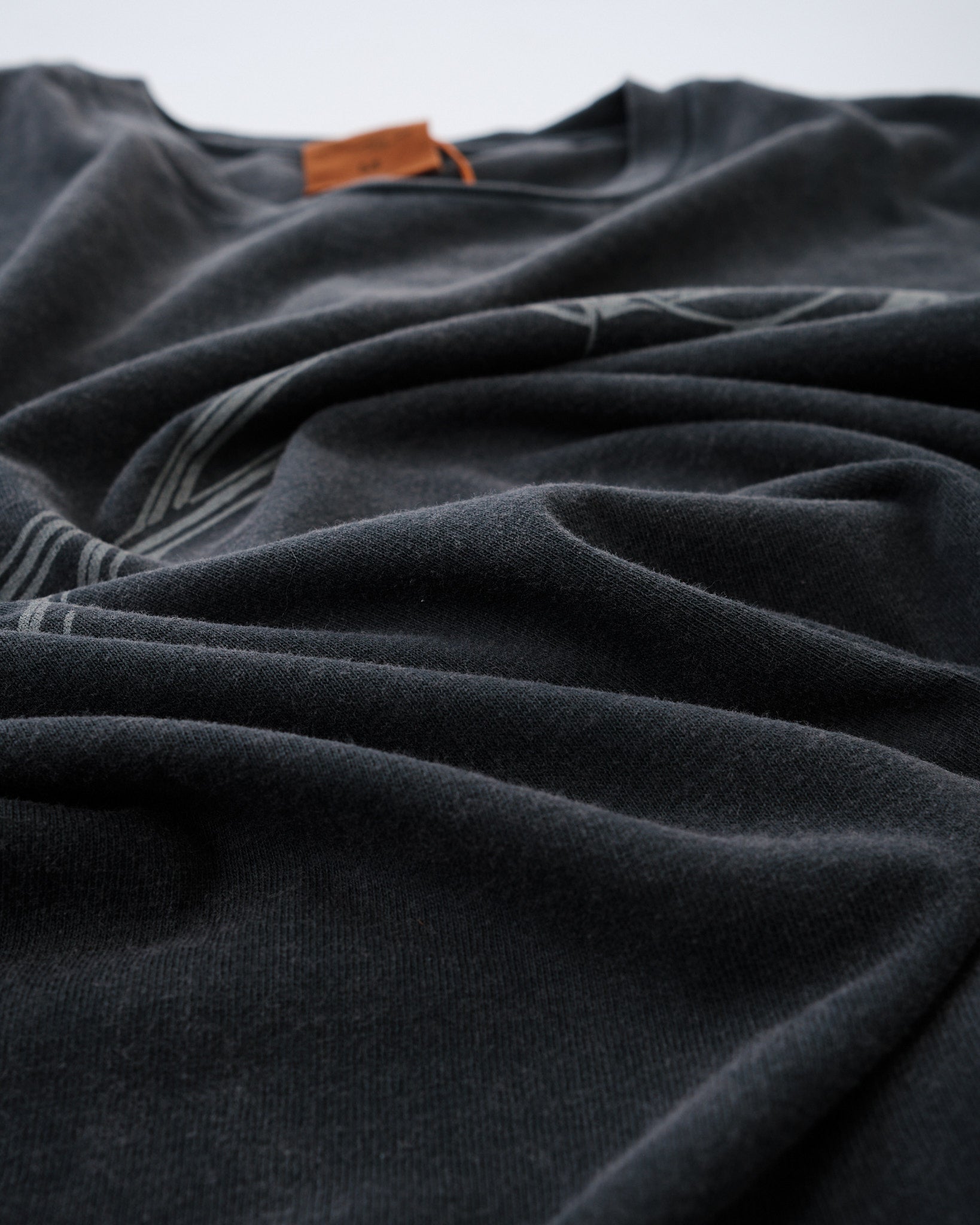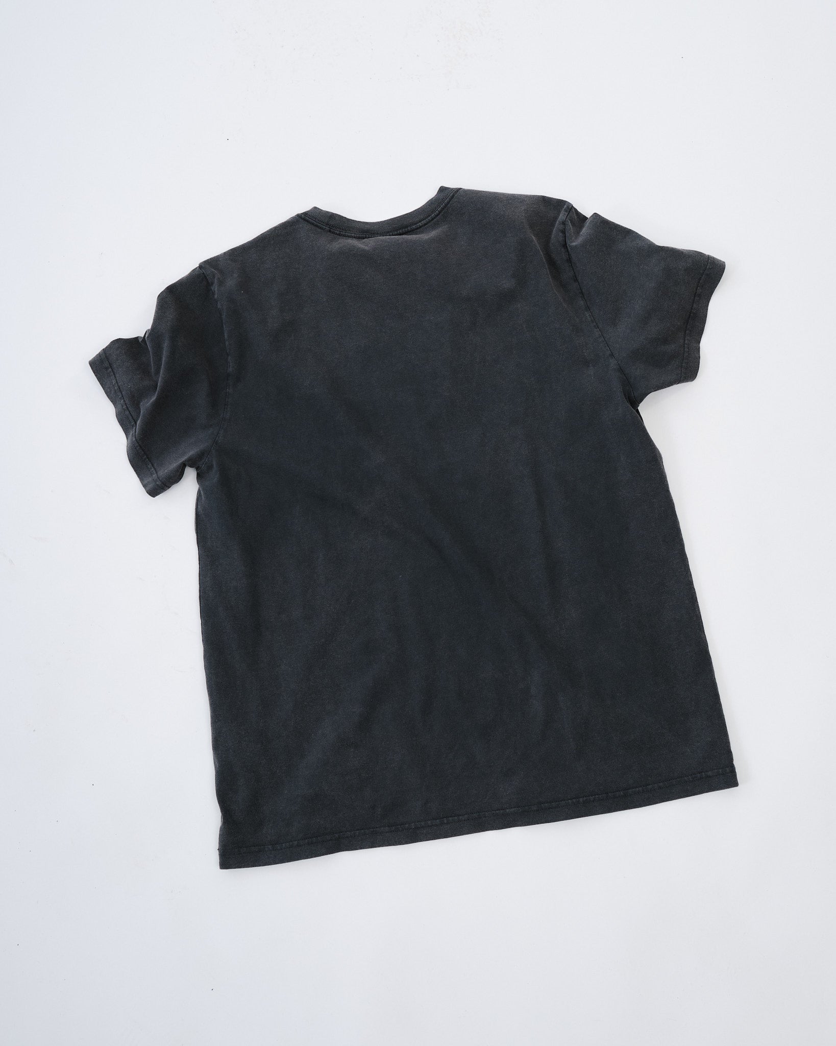 Den falmede antracit skygge opnås gennem garmentfarvning og en fade-out vask, hvilket resulterer i et unikt brugt æstetisk udseende, der nemt kan kombineres med denim. Over tid fortsætter farven med at falme, hvilket yderligere forstærker det vintage appel. En brystprint detalje fuldender looket, hvilket gør denne t-shirt til en perfekt blanding af afslappet stil og tidløs karakter.