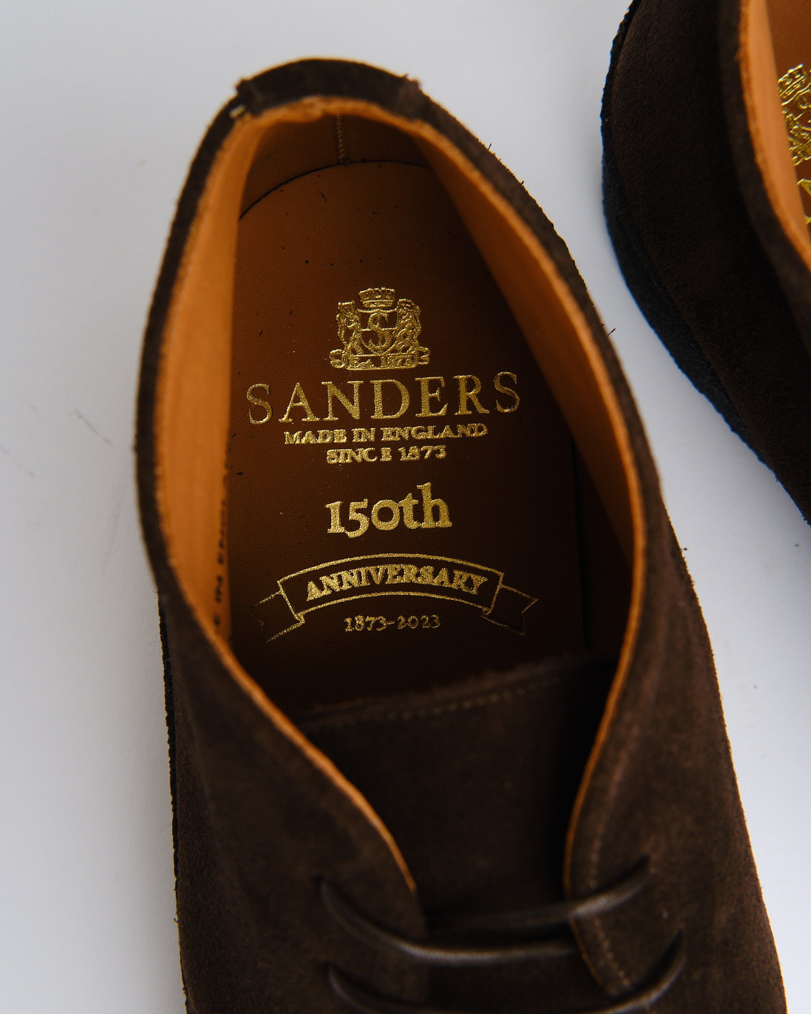 Træd ind i sofistikationens verden med SANDERS SAM Chukka Støvlen i PINNER CHOC SUEDE. Disse støvler smukt legemliggør tidløs modecharme og eksemplificerer Sanders rige arv. Omhyggeligt håndlavet i Northampton, England, praler de af en overdel i chokoladefarvet ruskind og en crepesål, der sikrer yderste komfort. Denne ikoniske stil har ikke kun vundet anerkendelse fra det britiske hær, men også fra entusiaster i Japan, der ubesværet blander traditionelt håndværk med nutidigt design. Hvert par tjener som et vidnesbyrd om Sanders urokkelige engagement i præcision, hvilket kræver omkring 180 trin under dens håndlavede skabelsesproces.
