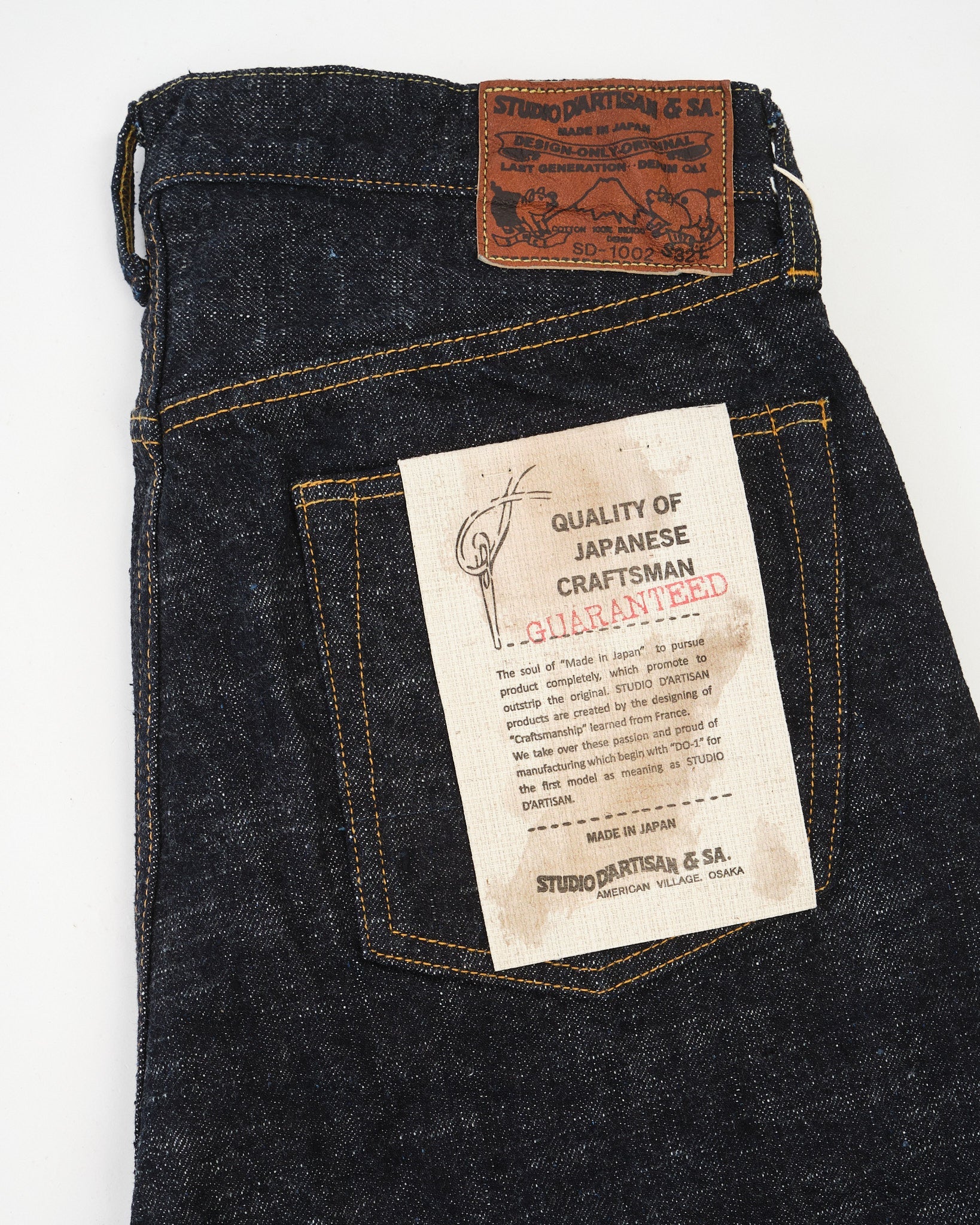 Den SD-1002 fra Studio D’Artisan er en fejring af langsomt denim gjort rigtigt. Vævet fra deres 15oz GL3 denim, er hvert element—fra slub garn form til reb-farve mætning til slag tælling—nøje justeret for at fremhæve stoffets uregelmæssige, udtryksfulde tekstur.