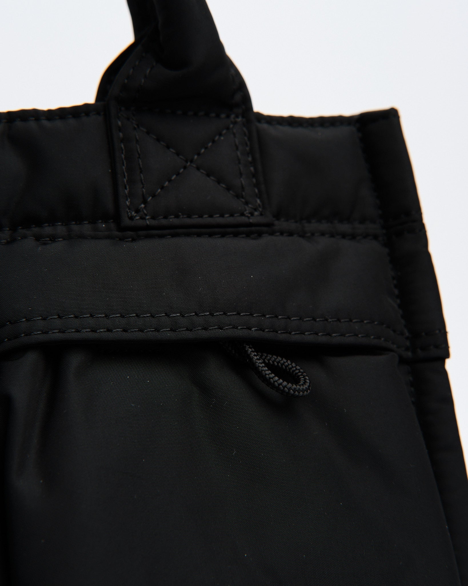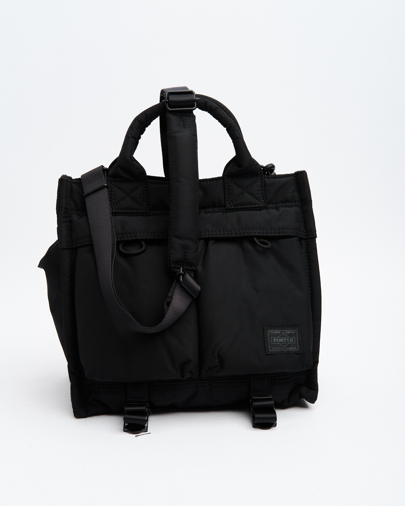 Den dybe matte sorte farve tilføjer et elegant touch, hvilket gør denne taske alsidig til både afslappede og formelle outfits. Praktikaliteten er forbedret med hurtig-åbne for- og sidelommer, der nemt kan åbnes med bare en finger. Slingebinderen i bunden gør det muligt sikkert at bære tøj og personlige genstande med lethed.