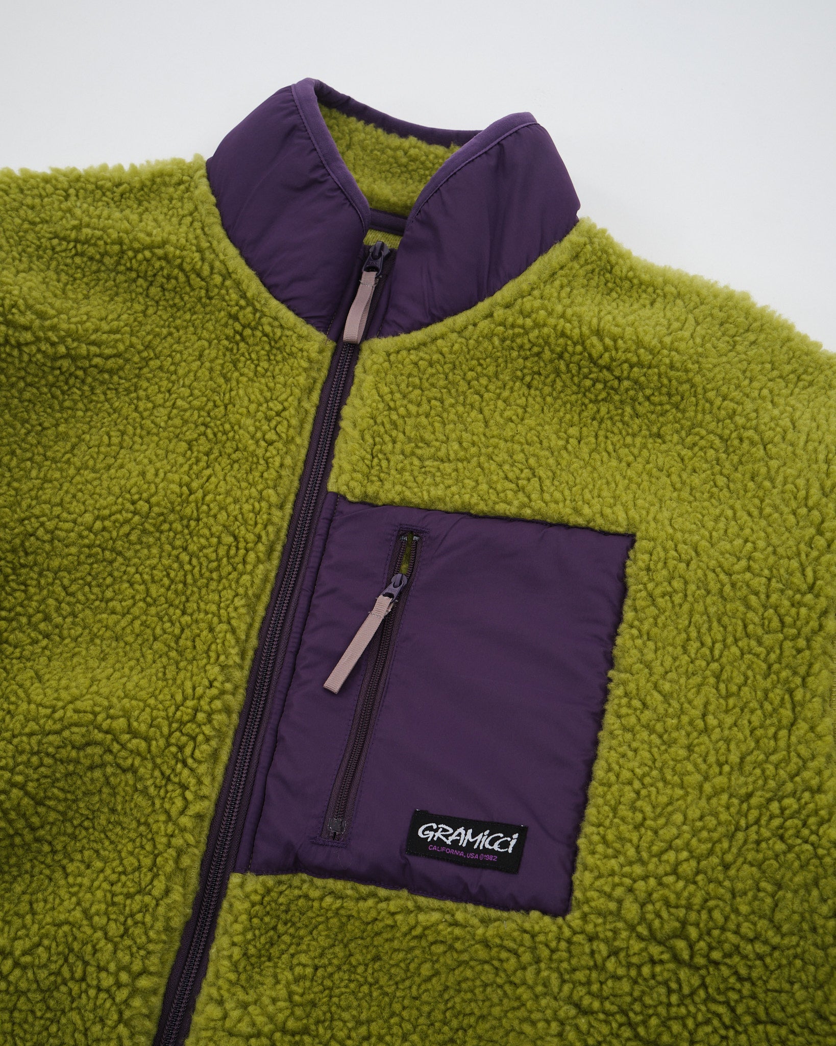 Præsentation af Sherpa Jacket G3FU J061 fra Gramicci - en hyggelig jakke designet til at give både beskyttelse og stil under temperaturer. Fremstillet helt af Sherpa Fleece har denne jakke en silhuet, der sikrer en pasform, der gør det nemt at lægge lag på. Udstyret med elementer, som tre lommer og strækbindetape, kan du stole på denne jakke til at holde dig varm, samtidig med at dine væsentlige ting holdes sikkert.