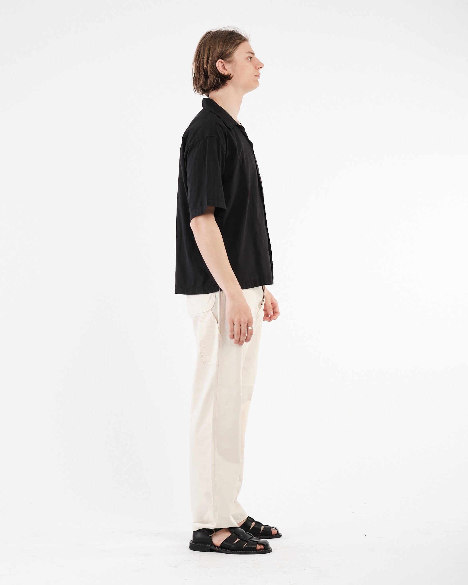 Engang et sportstøjs grundlæggende element, nu en sommer nødvendighed — SHIRT09LP i Dyb Sort er her for at holde dig kølig i enhver forstand af ordet. Skåret fra letvægts økologisk bomuldspoplin, tilbyder denne afslappede kortærmede skjorte åndbarhed uden at gå på kompromis med stilen.