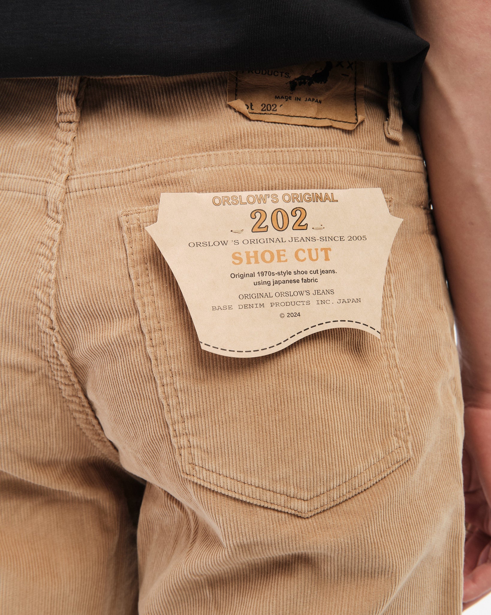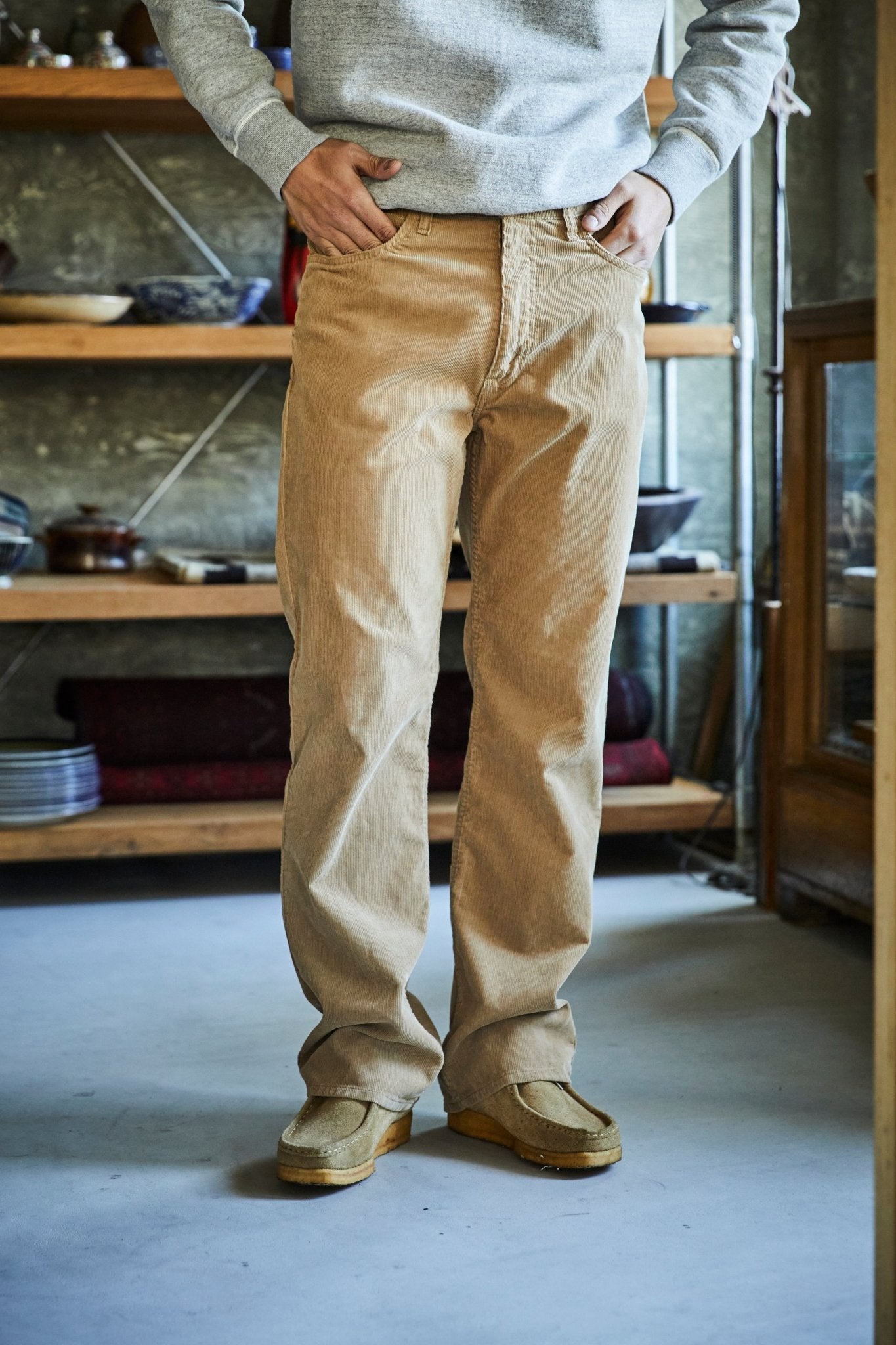 De Beige 01‐0202‐67 Shoe Cut Jeans Corduroys fra udstiller et retro 70'er design, der er omhyggeligt håndlavet i Japan med et skarpt fokus på kvalitet og indviklede detaljer. Fremstillet af et højkvalitets bomuldsblandet fløjl stof, der tilbyder en stadig robust fornemmelse og praler af et let udsvajet ben snit—perfekt til at kombinere med enten støvler eller sneakers. Den beige farve gør dem passende til forskellige lejligheder lige fra afslappet til mere formelle indstillinger. Uanset hvad dagen må bringe – vær det din rutine eller en semi fin begivenhed – disse bukser er skræddersyet til at levere både komfort og stil ubesværet. Skoens skræddersyede pasform giver en tidløs men samtidig moderne stemning – den ligner en benstil med et subtilt flair ved den nederste kant.