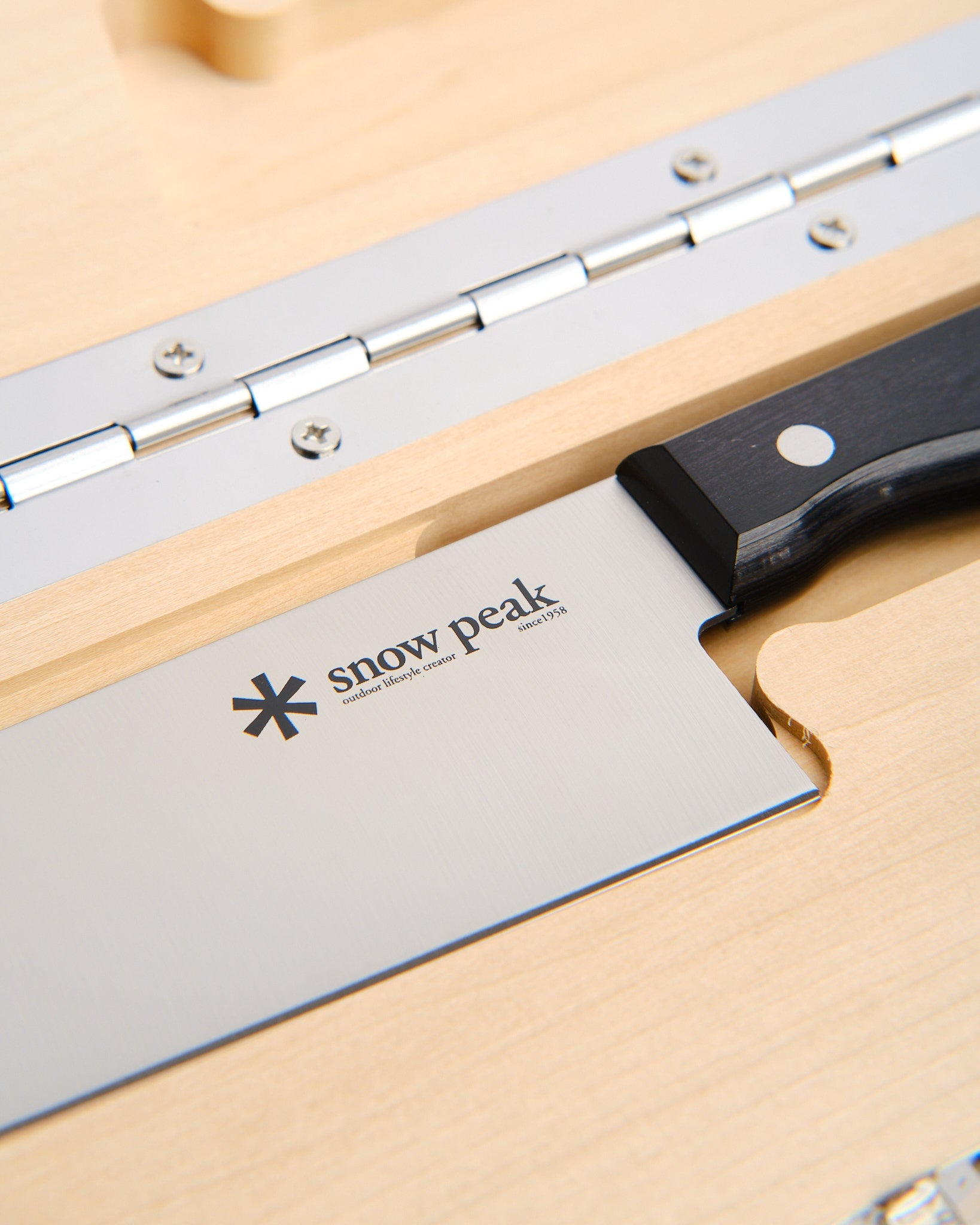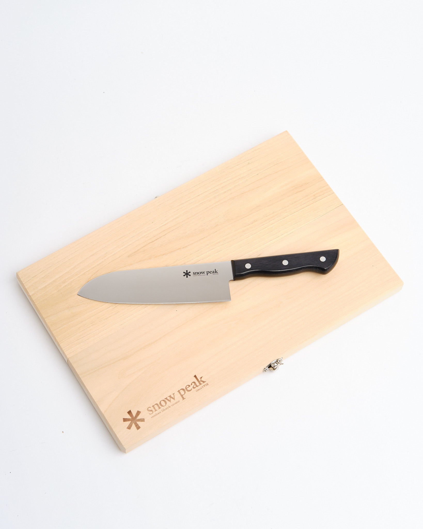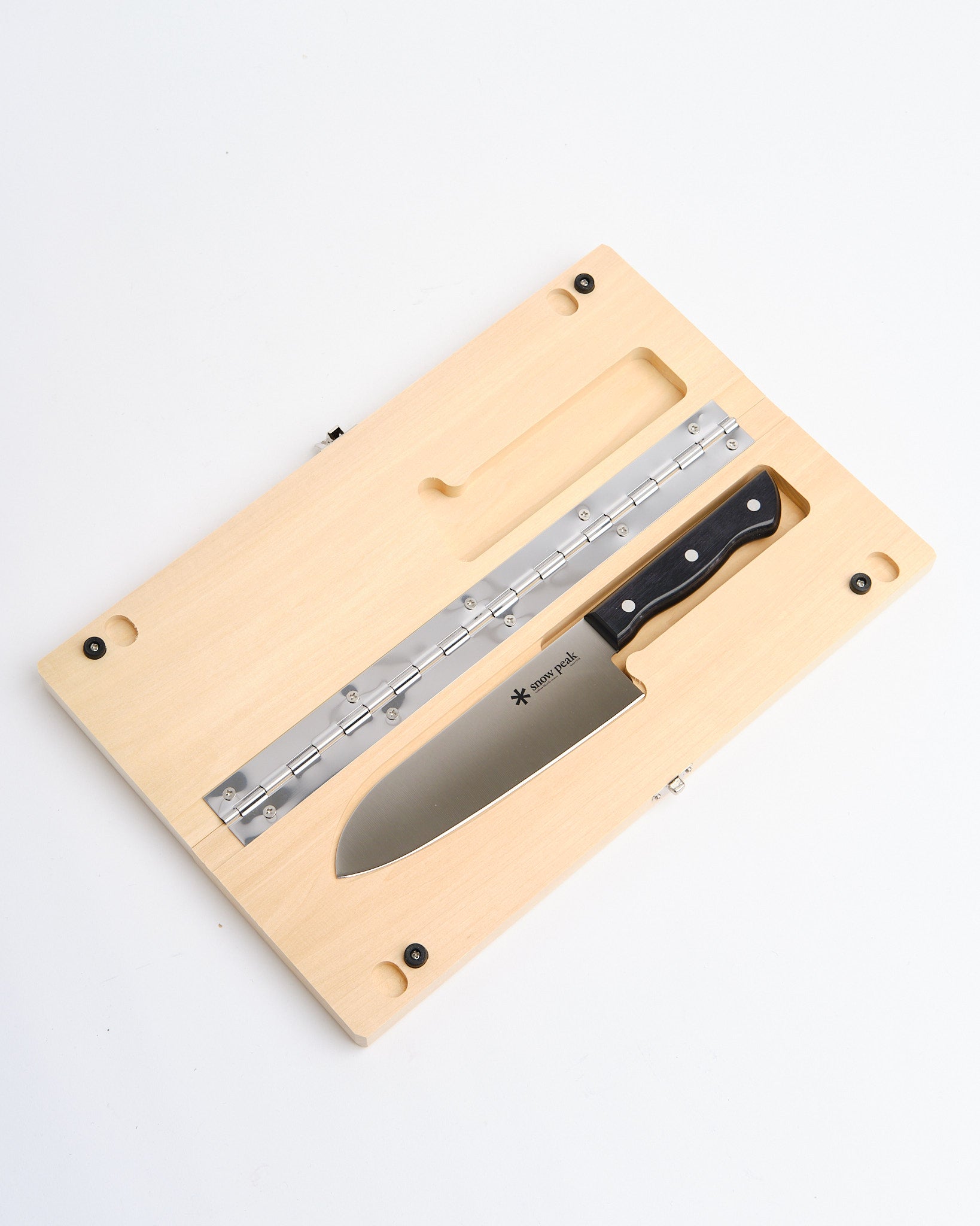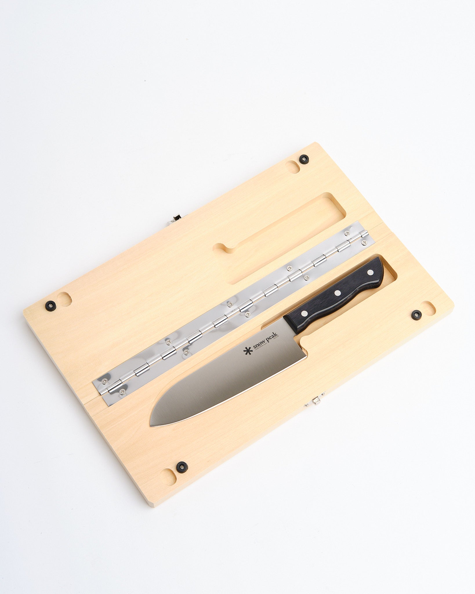 Forbedr din madlavningsoplevelse med Snow Peak Skærebræt Sæt L. Dette sæt inkluderer et skærebræt lavet af birketræ og en kniv fremstillet af carbon vanadium rustfrit stål. Det er en tilføjelse til enhver picnic kurv eller campingudstyr designet til udendørs kokke. Det store bræt folder ud for at afsløre et opbevaringsrum til kniven, hvilket sikrer både sikkerhed og bekvemmelighed. Vejer 16,6 oz. Måler L 14" W 9" D .75" når åben (L 14" W 4.5" D 1.5" når lukket) dette kompakte sæt er perfekt til ethvert lejrkøkken. Kompletterende til sættet er en magnet, der sikkert holder kniven indeni, hvilket tilføjer både funktionalitet og elegance.