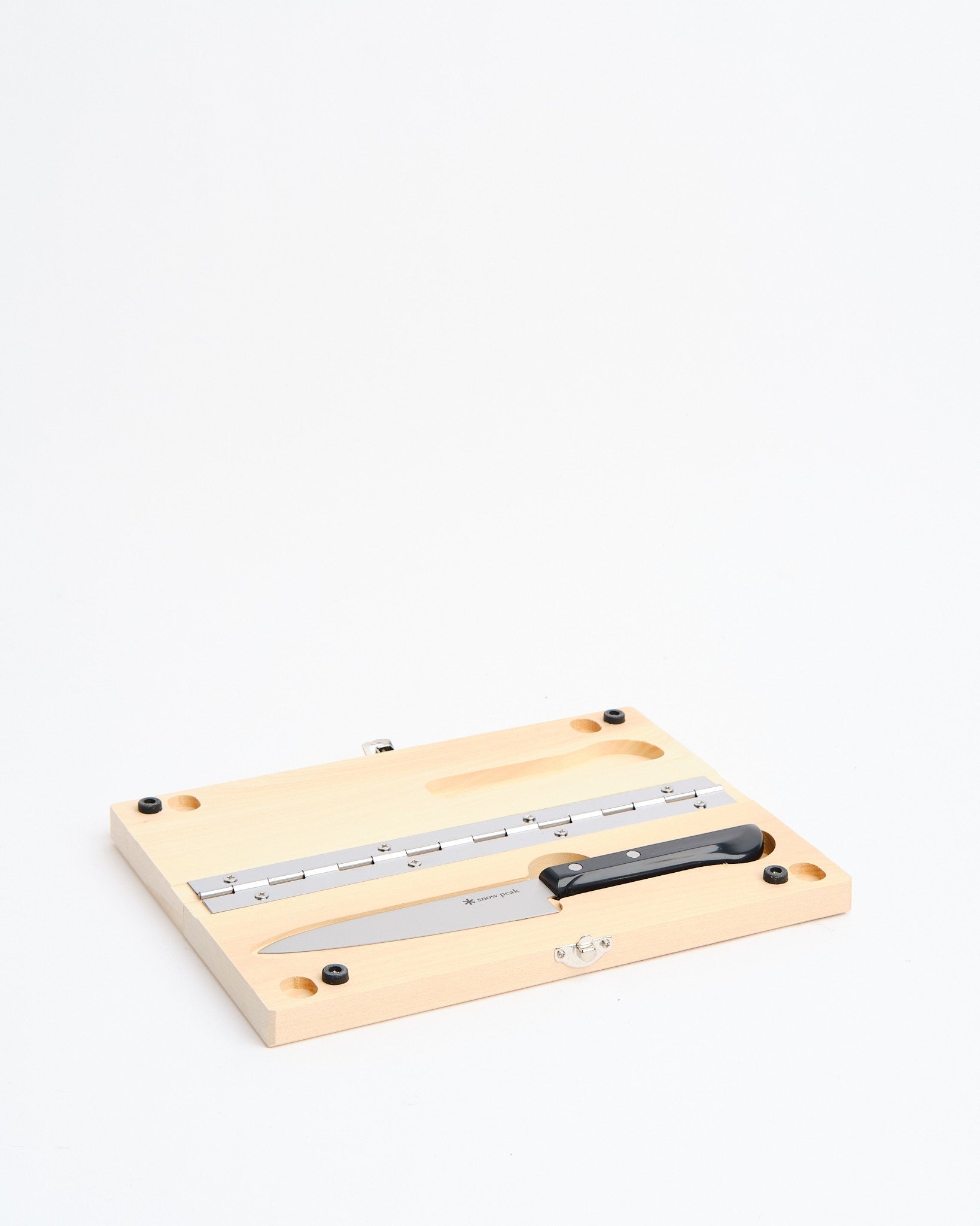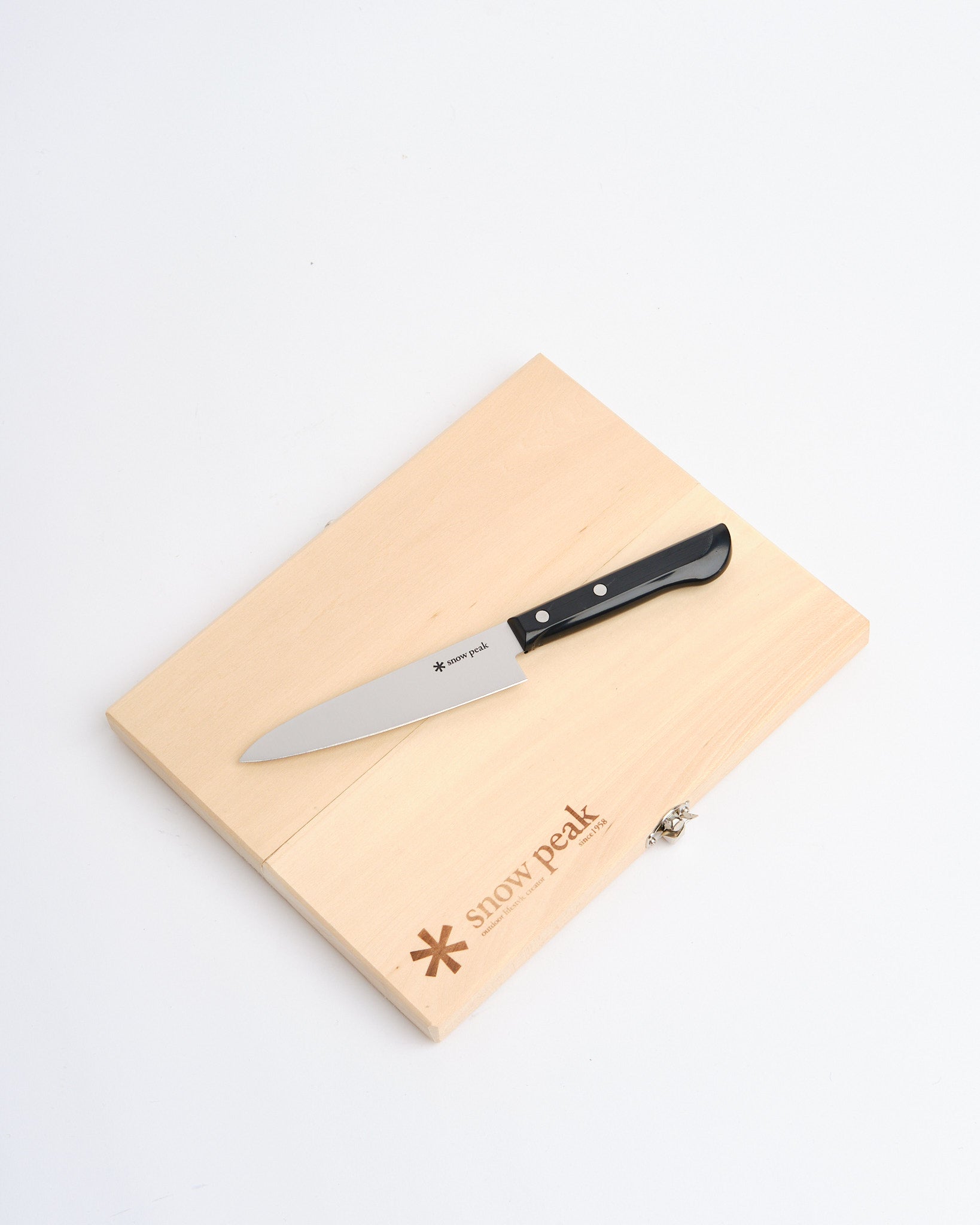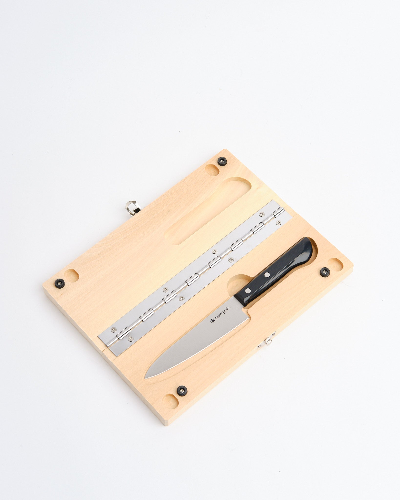 Forbedr din madlavningsoplevelse med Snow Peak Skærebræt Sæt M. Dette sæt inkluderer et skærebræt lavet af birketræ og en kniv fremstillet af kulstofvanadium rustfrit stål. Det er et tillæg til enhver picnic-kurv eller campingudstyr designet til udendørs kokke. Det størrelsespassende bræt folder ud for at afsløre et opbevaringsrum til kniven, hvilket sikrer både sikkerhed og bekvemmelighed. Vejer 16.6 oz. Måler L 10" x W 8" x D .75" når åbent (L 10" x W 4" x D 1.5" når lukket) dette kompakte sæt er perfekt til ethvert lejrkøkken. Kompletterende sættet er en magnet, der sikkert holder kniven indeni, hvilket tilføjer både funktionalitet og elegance.