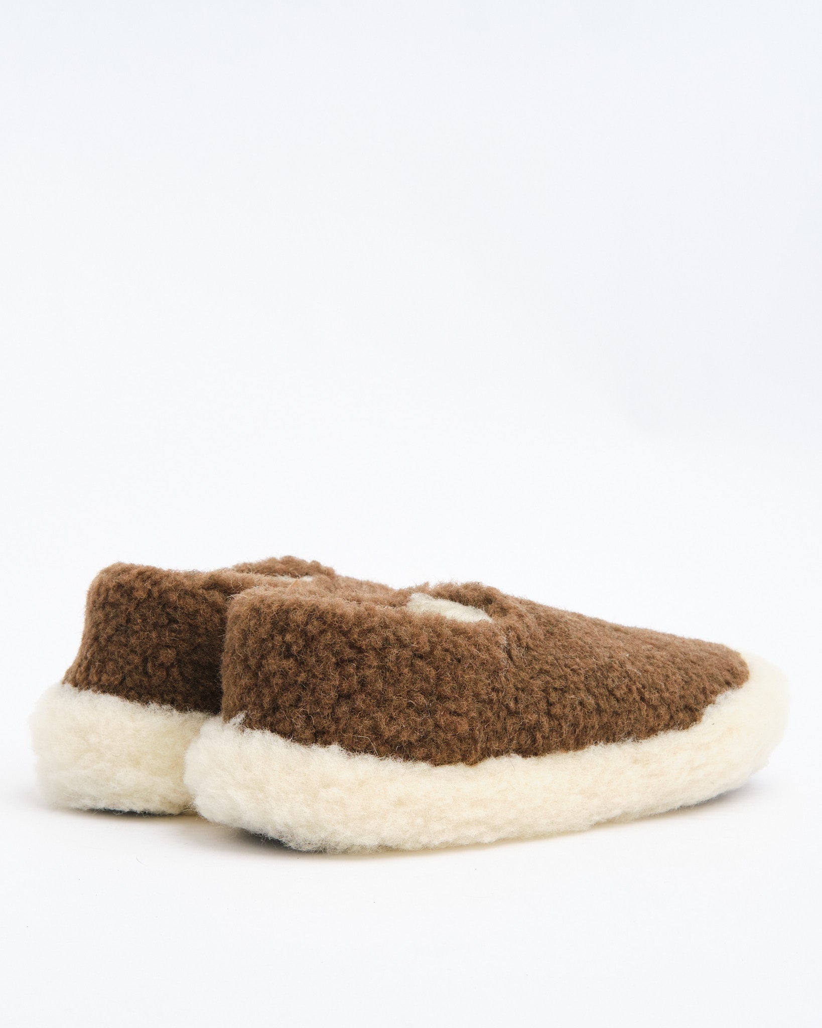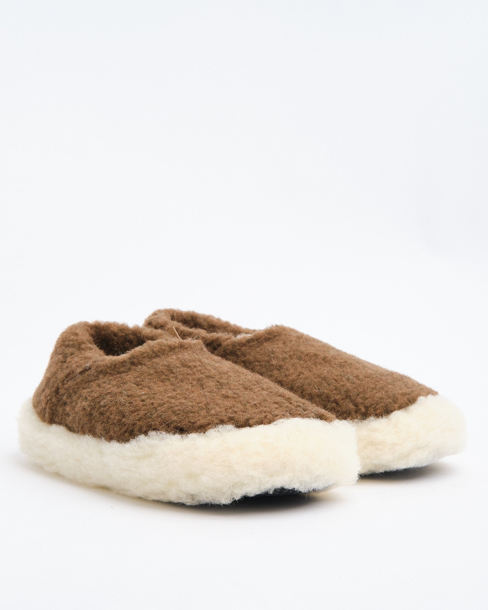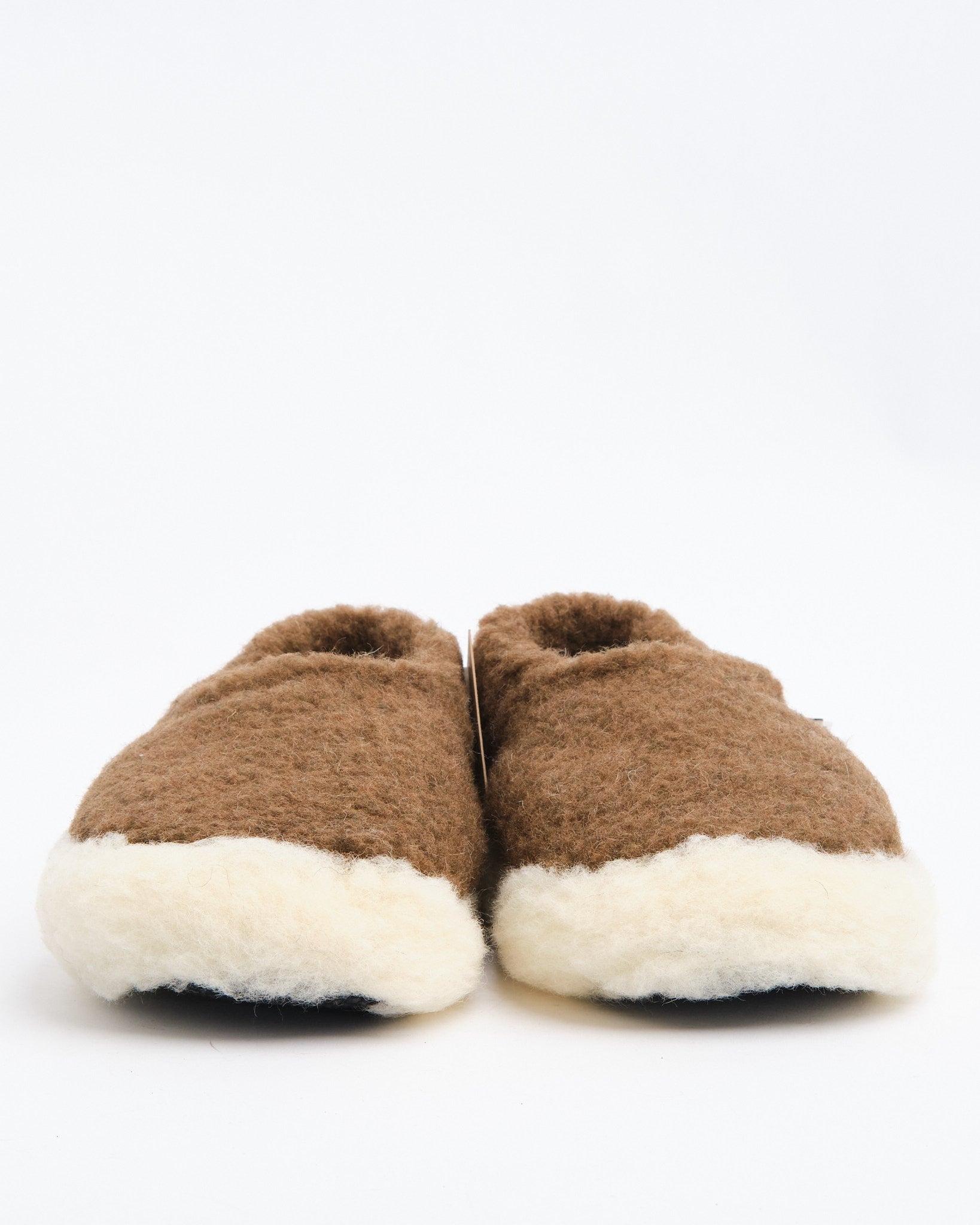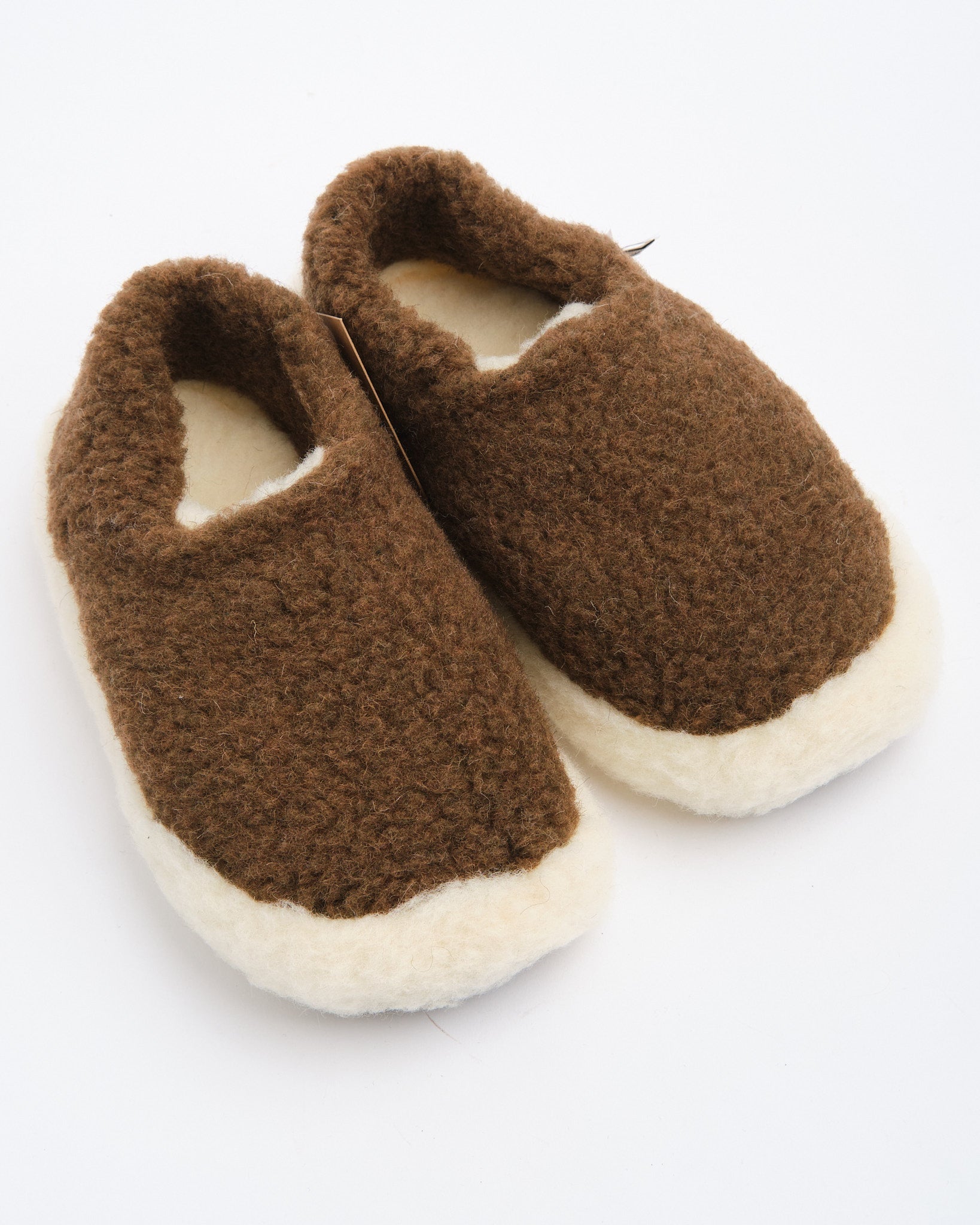 De voksne sibiriske hjemmesko i midtbrun fra Coldbreaker er lavet til kolde morgener og hyggelige nætter. Fremstillet i Polen af tykt uldfilt, isolerer disse hjemmesko naturligt dine fødder, samtidig med at de lader dem ånde. Det bløde indre og minimalistiske konstruktion tilbyder ren komfort, mens den robuste ydersål giver trækkraft rundt om i huset. Designet til at være enkelt, funktionelt og ekstraordinært varmt, de er alt hvad du har brug for fra en vinterhjemmesko - ingen dikkedarer, bare naturlig lethed.