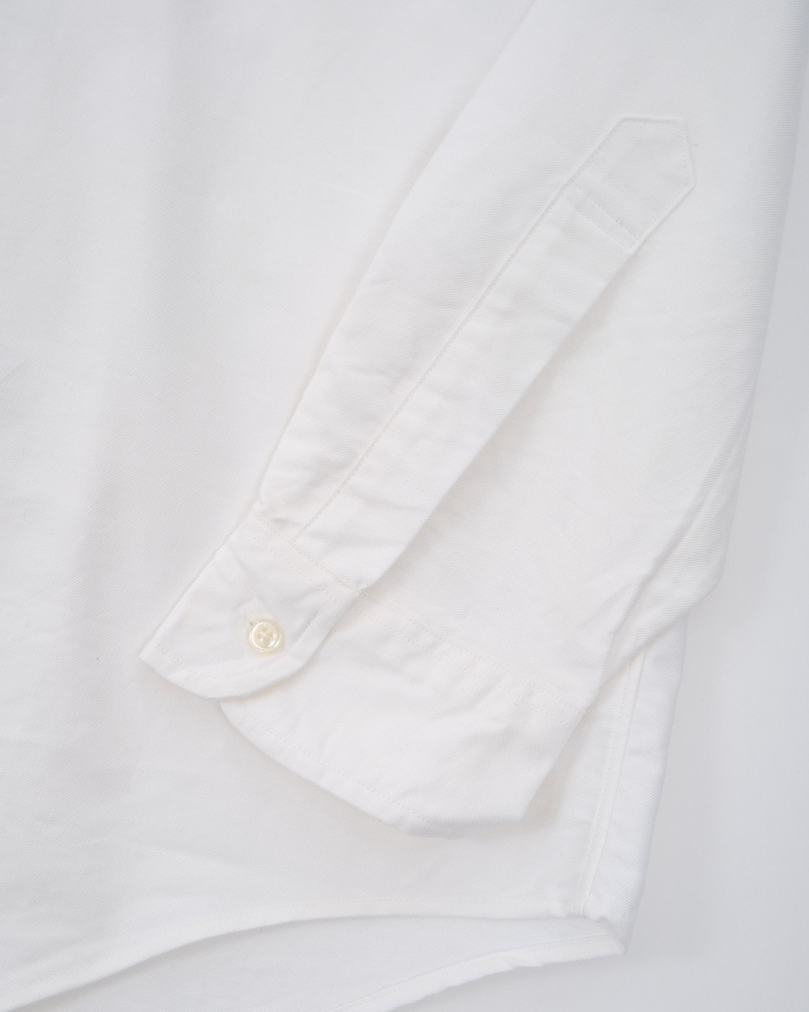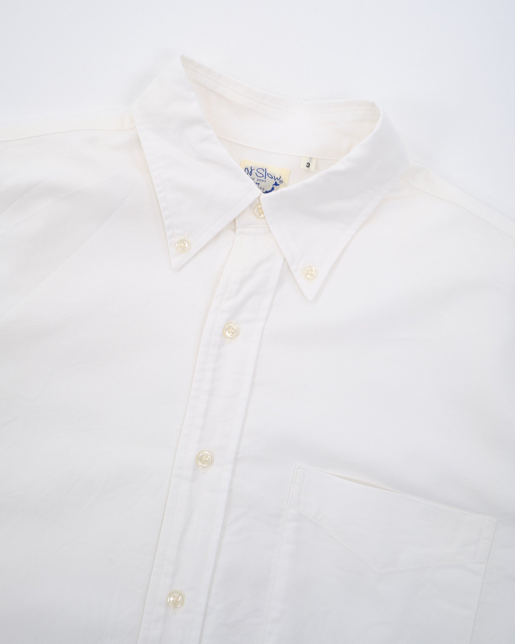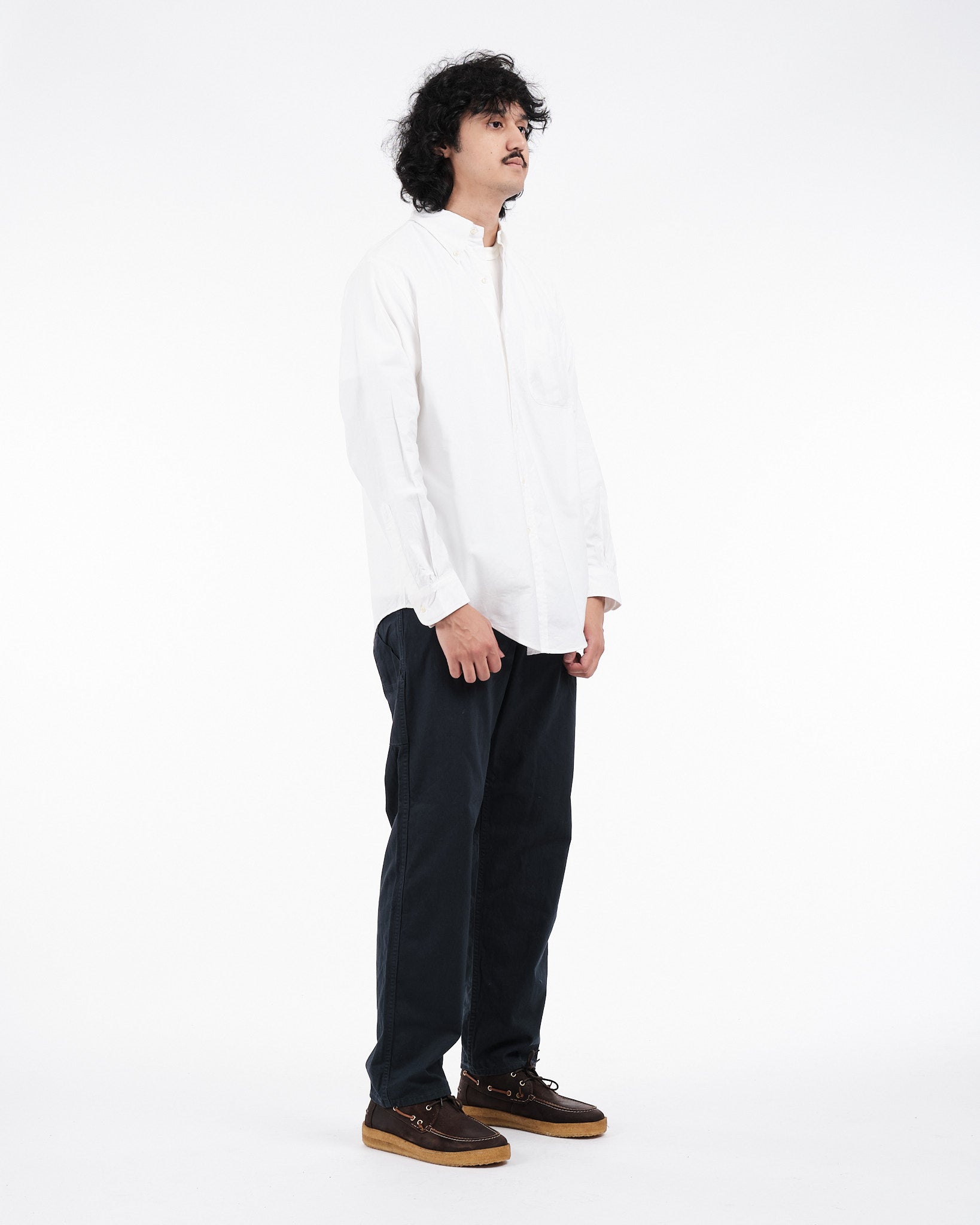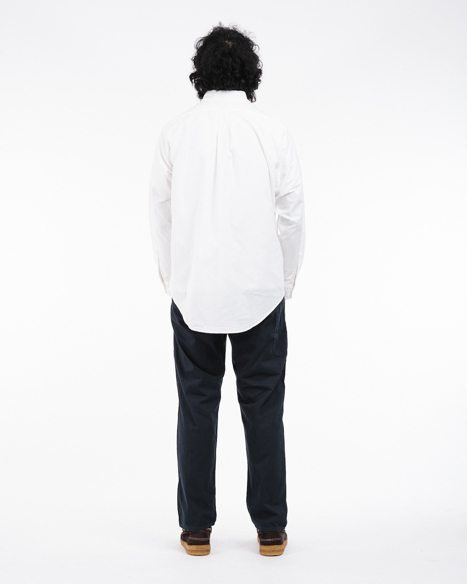 Den orSlow Standard Oxford White Button Down Shirt bringer tidløs elegance til hverdagsbrug. Fremstillet i Japan af premium 100% bomuld japansk oxford klæde, kombinerer denne skjorte holdbarhed og komfort. Dens afslappede pasform, med god plads i brystet og armene, sikrer bevægelsesfrihed samtidig med at opretholde en klassisk silhuet. Med en knappet krave, en enkelt brystlomme og knappede manchetter, reflekterer den 1950'ernes amerikanske hvidkrave-stil. Den udtalte boksfold på ryggen forbedrer dens form, og den afrundede kant tilbyder alsidige stylingmuligheder. Perfekt til både afslappede og semi-formelle lejligheder, inkarnerer denne skjorte orSlows forpligtelse til langsom mode og kvalitetshåndværk.