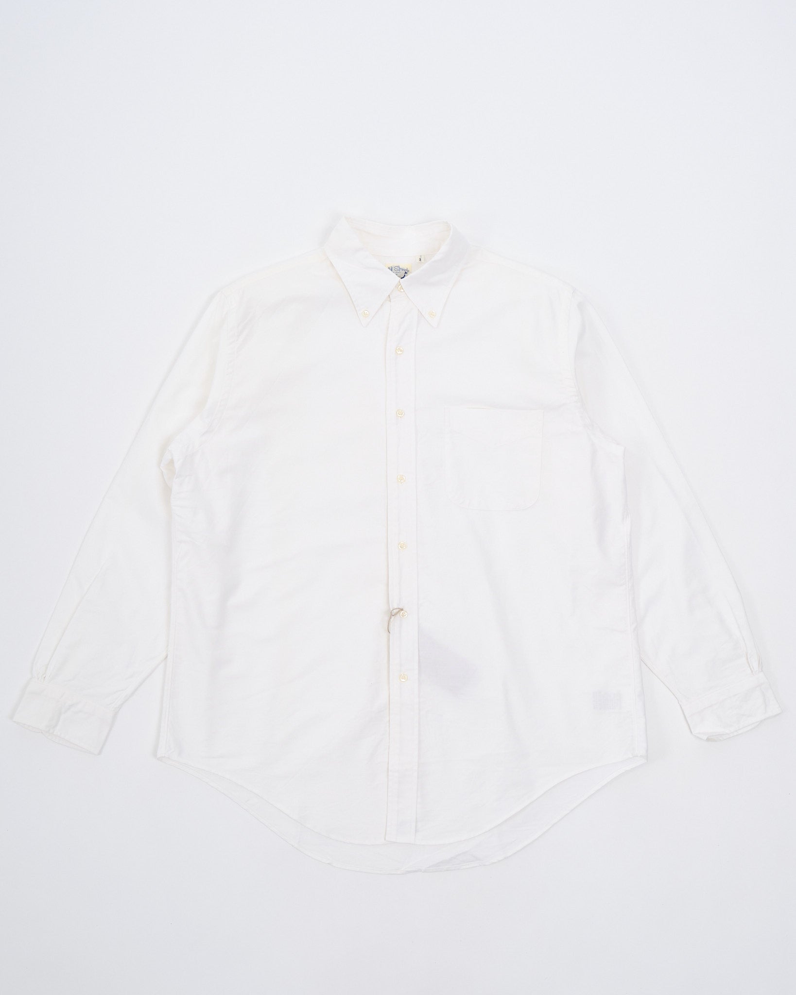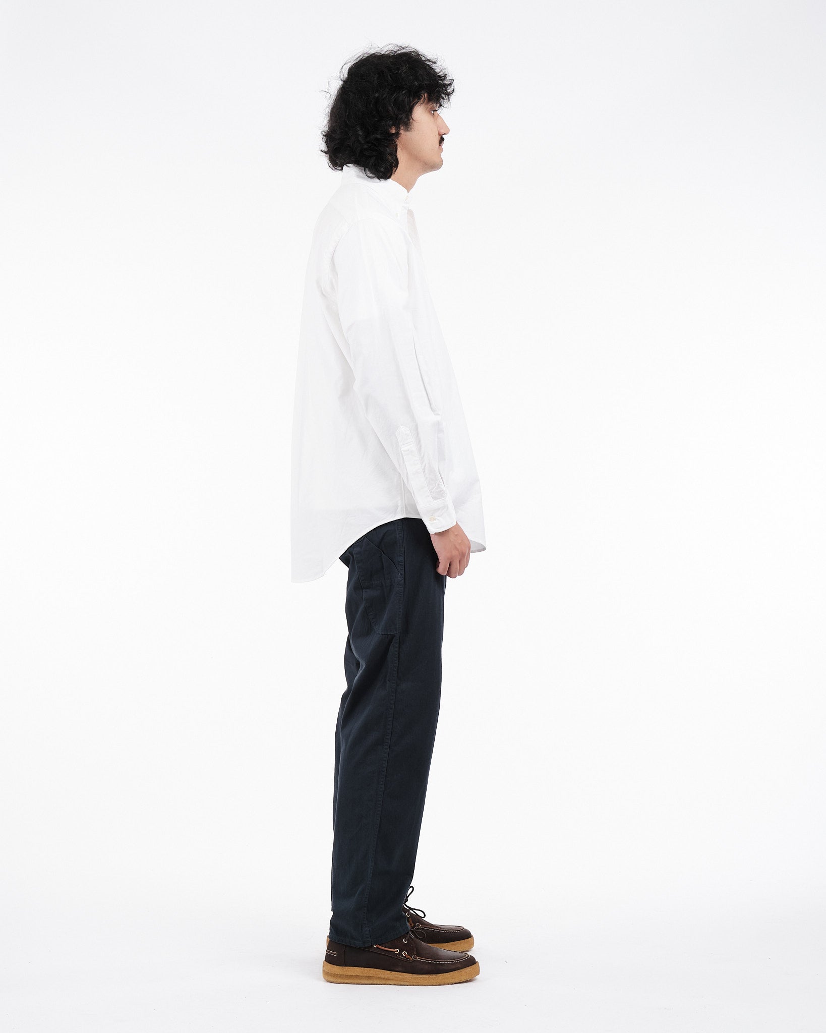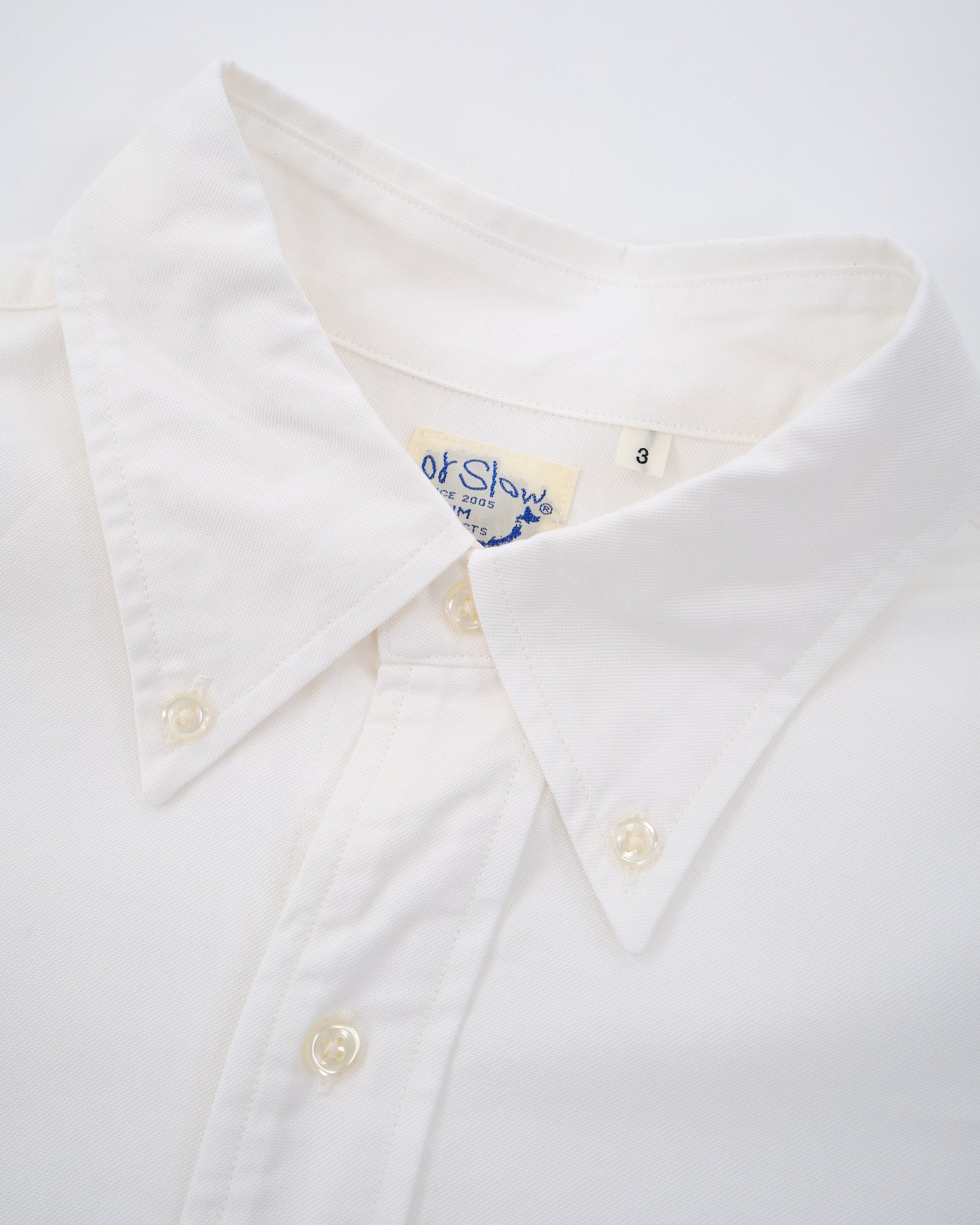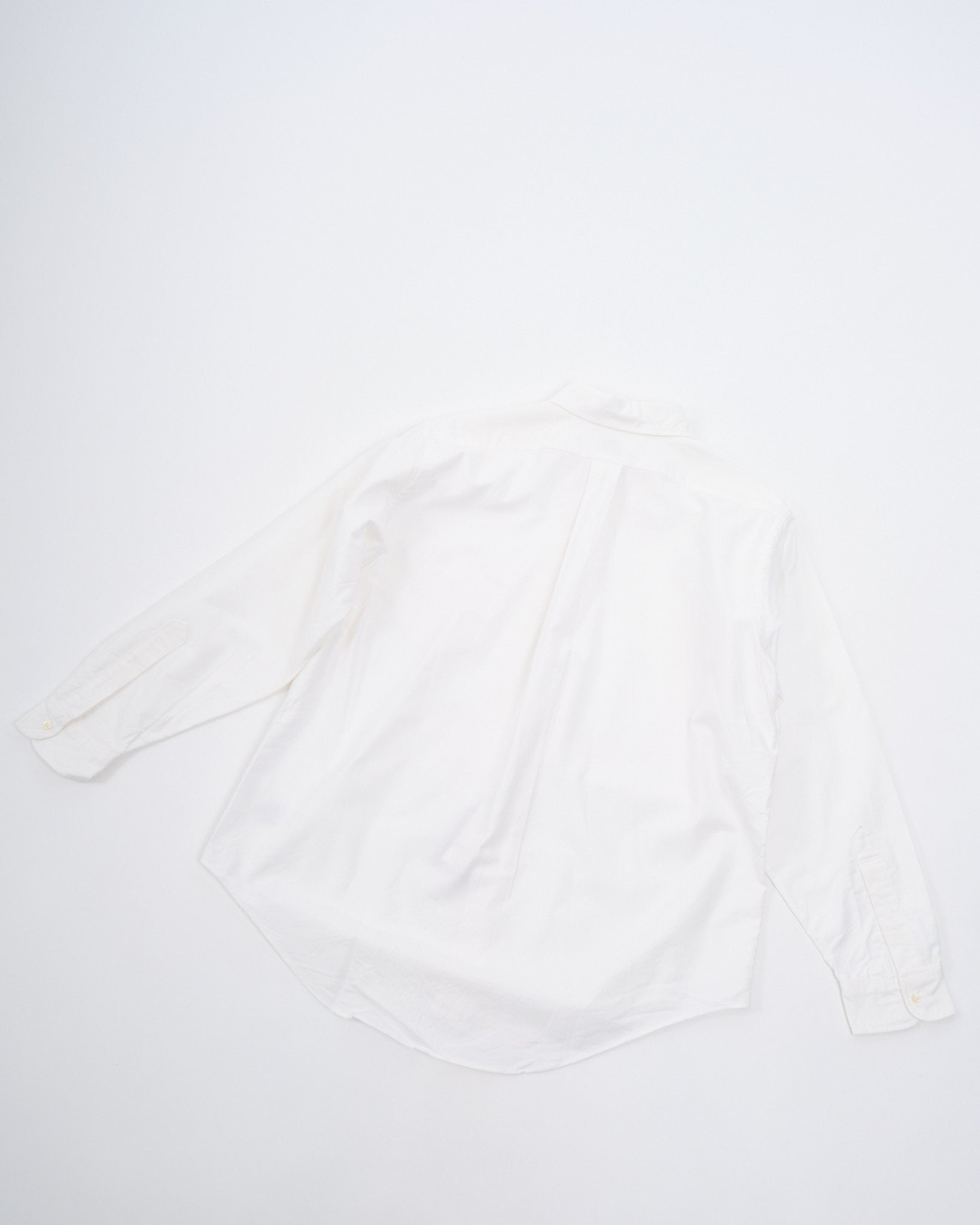 Den orSlow Standard Oxford White Button Down Shirt bringer tidløs elegance til hverdagsbrug. Fremstillet i Japan af premium 100% bomuld japansk oxford klæde, kombinerer denne skjorte holdbarhed og komfort. Dens afslappede pasform, med god plads i brystet og armene, sikrer bevægelsesfrihed samtidig med at opretholde en klassisk silhuet. Med en knappet krave, en enkelt brystlomme og knappede manchetter, reflekterer den 1950'ernes amerikanske hvidkrave-stil. Den udtalte boksfold på ryggen forbedrer dens form, og den afrundede kant tilbyder alsidige stylingmuligheder. Perfekt til både afslappede og semi-formelle lejligheder, inkarnerer denne skjorte orSlows forpligtelse til langsom mode og kvalitetshåndværk.