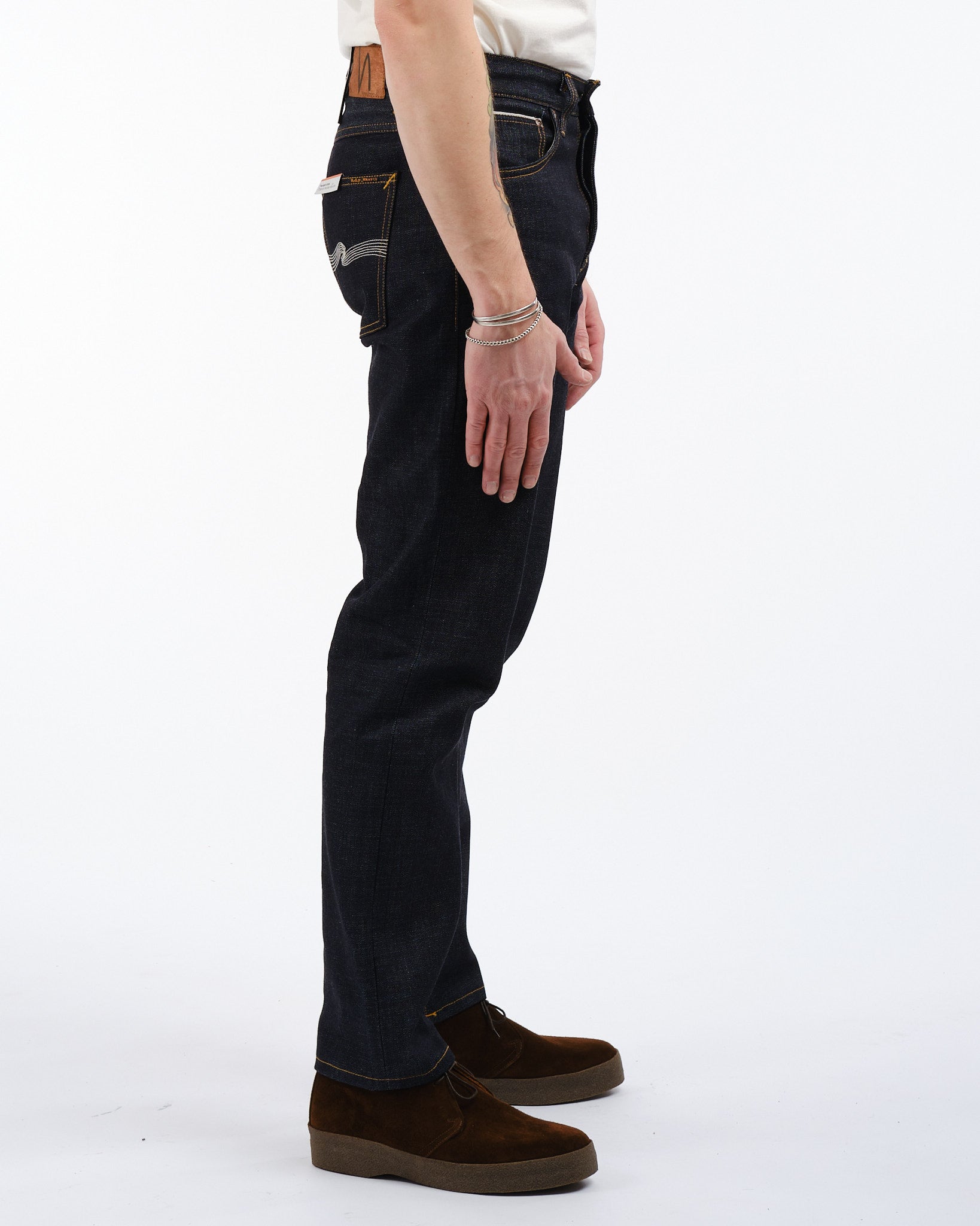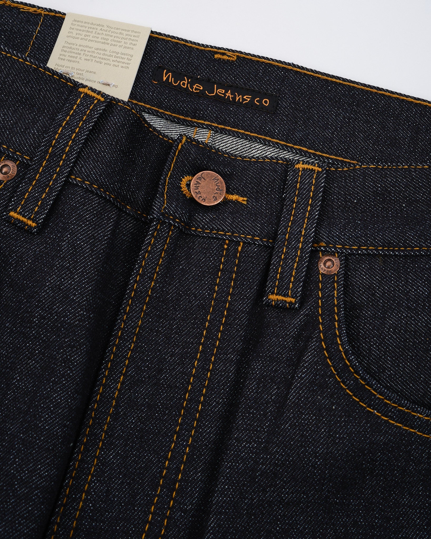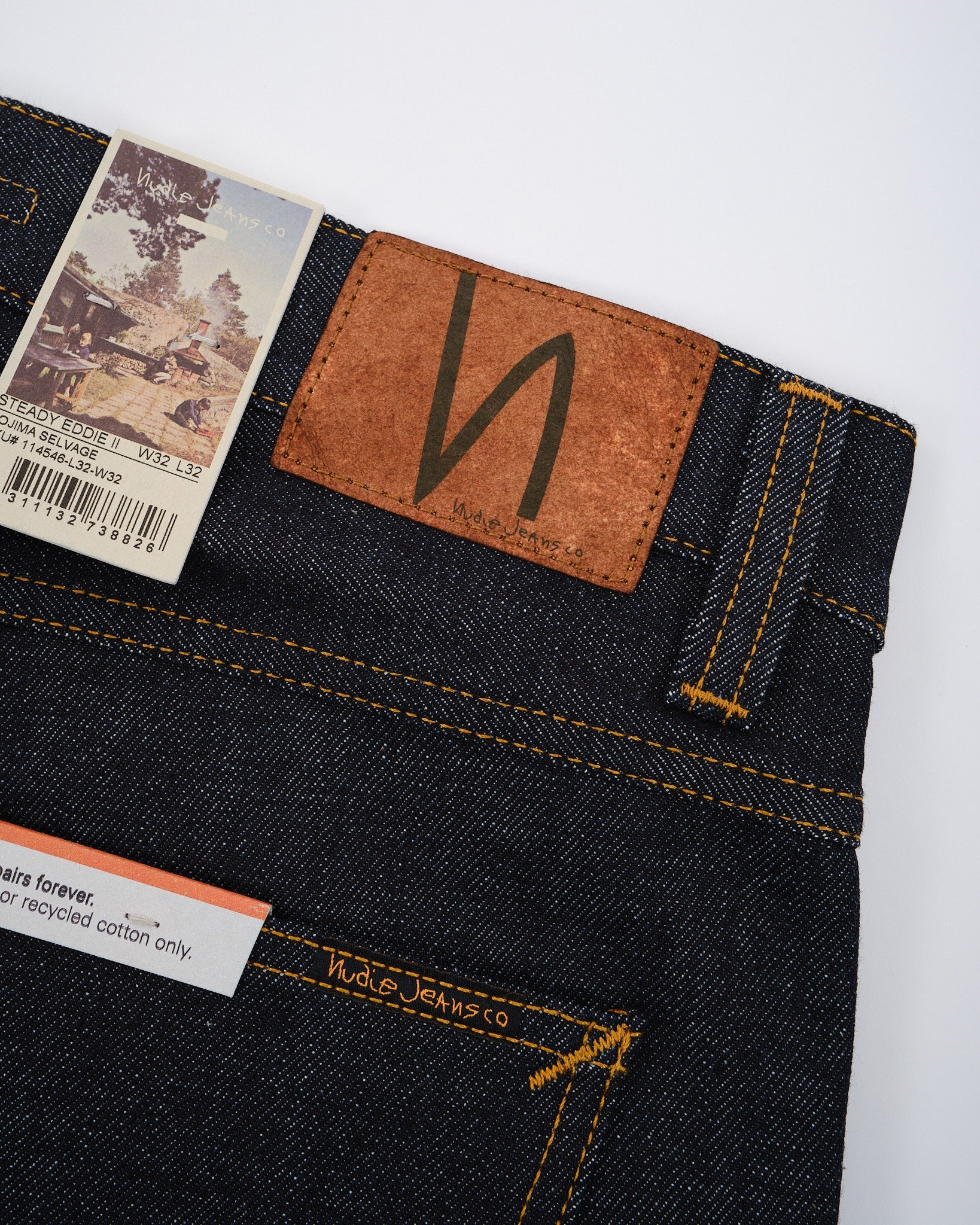 Oplev håndværket fremvist i Steady Eddie II Kojima Selvage jeans fra Nudie Jeans Co. Disse jeans er omhyggeligt fremstillet ved brug af bomuld. Har 13 oz. Rigid selvage denim hentet fra Shinya, Japan. De udtrykker kvalitet og stil. Det premium japanske denim er dekoreret med tobaksstikninger og, off white baglommebroderi der fremhæver dets evne til at ældes smukt over tid. Den mørke indigo nuance, med en rødlig undertone, vævet på vintage shuttle væve, fremviser det intrikate håndværk bag disse jeans. Med et design der praler af en mid talje og tapered ben tilbyder de både komfort og en strømlinet silhuet med deres slanke benåbning. Hvert par leveres komplet med kobber trimminger en knapflue og en autentisk Jacron patch der symboliserer holdbarhed og ægthed.