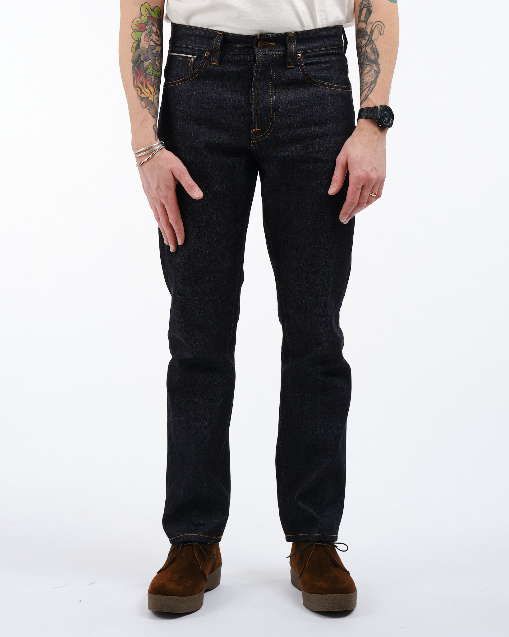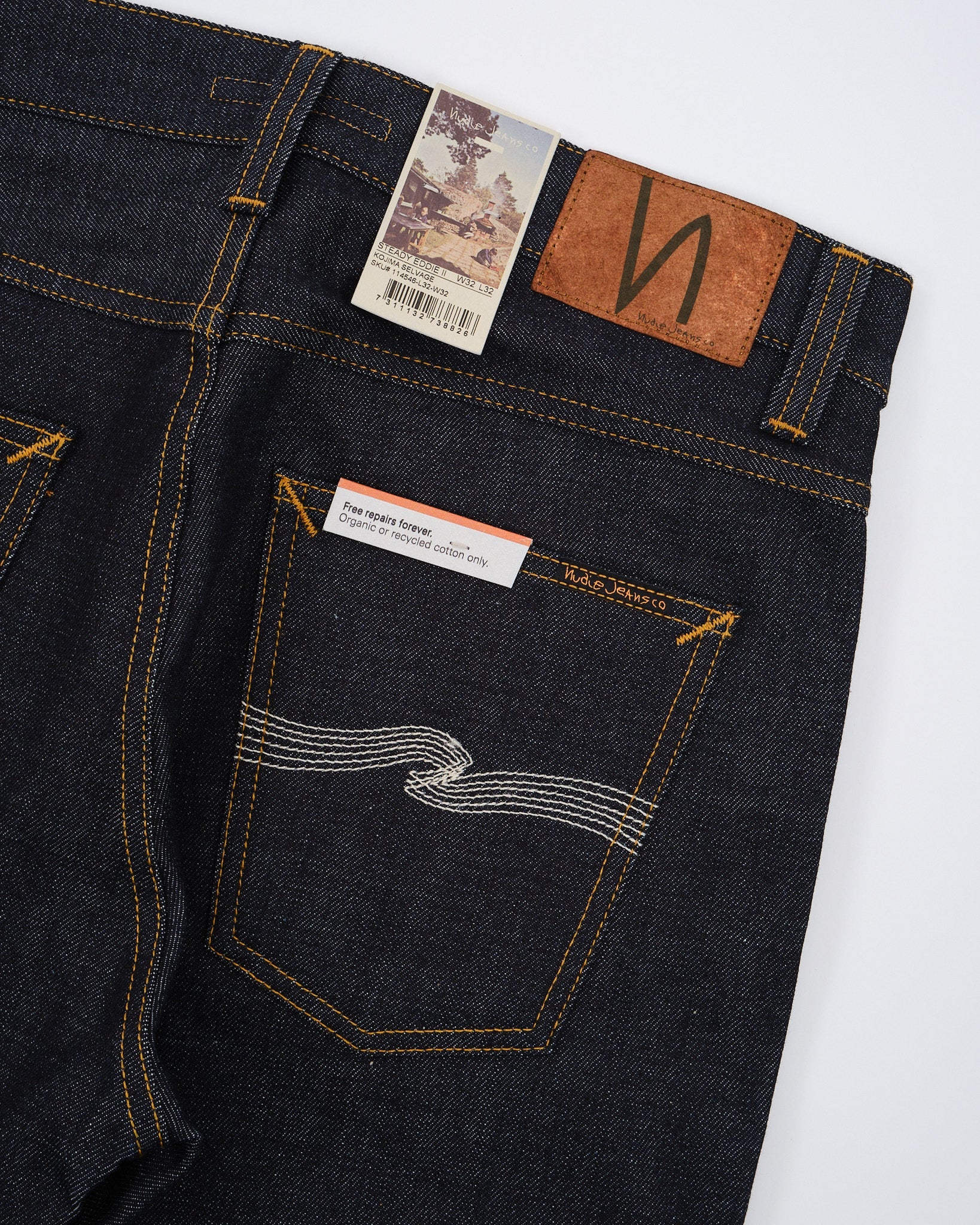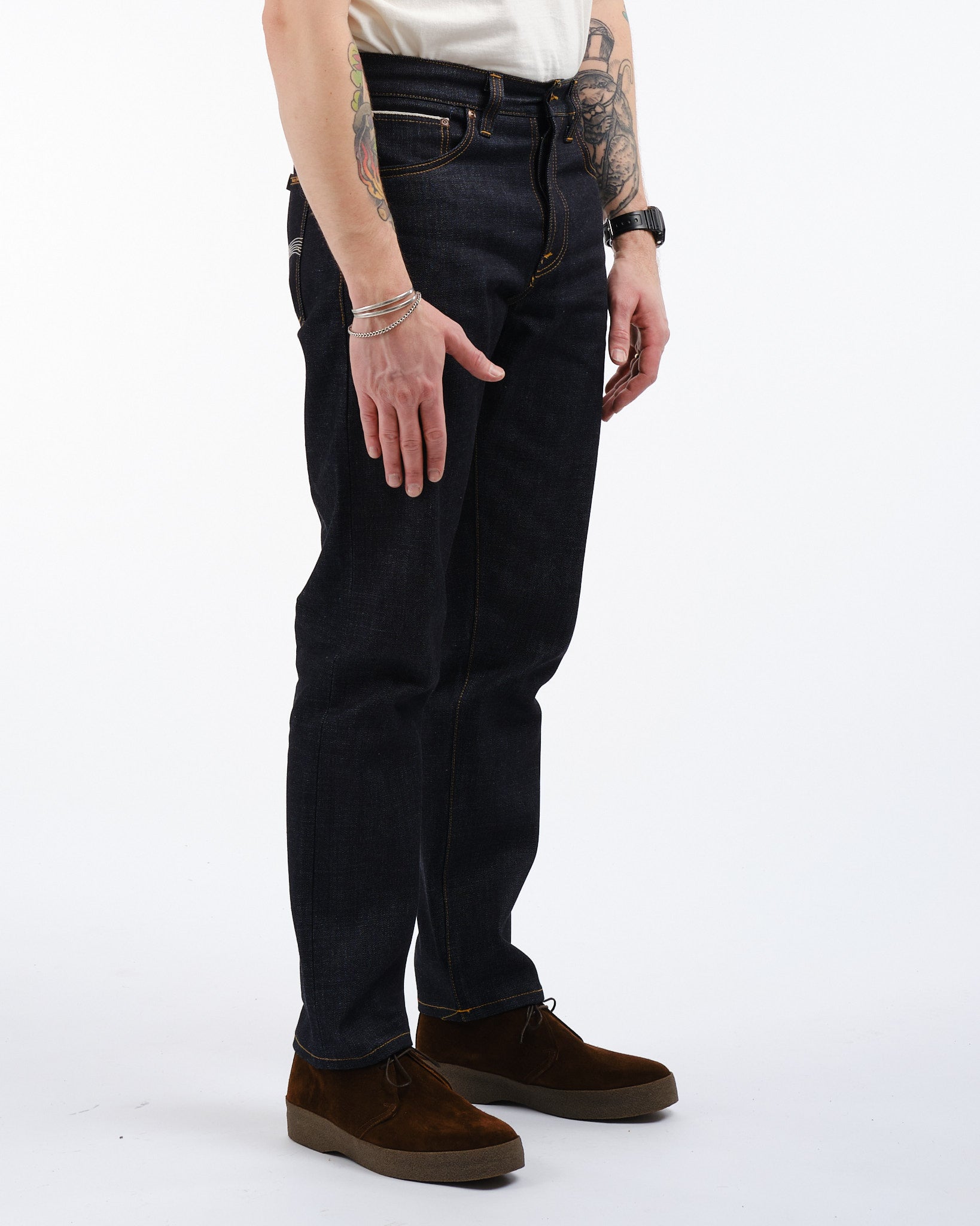 Oplev håndværket fremvist i Steady Eddie II Kojima Selvage jeans fra Nudie Jeans Co. Disse jeans er omhyggeligt fremstillet ved brug af bomuld. Har 13 oz. Rigid selvage denim hentet fra Shinya, Japan. De udtrykker kvalitet og stil. Det premium japanske denim er dekoreret med tobaksstikninger og, off white baglommebroderi der fremhæver dets evne til at ældes smukt over tid. Den mørke indigo nuance, med en rødlig undertone, vævet på vintage shuttle væve, fremviser det intrikate håndværk bag disse jeans. Med et design der praler af en mid talje og tapered ben tilbyder de både komfort og en strømlinet silhuet med deres slanke benåbning. Hvert par leveres komplet med kobber trimminger en knapflue og en autentisk Jacron patch der symboliserer holdbarhed og ægthed.