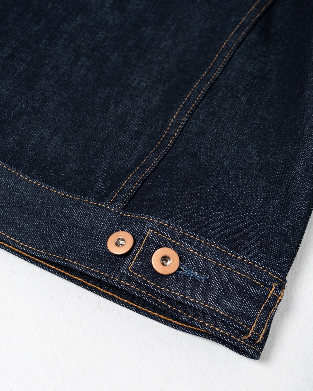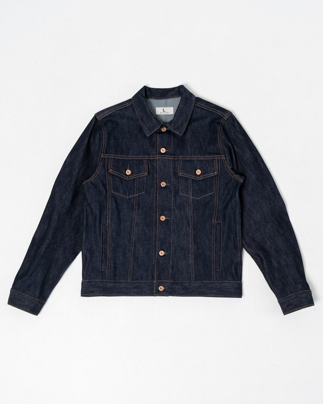 7. Holdbart Denim: Brugen af 14 oz Cone Mills denim sikrer, at jakken holder i lang tid.