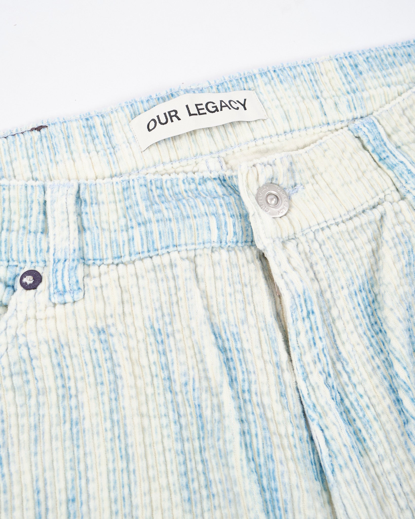 Opdag blandingen af vintage inspiration og moderne design med Vast Cut i Blue Brush Stroke Print fra Our Legacy. Fremstillet i Kina af et blødt fløjlsmateriale, tilbyder disse højtaljede jeans et løftet blik på det klassiske jeansdesign. De har et bredt, løst snit og fem lommer, hvilket sikrer komfort og funktionalitet. Et præget OUR LEGACY mærke og kobbernitte tilføjer et strejf af sofistikation. Dette beklædningsgenstand, med et unikt digitalt print, der minder om vintage denimdesigns, vil blive formet af sin bærer og naturligt blive slidt over tid, hvilket fuldender dets unikke designproces.