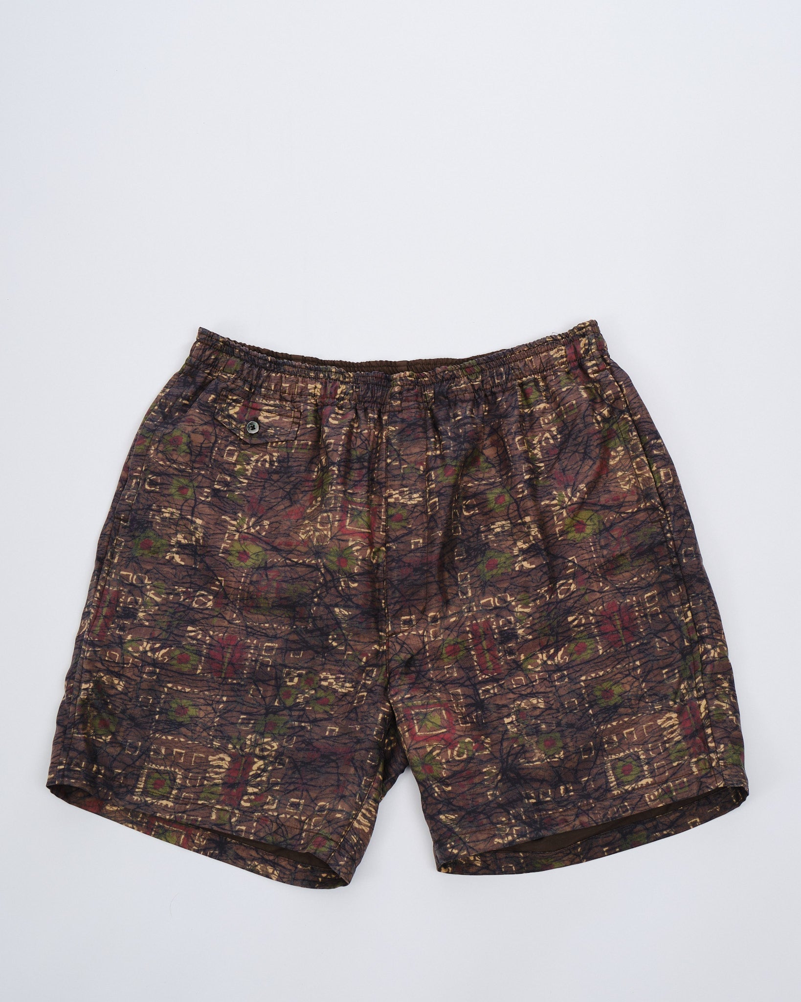 Oplev ubesværet stil med Beach Shorts i Silke Batik Print Brun fra Beams Plus. Disse shorts, inspireret af vintage-genstande, kropsliggør det Tokyo-baserede mærkes vision om at skabe holdbart, afslappet-coolt tøj. Fremstillet i Japan, tilbyder disse 100% silke shorts den ultimative komfort og karakteristisk stil. De kommer med en elastisk talje for en afslappet pasform, en knap-klap møntlomme, forreste skrå lommer og bagknap-indsatte og verden lommer til praktisk brug.
