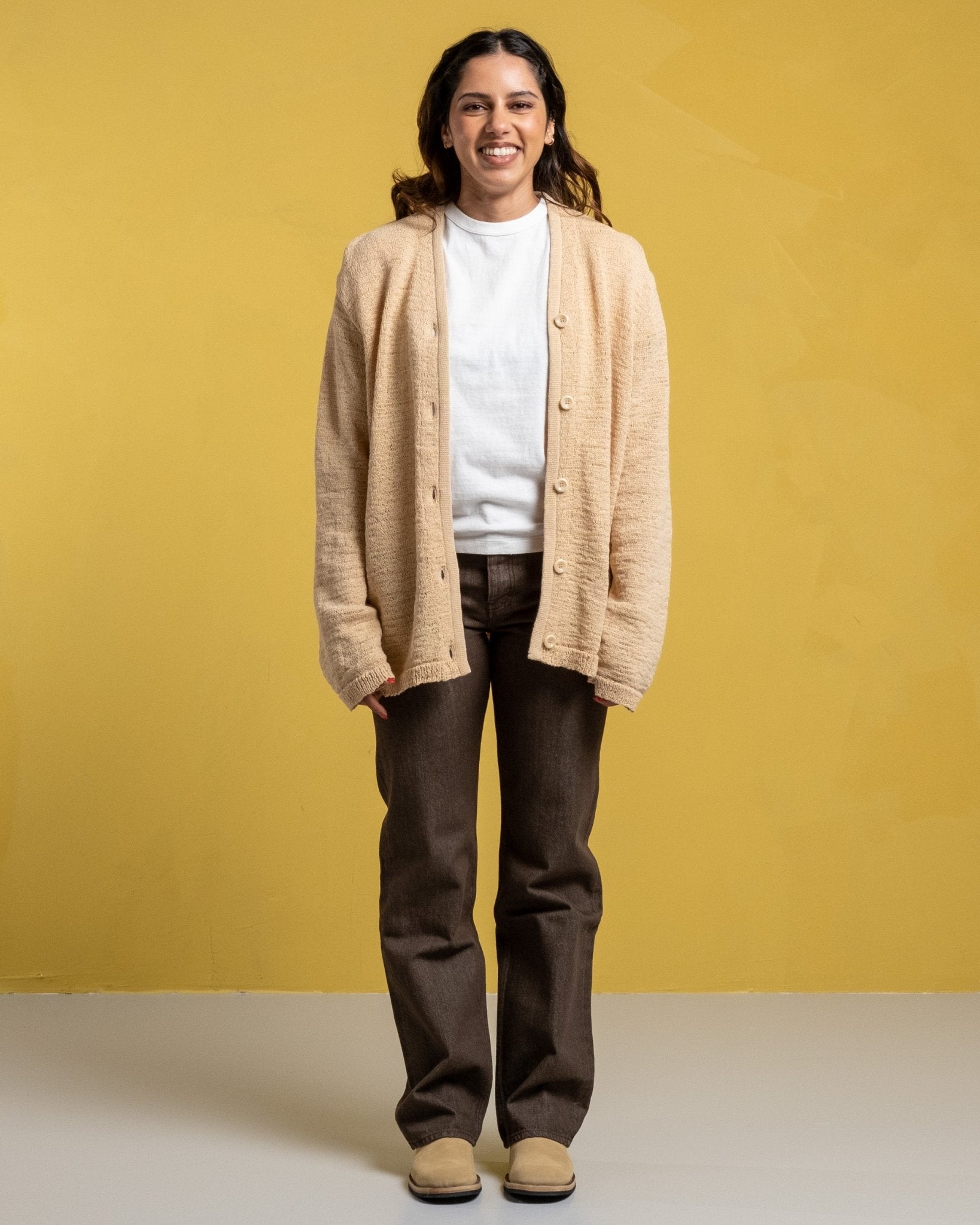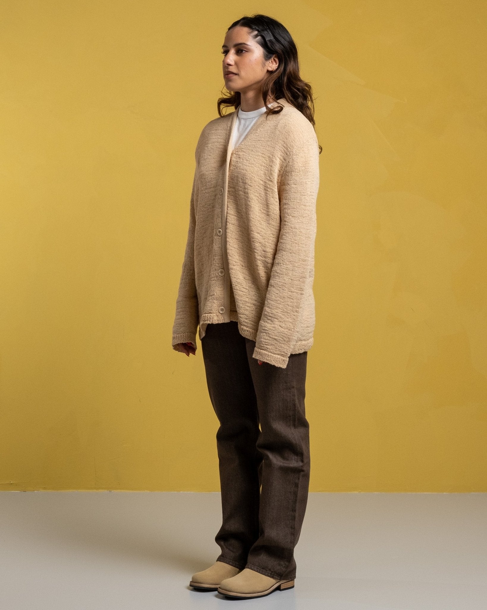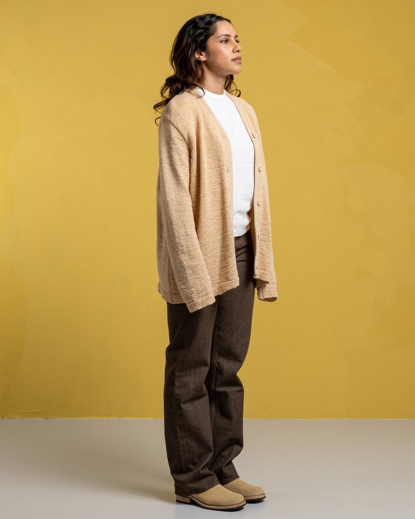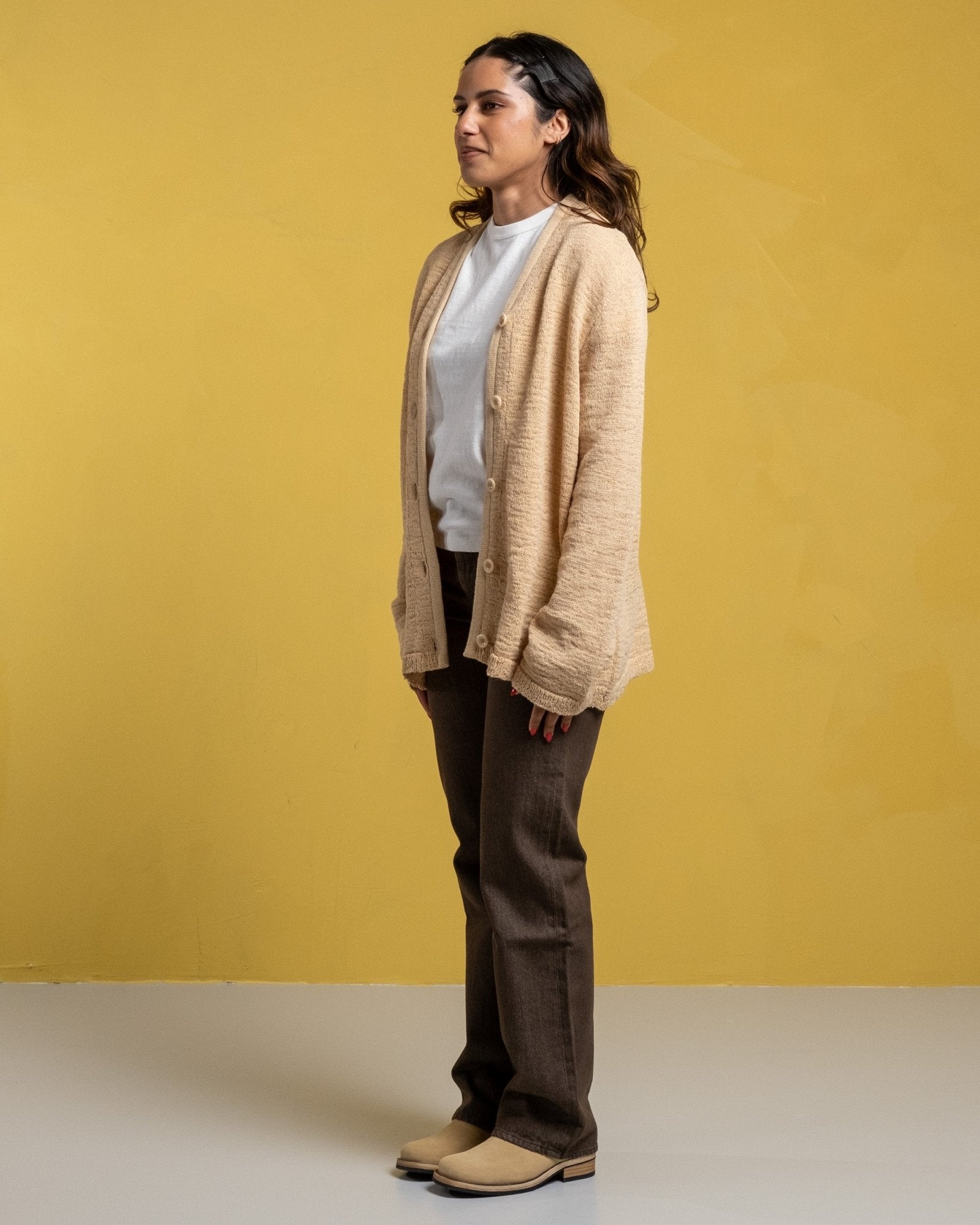 Strikket Cardigan Beige Falsk Snor W fra Our Legacy. Afslappet fit cardigan skåret fra et italiensk falsk snor polyamid stof. Med en knap ned foran med en v-hals krave og brugerdefinerede knapper. Fremstillet ved hjælp af et delikat materiale med en naturlig løs konstruktion. Venligst håndter med omhu og vask i henhold til vaskeanvisninger. Vær især forsigtig med smykker og andre spidse genstande, der kan skade overfladen. Fremstillet i Portugal.