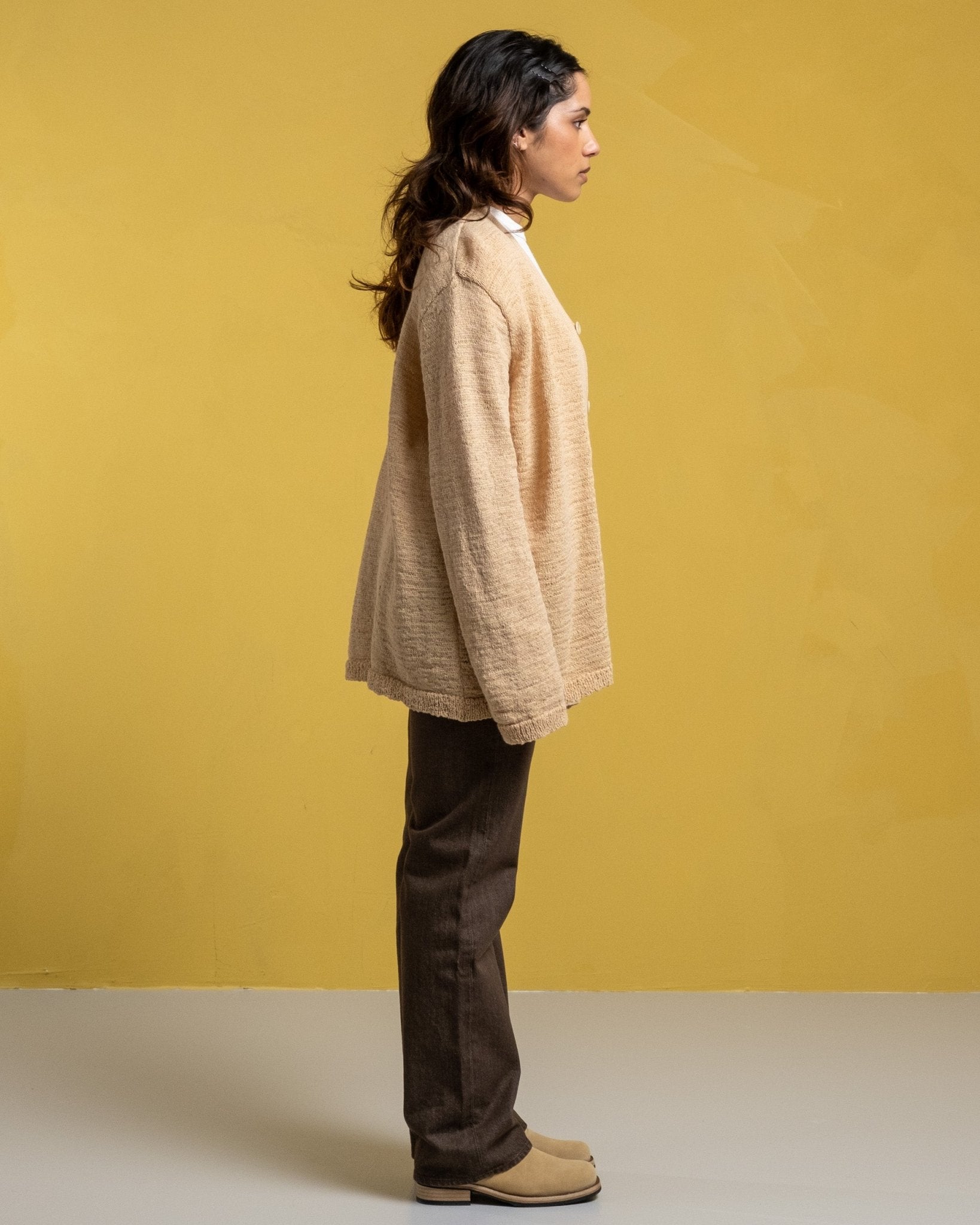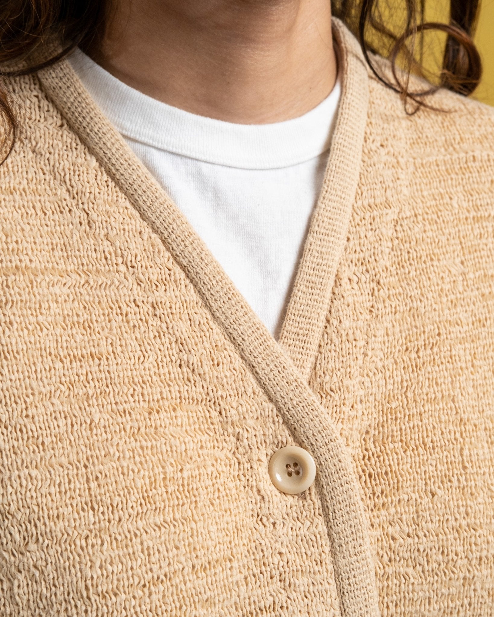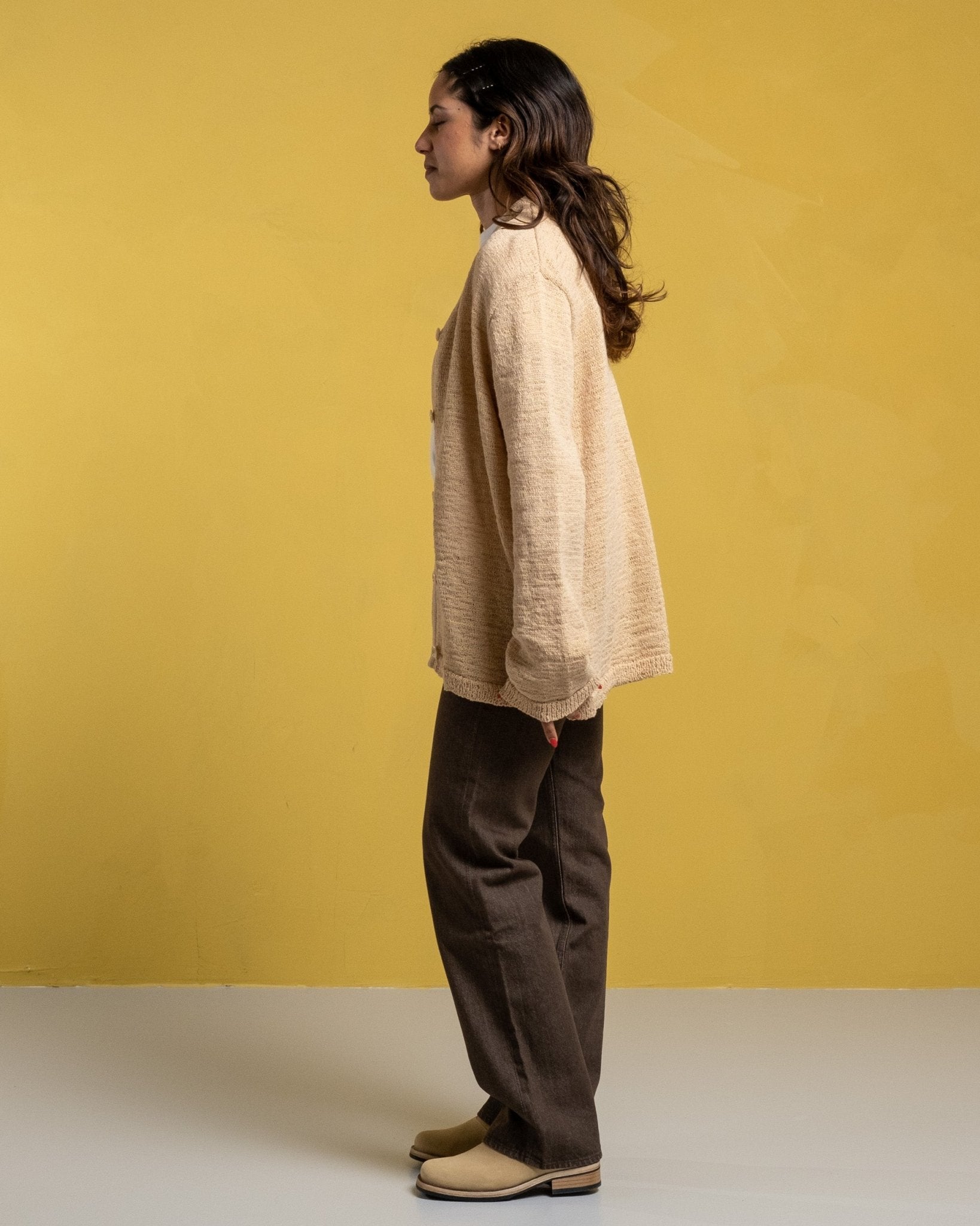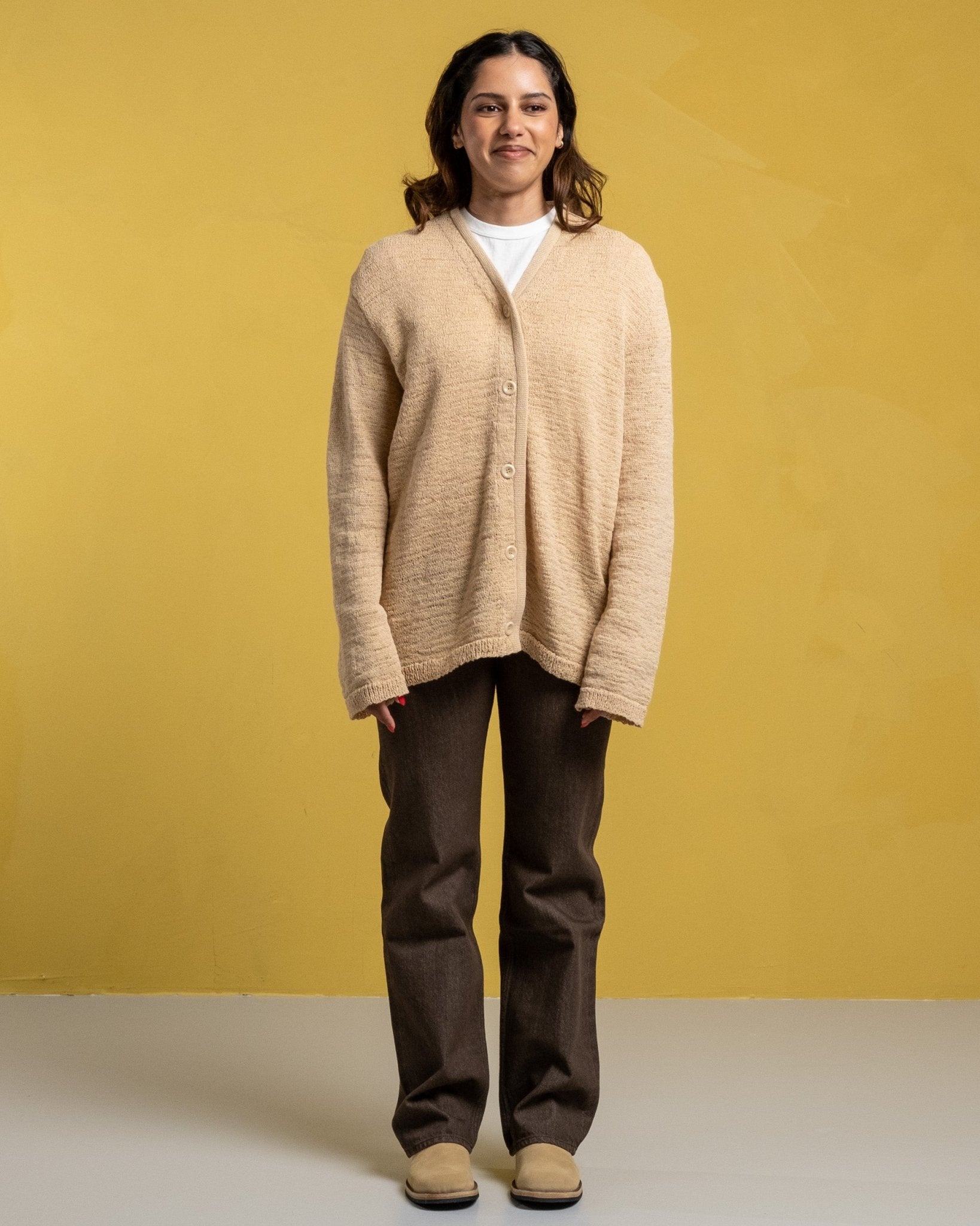 Strikket Cardigan Beige Falsk Snor W fra Our Legacy. Afslappet fit cardigan skåret fra et italiensk falsk snor polyamid stof. Med en knap ned foran med en v-hals krave og brugerdefinerede knapper. Fremstillet ved hjælp af et delikat materiale med en naturlig løs konstruktion. Venligst håndter med omhu og vask i henhold til vaskeanvisninger. Vær især forsigtig med smykker og andre spidse genstande, der kan skade overfladen. Fremstillet i Portugal.