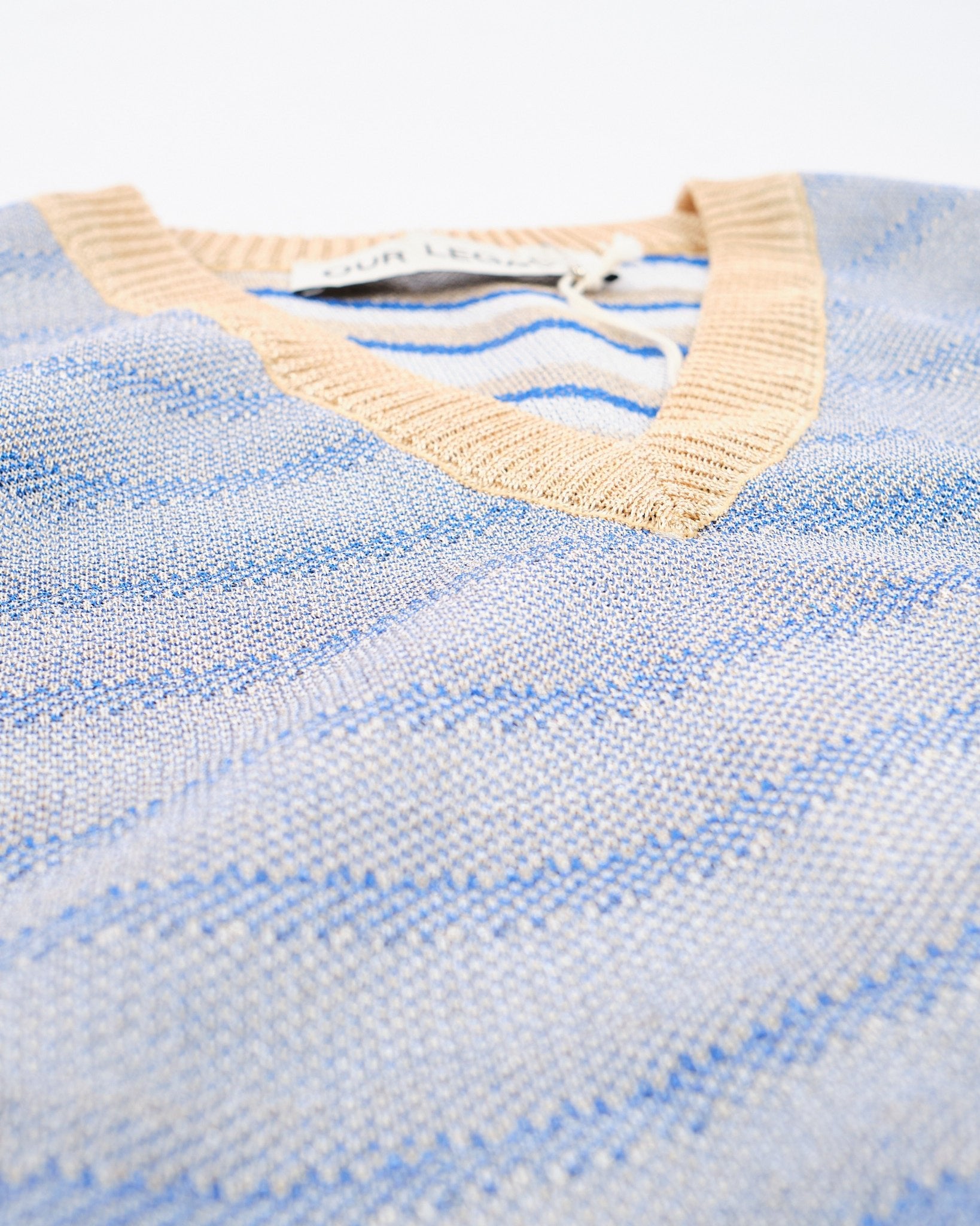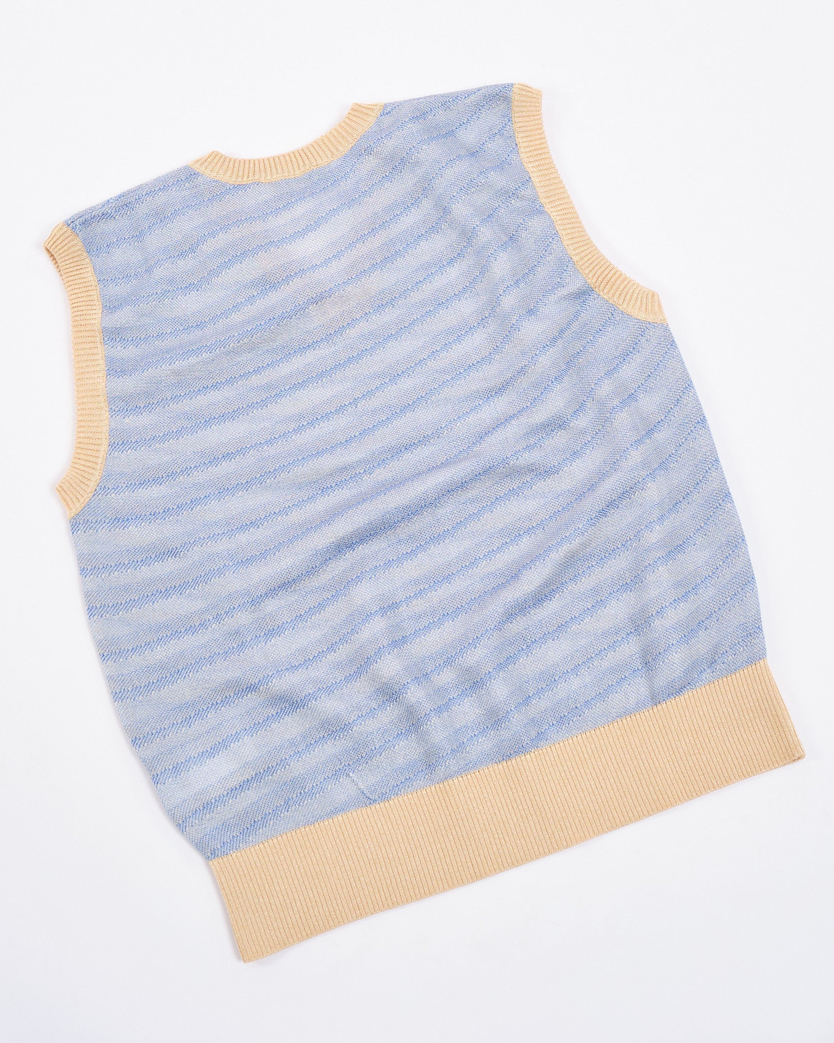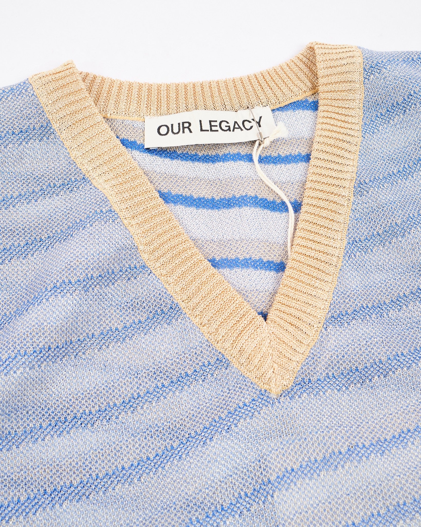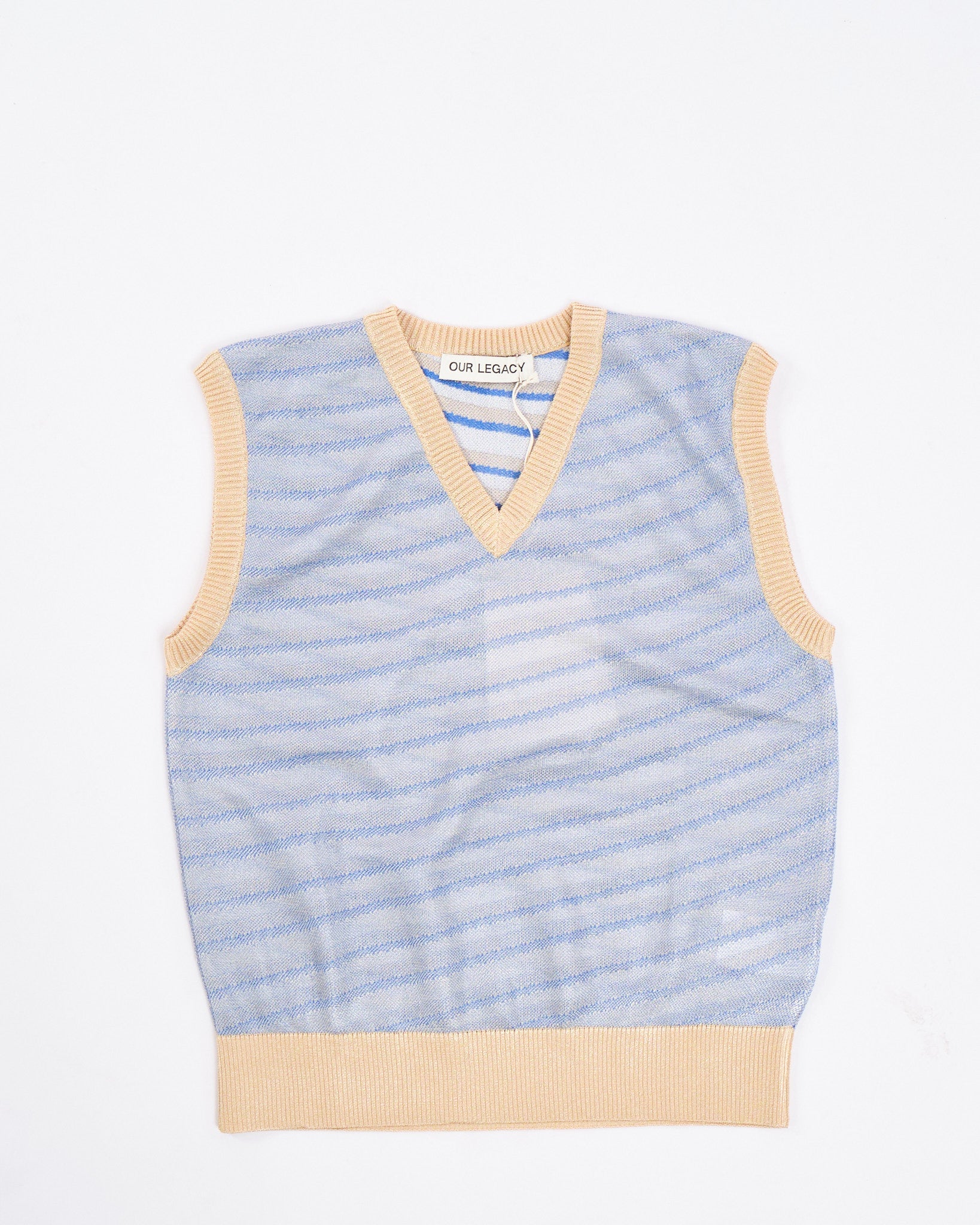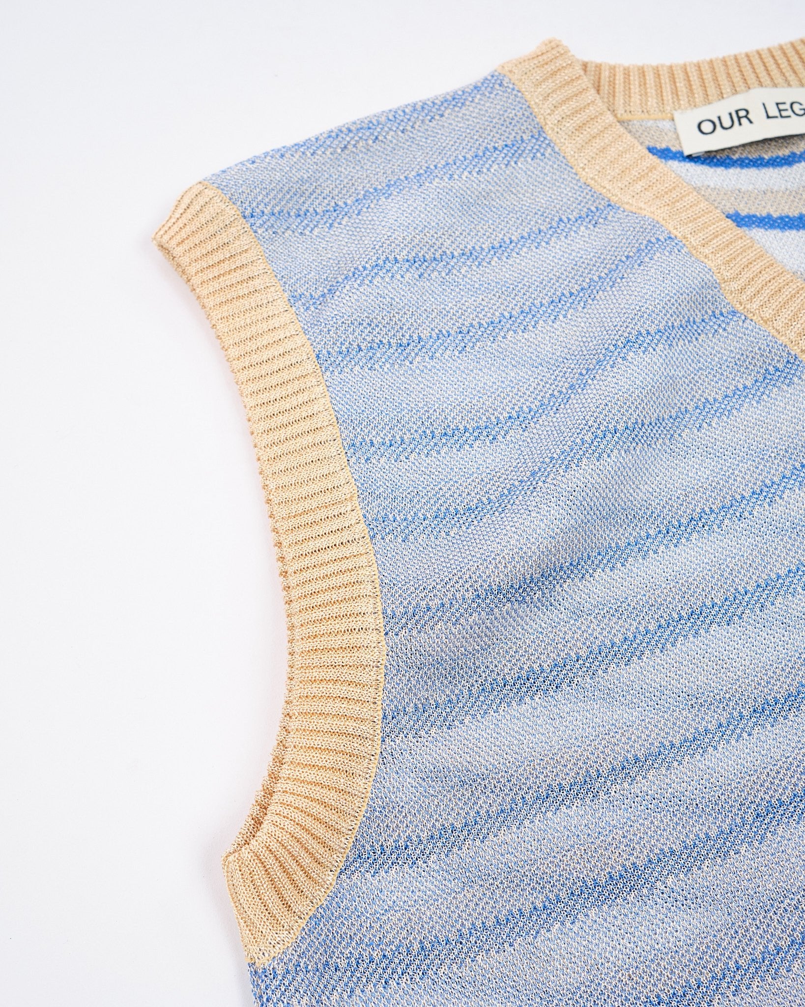Træd ind i en verden af elegant og bæredygtig mode med den Strikkede Vest i Tegneserie Statisk Stribe fra Our Legacy. Denne vest er dygtigt fremstillet af et stribet italiensk genanvendt polyester og polyesterblandingsgarn, som står som vidnesbyrd om vores engagement i miljøvenlig mode. Vesten har et slående lustrøst stribet stof og en afslappet pasform, der tilbyder både stil og komfort. Vesten inkluderer en V-hals, ribkant og ribkant i bunden, og er ærmeløs, perfekt til lag-på-lag eller at bære alene. Ligesom hvert unikt stykke fra Our Legacy, vil dette beklædningsgenstand naturligt blive slidt over tid, hvilket forbedrer dets karakter og afslutter dets designproces.
