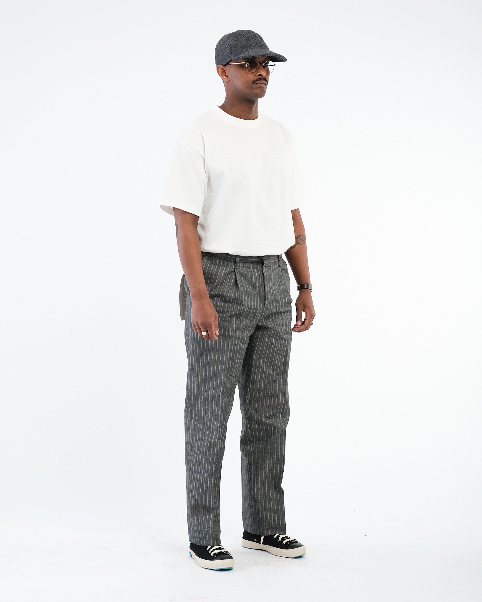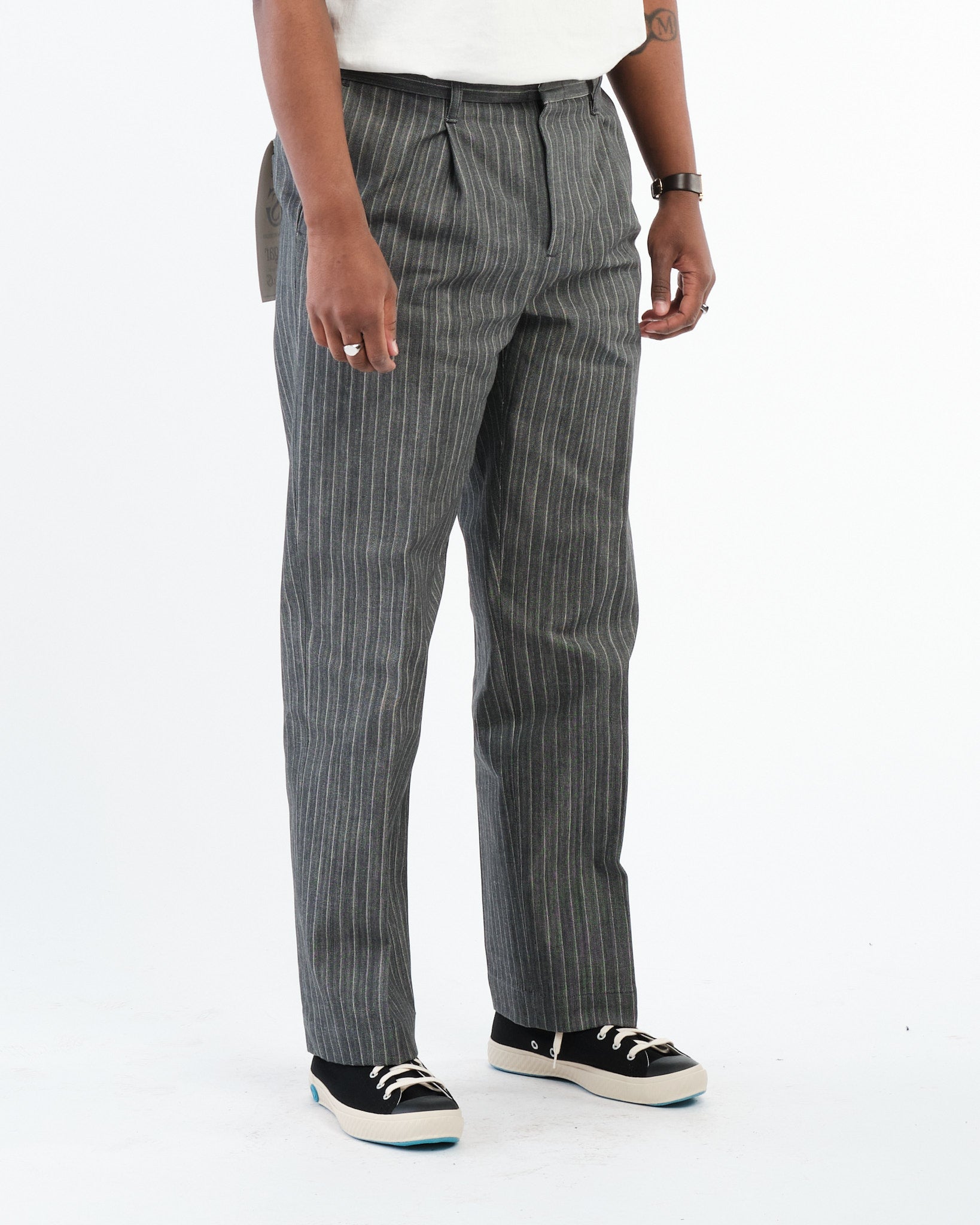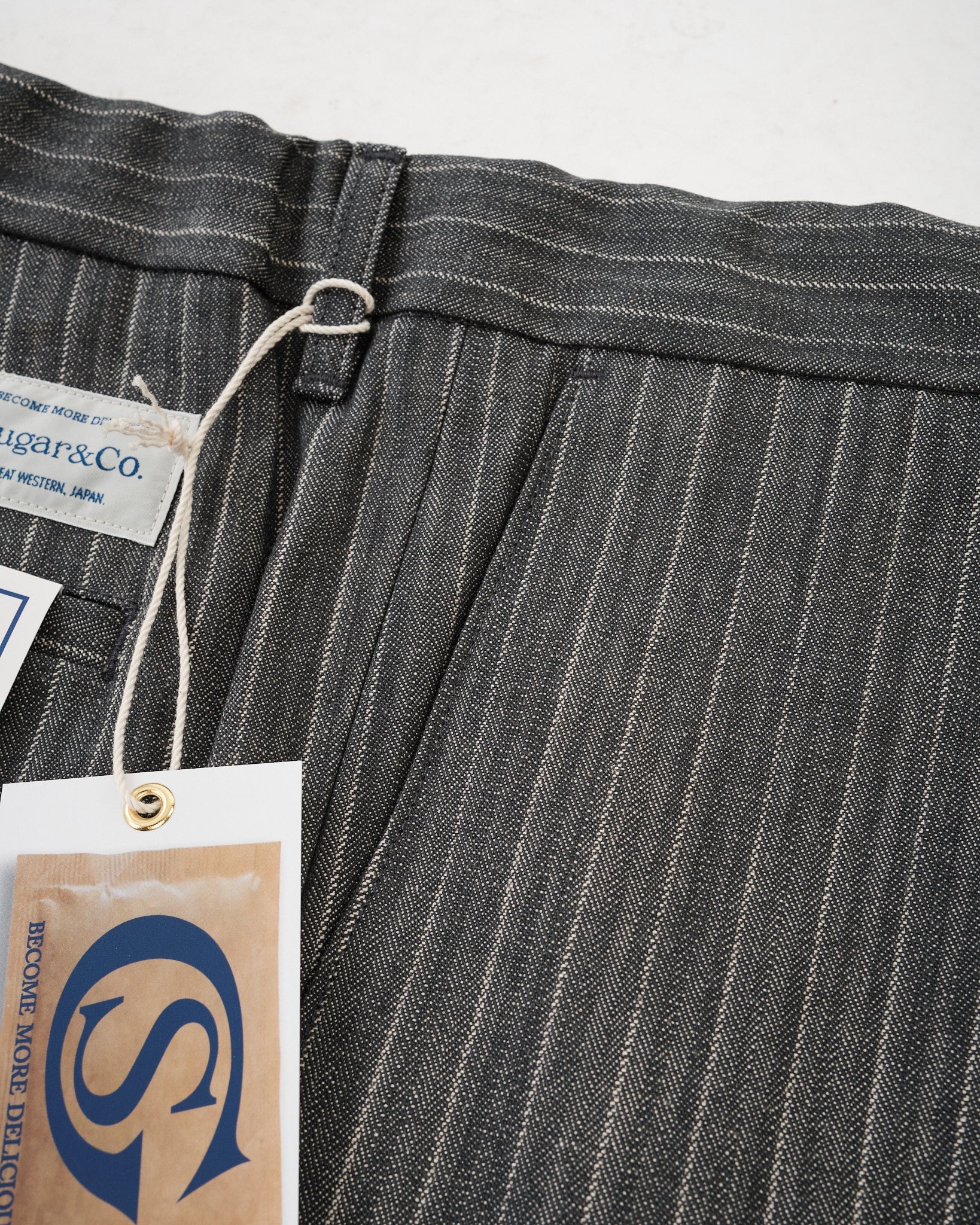 Uanset om de er parret med en klassisk t-shirt, en skarp knap-ned skjorte, eller lagdelt under en arbejdsjakke, bringer SUGAR & CO. STRIPED DENIM bukserne tidløs appel til enhver garderobe. Bygget til smukt at ældes, udvikler de karakter over tid, mens de opretholder deres stærke struktur.