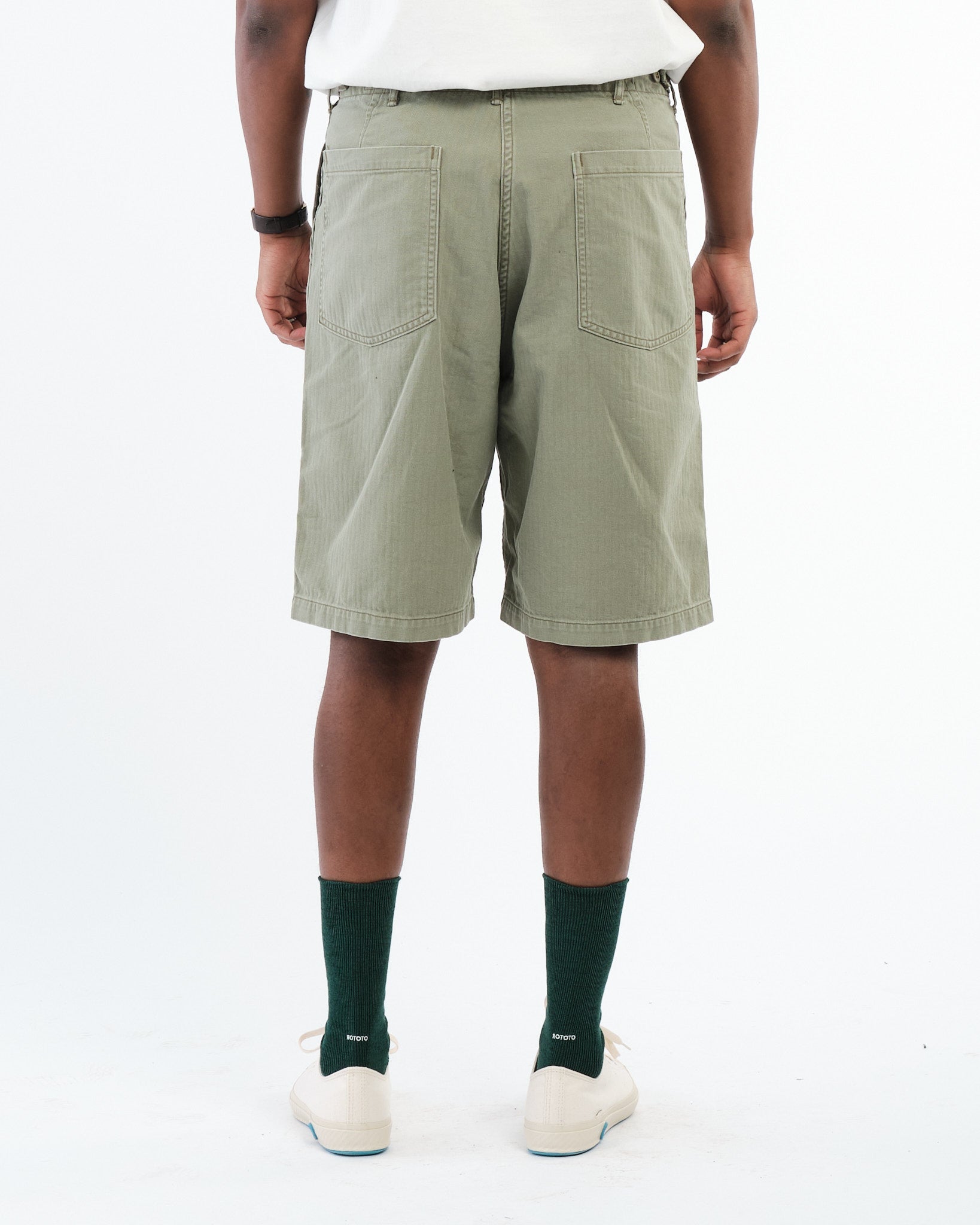 De orSlow Summer Fatigue Shorts i Grøn tilbyder et raffineret tag på klassiske militærinspirerede shorts, designet til varmt vejr komfort og hverdags alsidighed. Konstrueret fra 100% bomuld omvendt sateen stof, disse shorts giver en letvægts men holdbar fornemmelse, sikrer åndbarhed og langvarig brug.