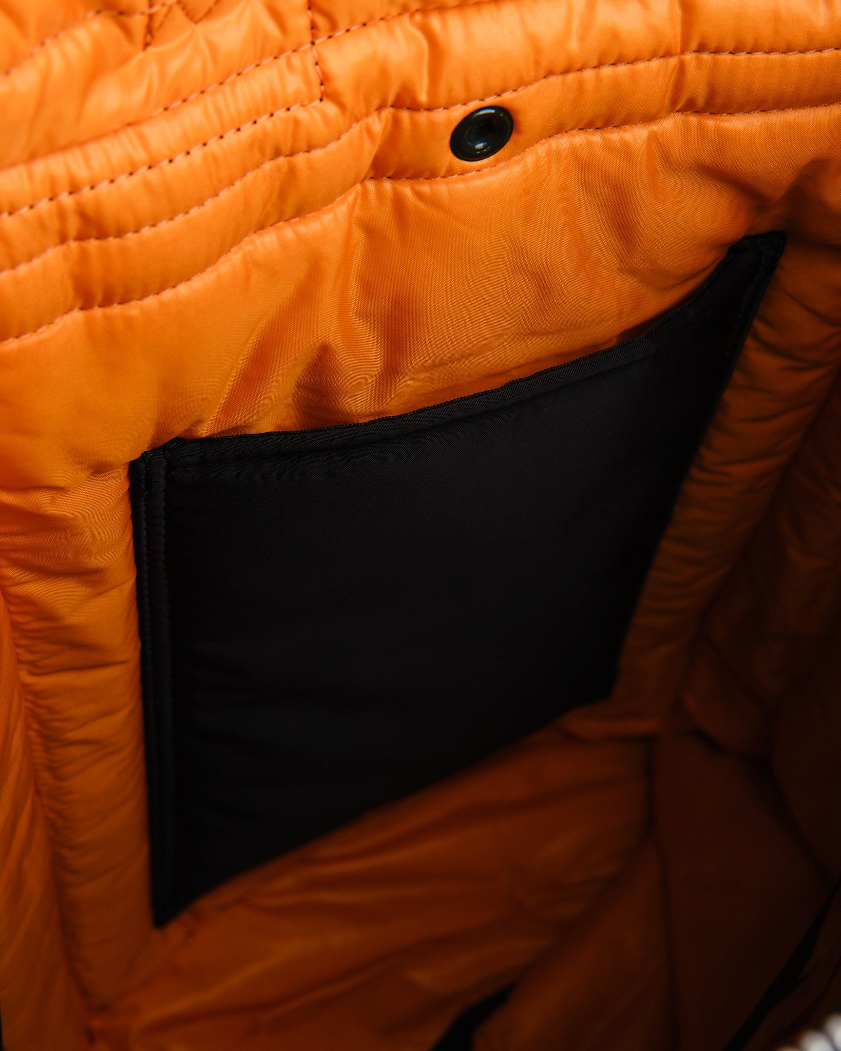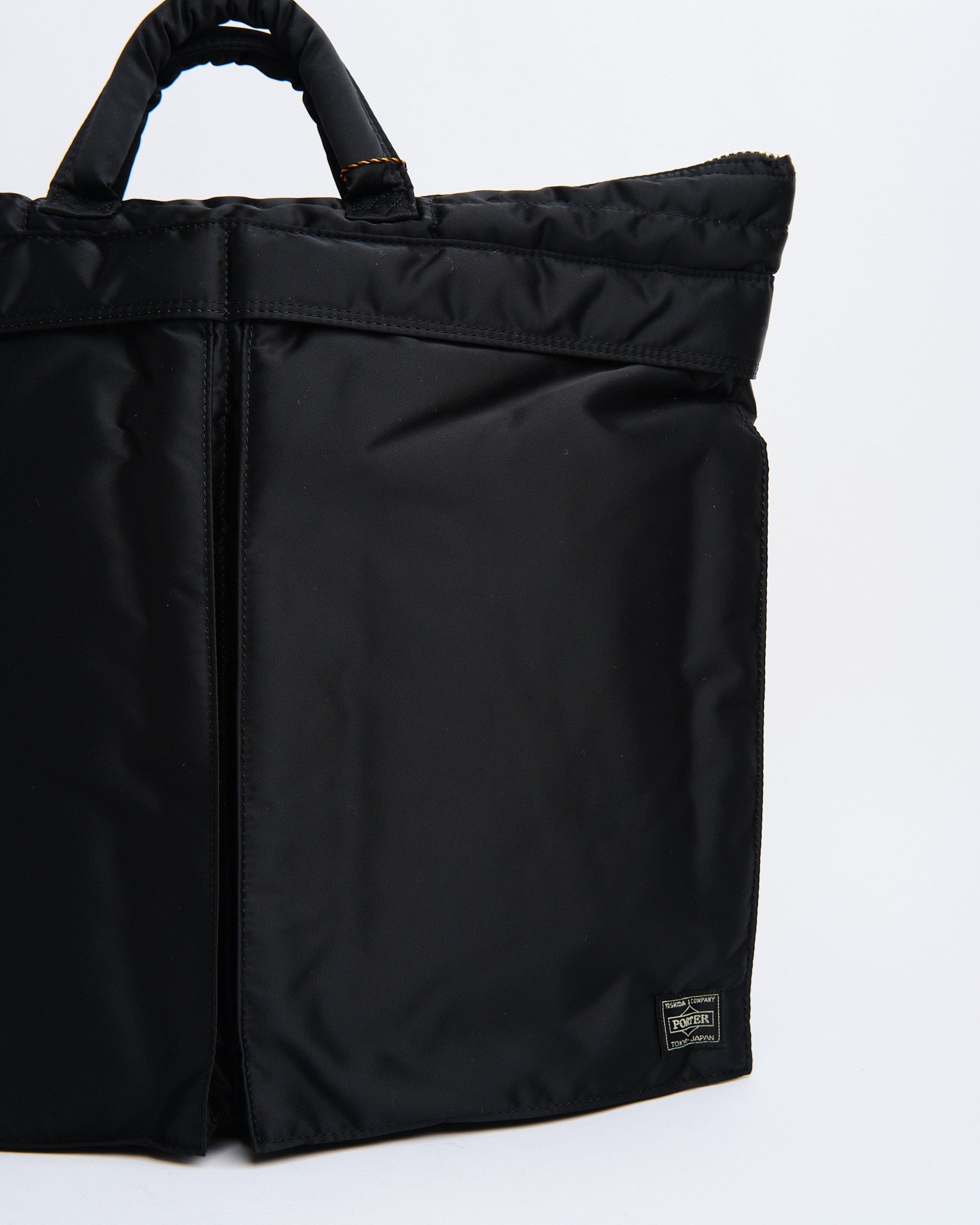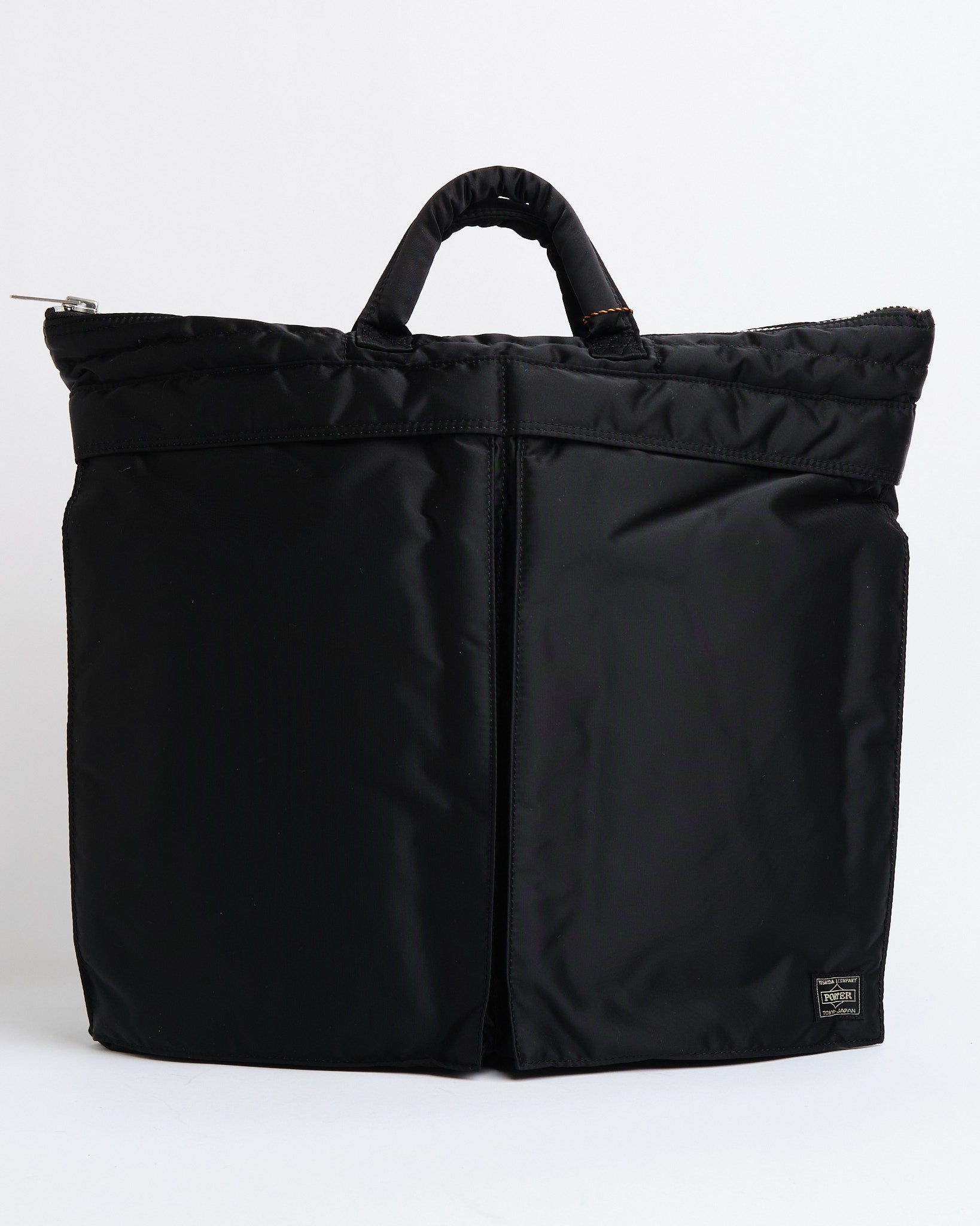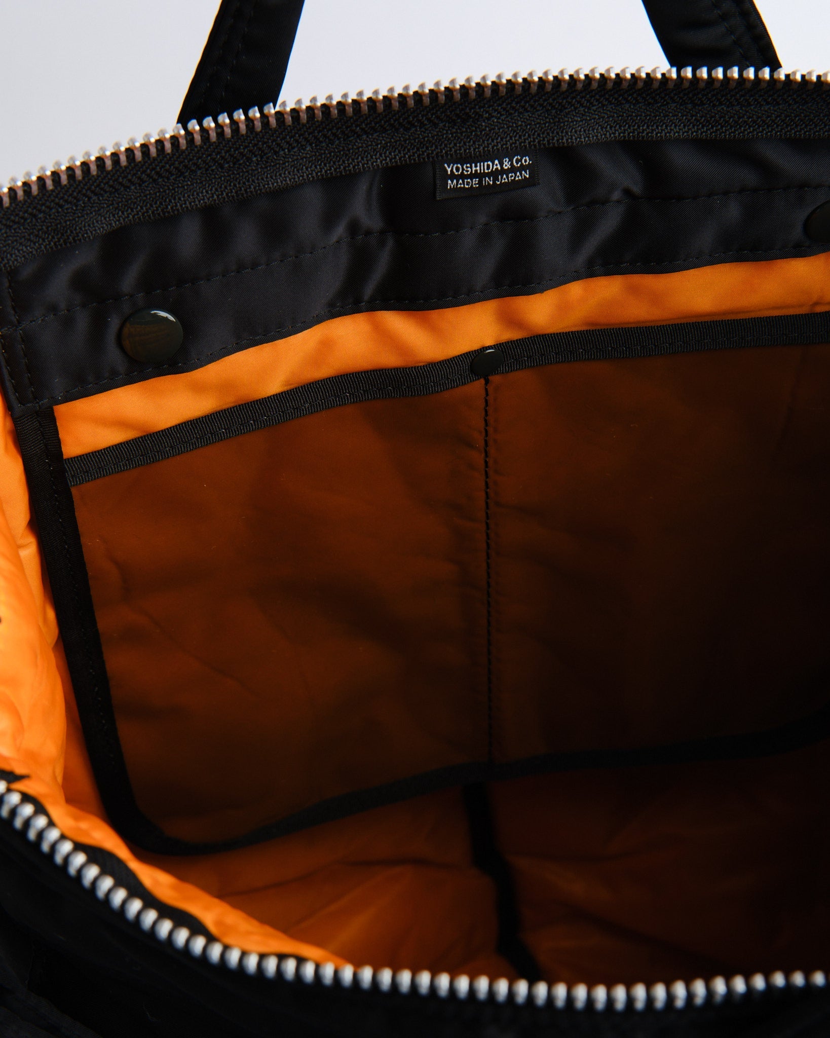 Introduktion af PORTER BY YOSHIDA TANKER 2 WAY HELMET BAG i SORT. Dette ikoniske stykke stammer fra den ansete "TANKER" serie, inspireret af US Air Force's MA-1 flyjakker. Fremstillet i Japan, har tasken en unik trelags stofblanding af nylon twill, polyester bomuld og nylon taffeta, hvilket gør den utroligt let men robust. Interiøret popper med en lys redningsorange, der ekkoer materialets bløde berøring. Oplev det detaljerede håndværk i hver syning og snit.