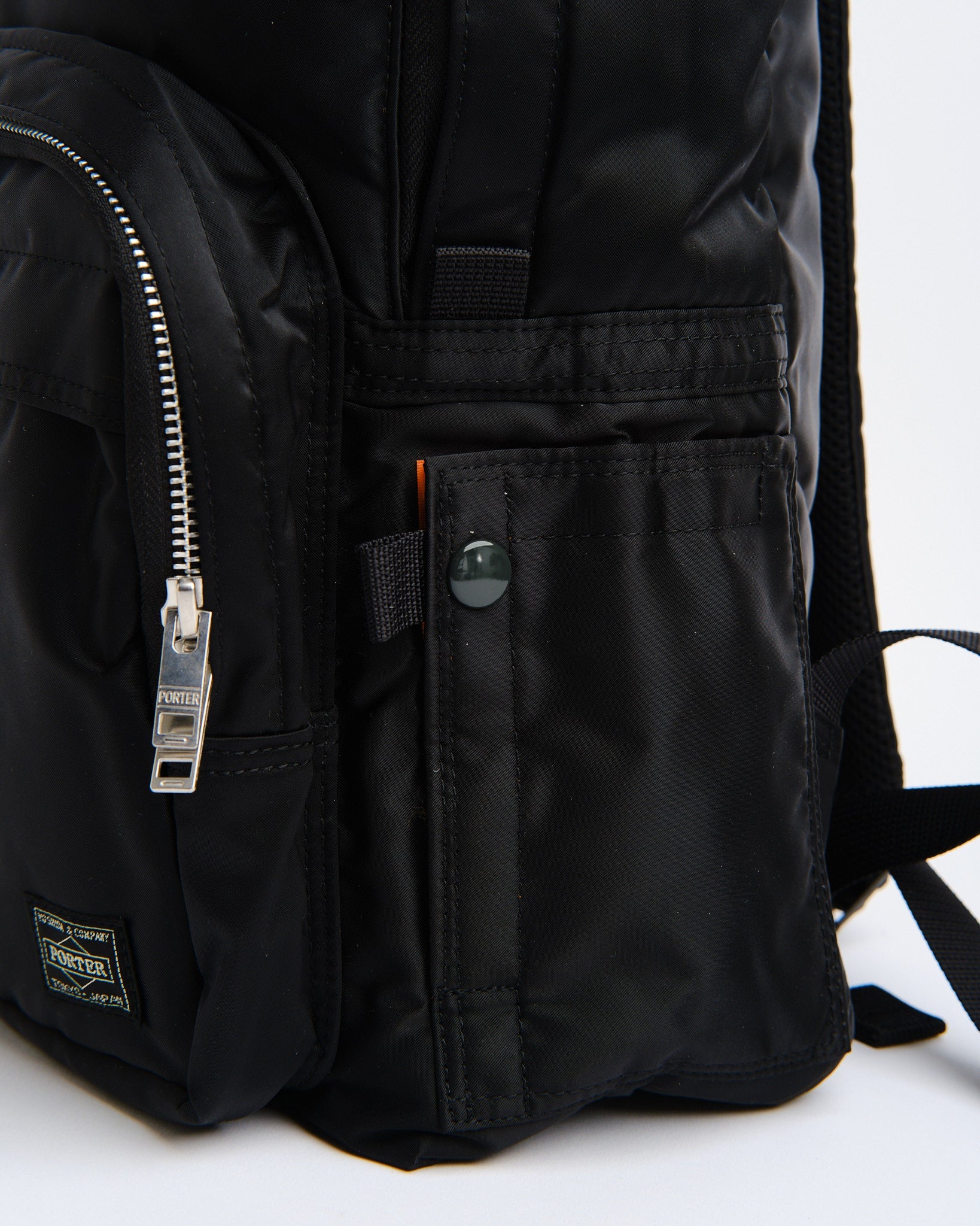 Hæv din hverdagslook med den ikoniske TANKER Daypack fra Porter. Denne sorte skønhed kommer fra Japan og er en del af PORTERs klassiske "TANKER" serie, inspireret af US Air Force MA-1 flyjakken. Fremstillet af et unikt trelagsstof af nylon twill, polyester bomuld og nylon taffeta, er denne rygsæk ikke kun holdbar; den er designet til komfort. Med målene W300 x H430 x D130 mm er den rummelig nok til at bære alle dine essentielle ting, samtidig med at den bevarer en slank profil. Åh, og gæt hvad – disse hardwaretilbehør er bevidst lavet så malingen skaller af over tid, hvilket tilføjer et robust, slidt look. Nej, det er ikke en fejl; det er karakter. Det lyse redningsorange indre for kompletterer det eventyrlige, men raffinerede æstetik. Dette er ikke bare en rygsæk; det er et livsstilsvalg.