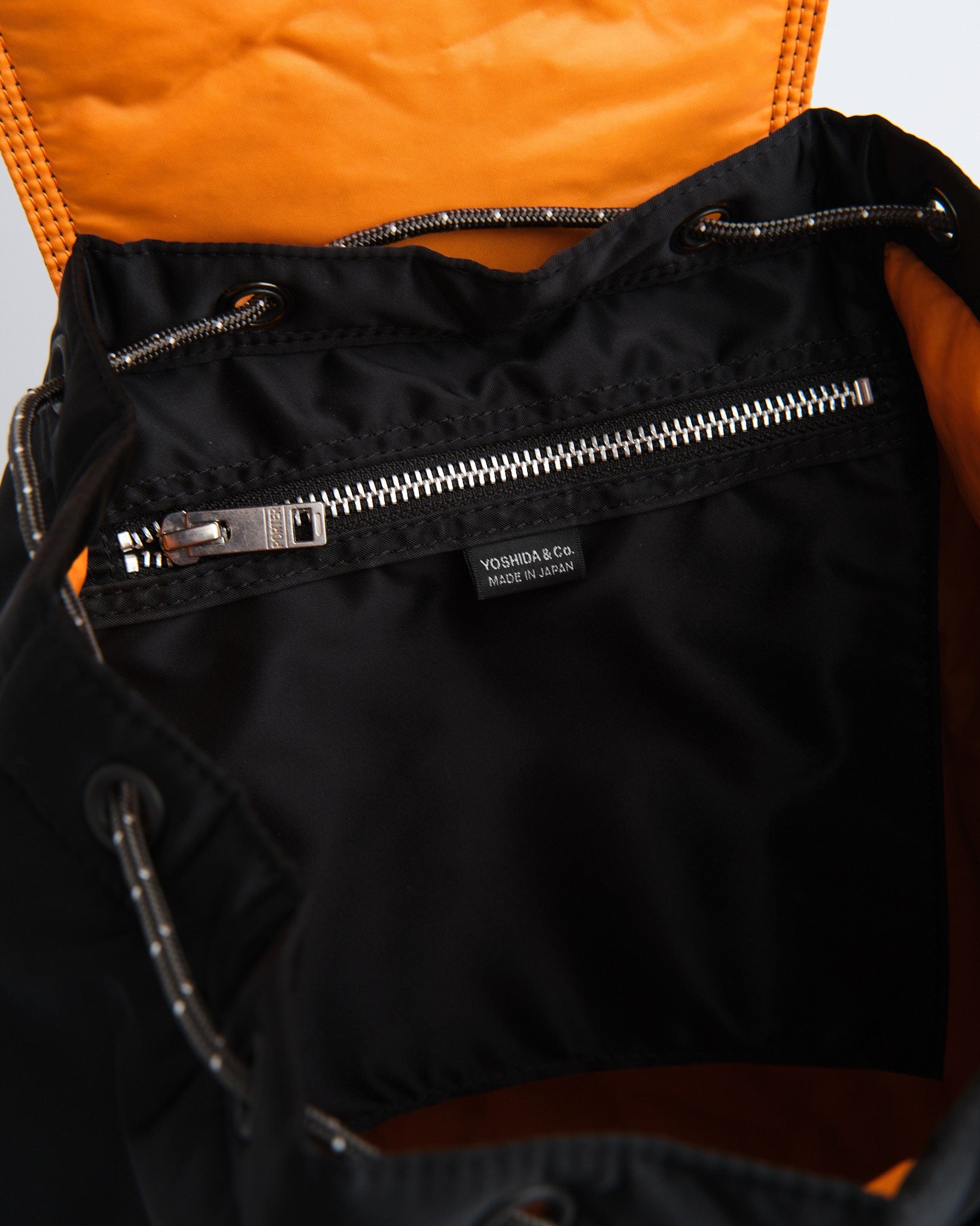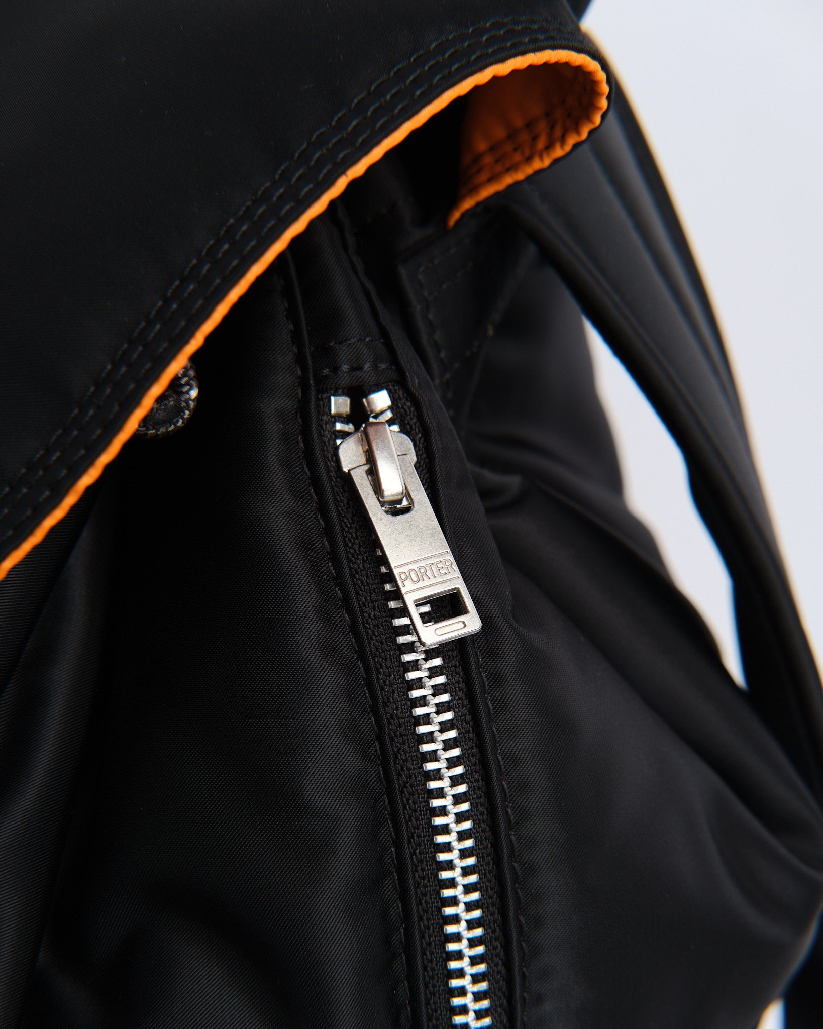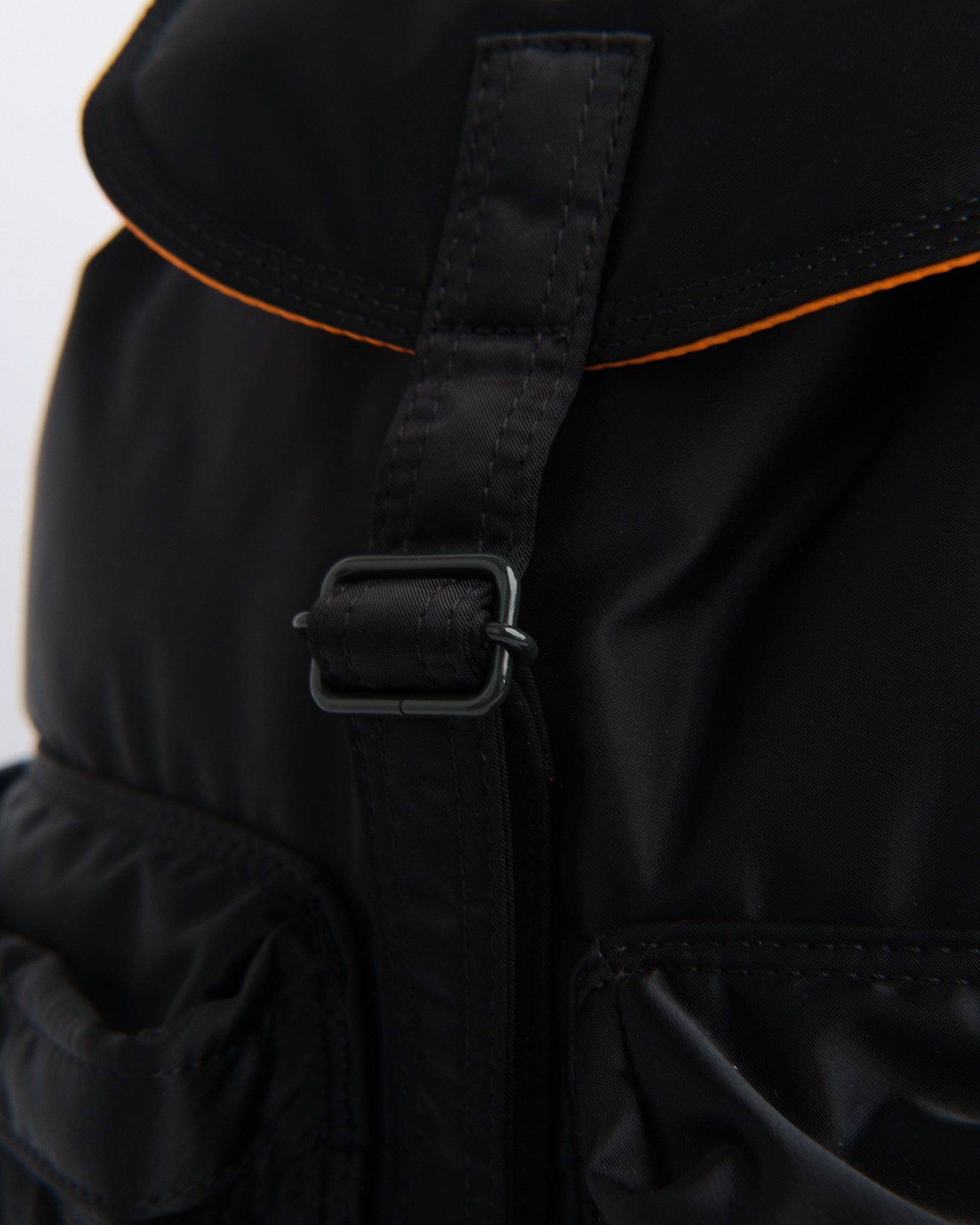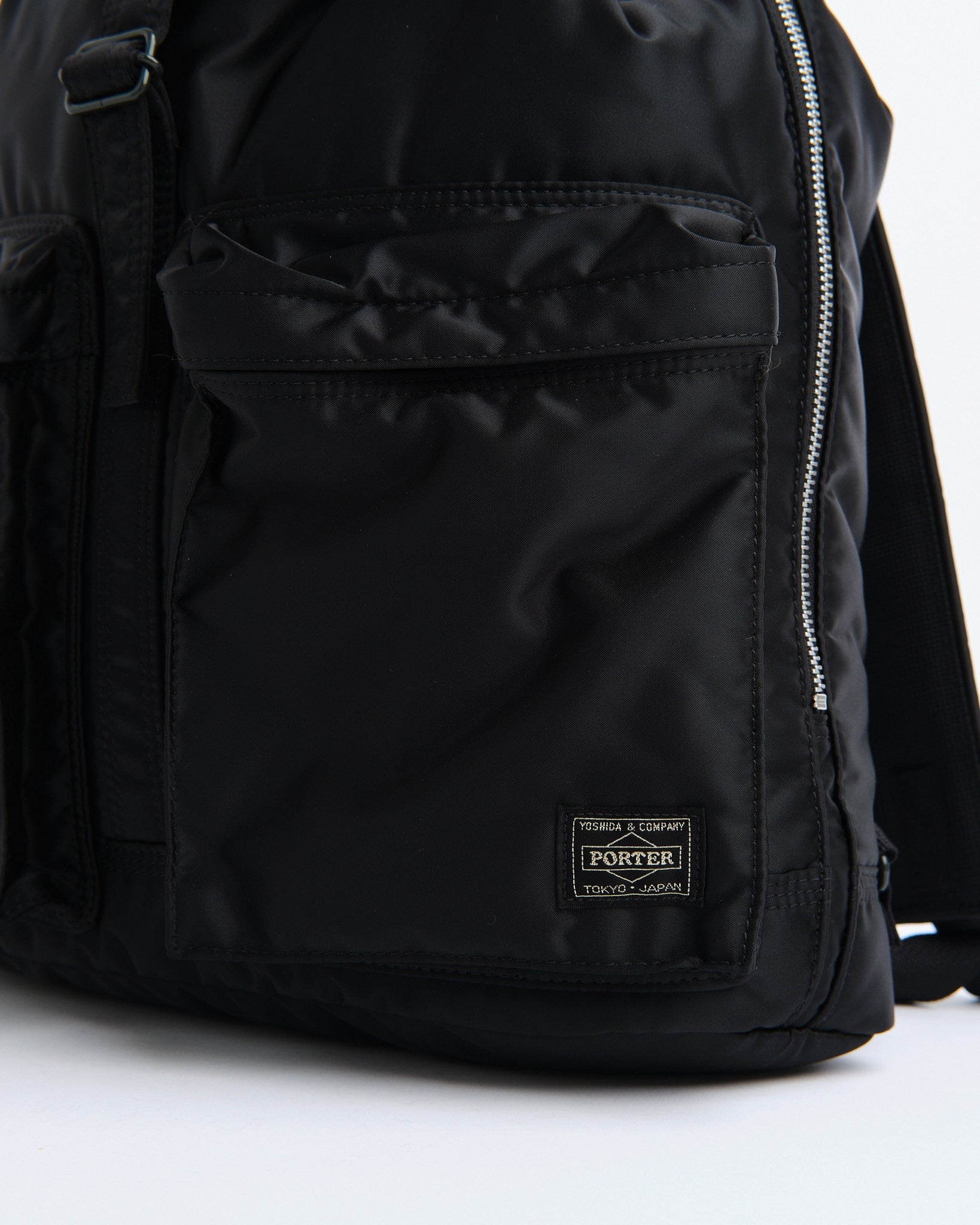 Præsenterer PORTER YOSHIDA 622-79312-10 TANKER RYGSÆK i SORT. Denne rygsæk er ideel til brug og er designet til praktisk opbevaring af A4-størrelse dokumenter. Sidelynlåsen giver adgang til hovedrummet, hvilket gør det muligt for dig at indsætte og hente dine ejendele uden at skulle åbne klappen. Udstyret med to lommer med udvidelige kiler tilbyder den masser af opbevaringsplads og praktisk anvendelighed. Fremstillet af nylon twill med en polyester bomuldsblanding og foret med nylon taffeta, fremviser denne rygsæk et broderet Porter emblem, aluminiums fastgørelser og trykknapper. Håndlavet i Japan kombinerer den problemfrit funktionalitet med kunstneri. Størrelse; 330 x 430 x 130 mm (13in x 16.9in x 5.1, in). Vægt; 550g (19.4oz). Kapacitet; 16L.