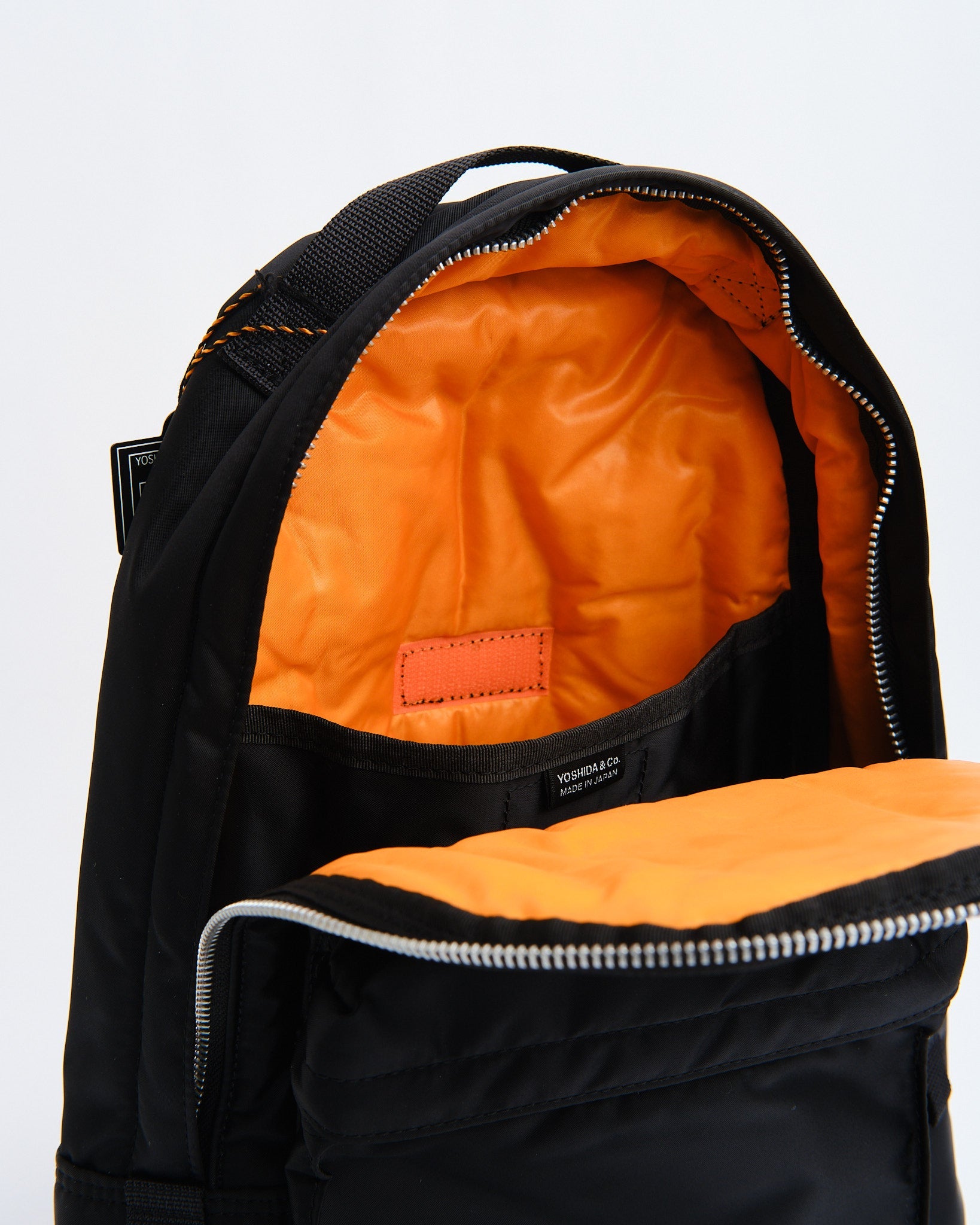 Oplev blandingen af stil og praktisk anvendelighed med PORTER YOSHIDA TANKER RYGSÆKKEN i klassisk sort. Inspireret af U.S. Air Force MA 1 flyverjakken fremviser denne rygsæk en unik trelags stofkombination af nylon twill, polyester bomuld og nylon taffeta. Håndlavet i Japan af håndværkere fra Yoshida Kaban, tilbyder den et let og holdbart design. Tankerens kompakte størrelse er udstyret med lommer, hvilket gør den ideel til daglig brug eller som en bekvem rejsekammerat. Med sit iøjnefaldende redningsorange interiør tilføjer den et strejf af sofistikering til dens appel.