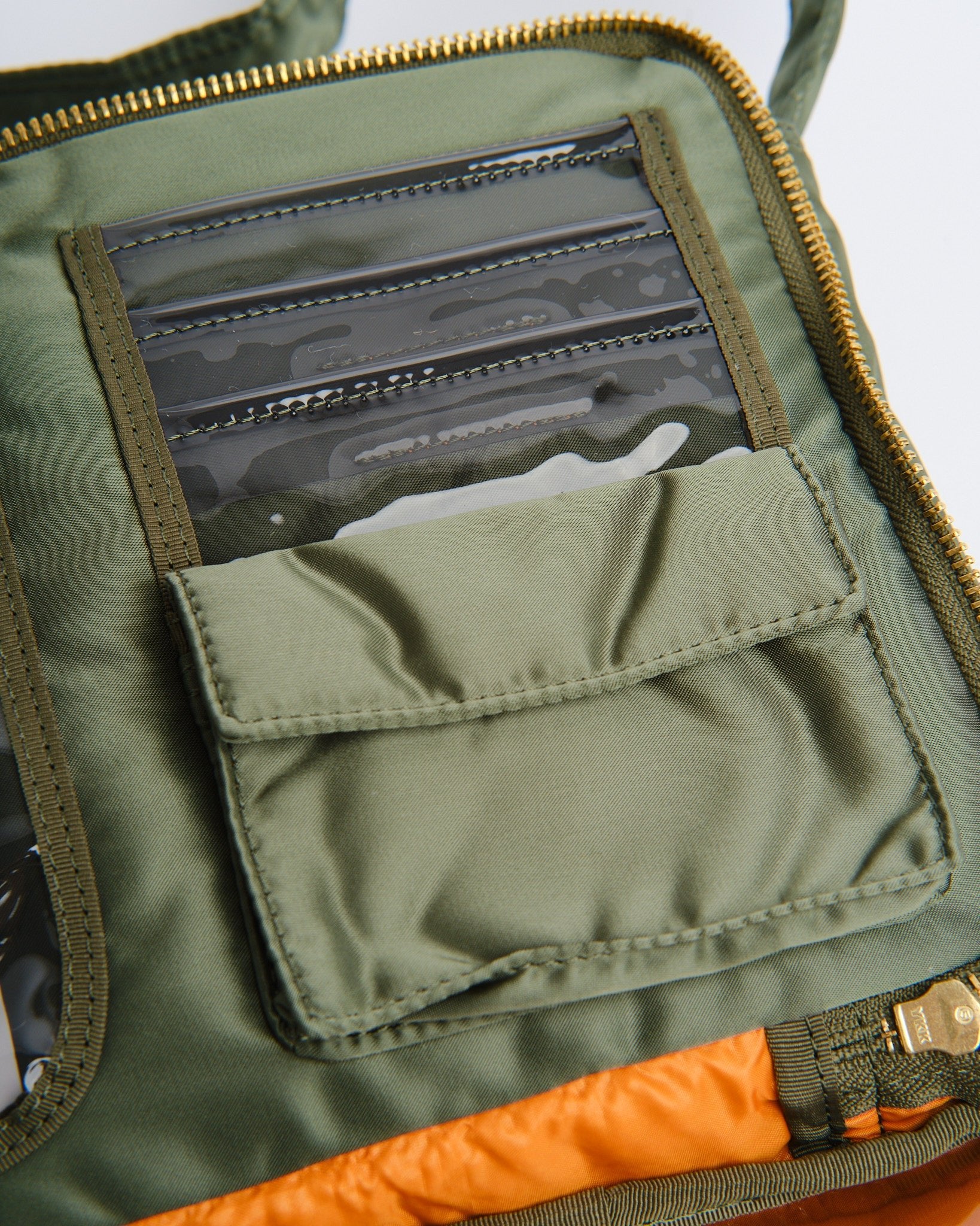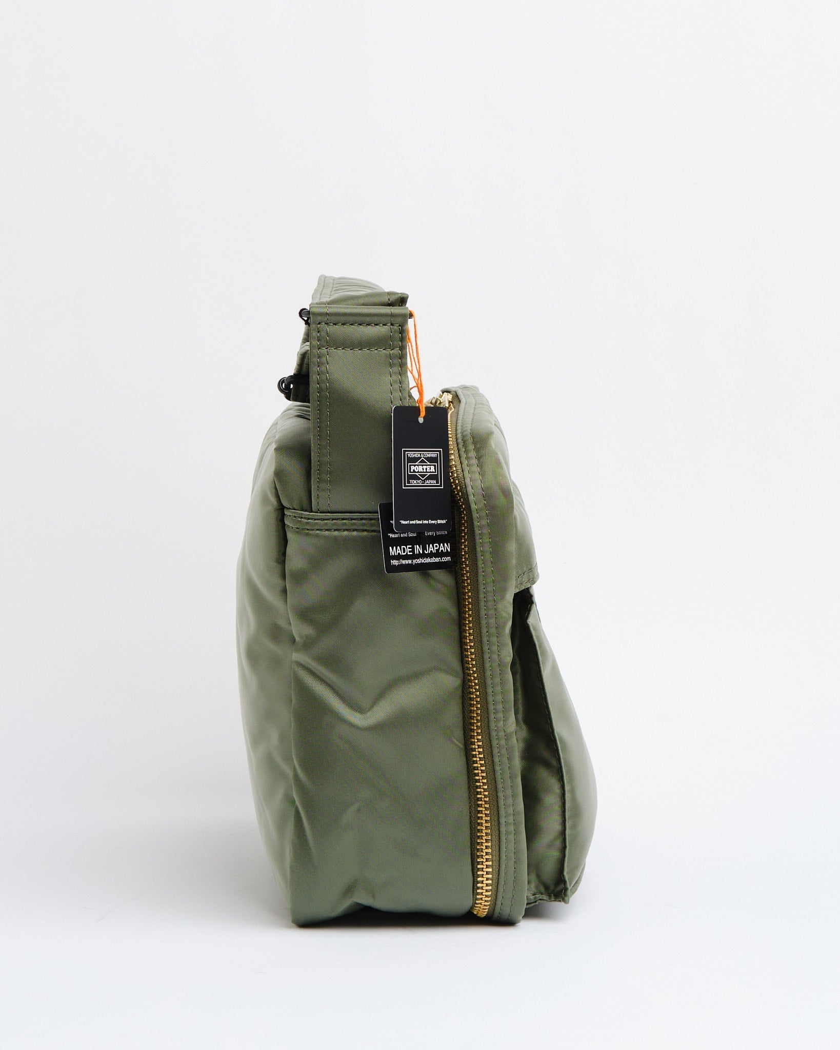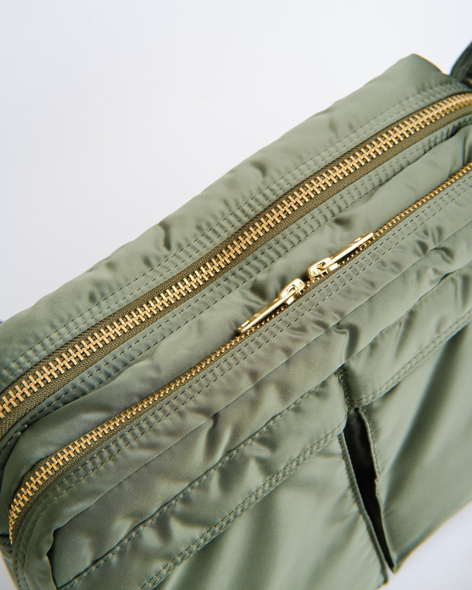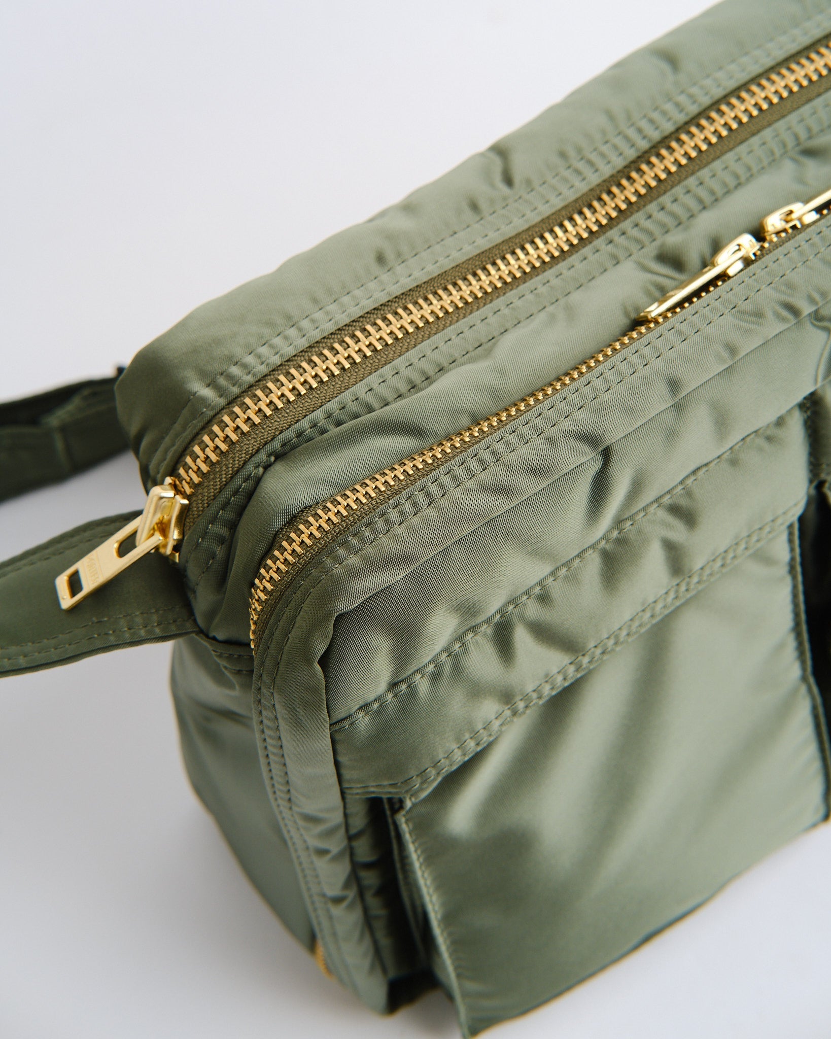 Oplev skønheden i naturen med PORTER YOSHIDA TANKER SHOULDER BAG (S) i en nuance af Sage Green. Denne udsøgte taske, omhyggeligt håndlavet i Japan, forener stil og praktik på smukkeste vis. Fremstillet af kvalitets 100% nylon sikrer den holdbarhed og nem brug. Det rummelige hovedrum med lynlås og to forlommer tilbyder organisering for alle dine ejendele. Med sit mærkepatch og justerbare skulderrem kombinerer denne taske funktionalitet med et fredfyldt æstetik. Med dimensioner der måler Længde; 28cm, Højde; 20cm Dybde; 11cm er det tilbehøret, der løfter dit raffinerede udseende.