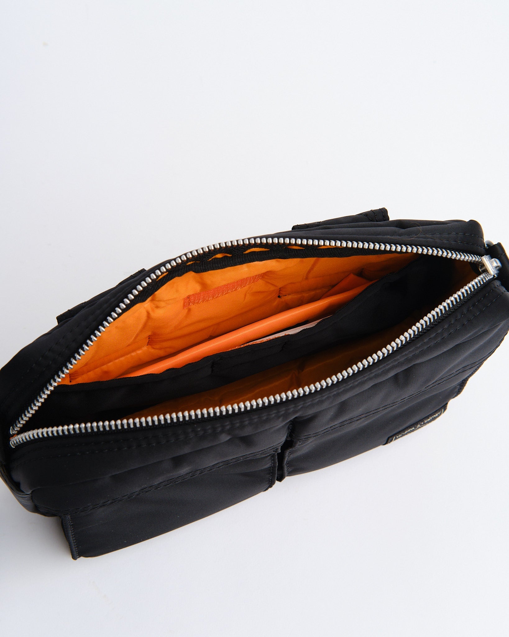 Præsenterer den praktiske PORTER YOSHIDA TANKER SKULDERTASKE i sort. Denne taske, inspireret af MA 1 flyjakken, er en del af den ansete "Tanker" kollektion, som først blev introduceret i 1983. Den viser smukt Japans håndværk. Fremstillet med et trelagsstof bestående af nylon twill polyester bomuld og nylon taft, tilbyder den en let fornemmelse og har den ikoniske sikkerhedsorange foring. Med en justerbar skulderrem tilbyder den et hoved lynlåsrum og to ydre lommer for praktisk organisering. Stolt håndværket i Japan, eksemplificerer denne taske PORTER YOSHIDAs engagement, til excellence og innovation.