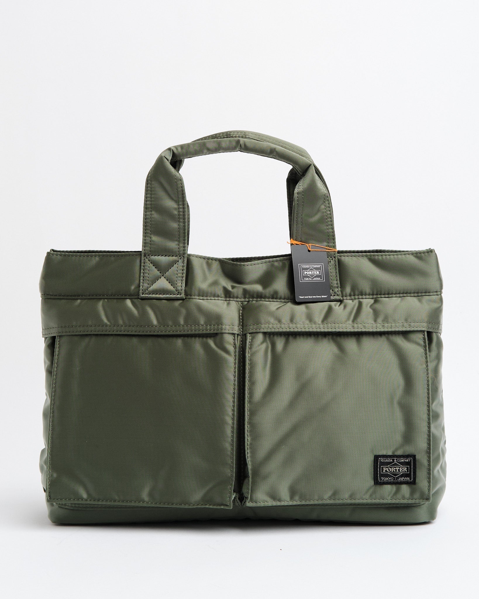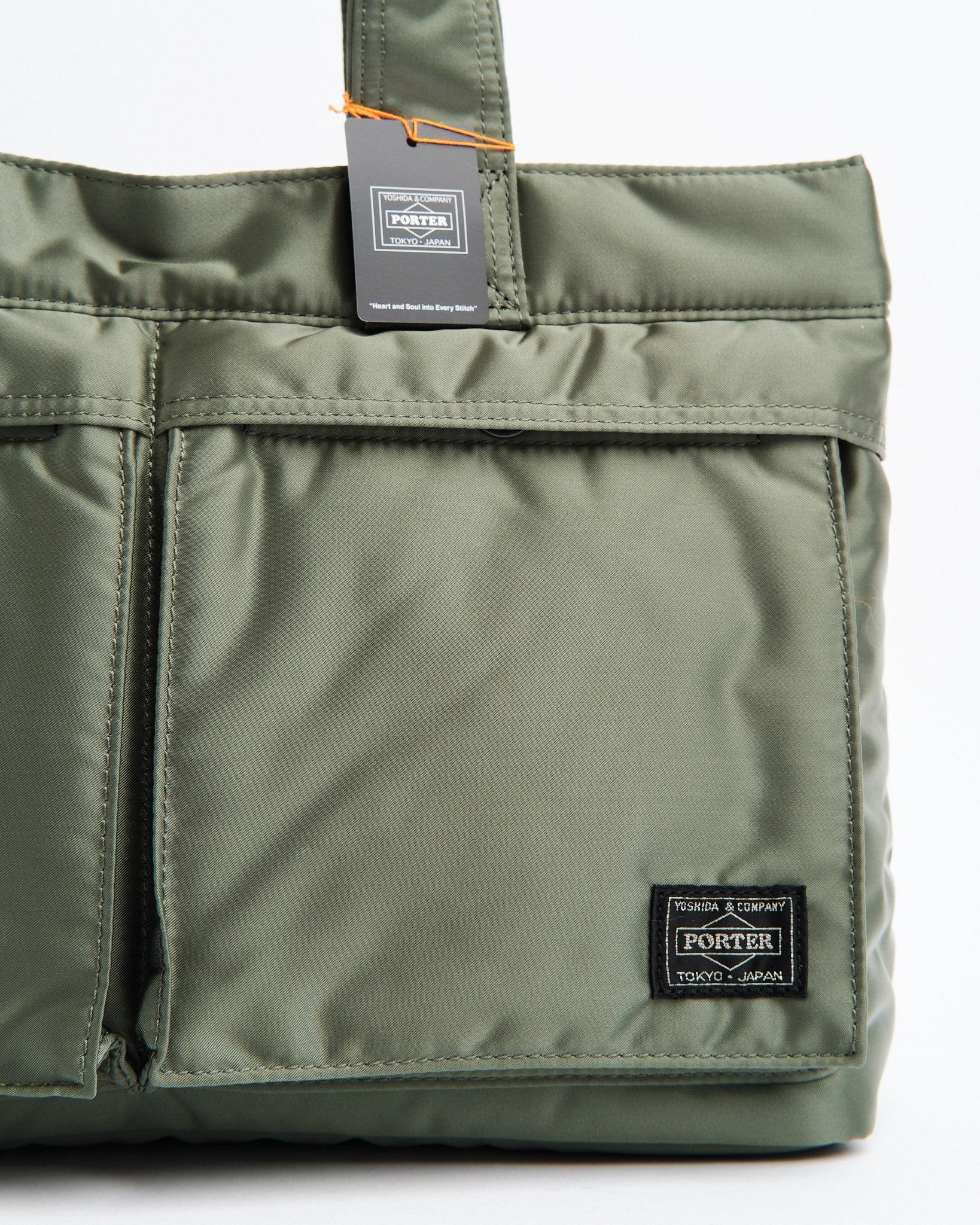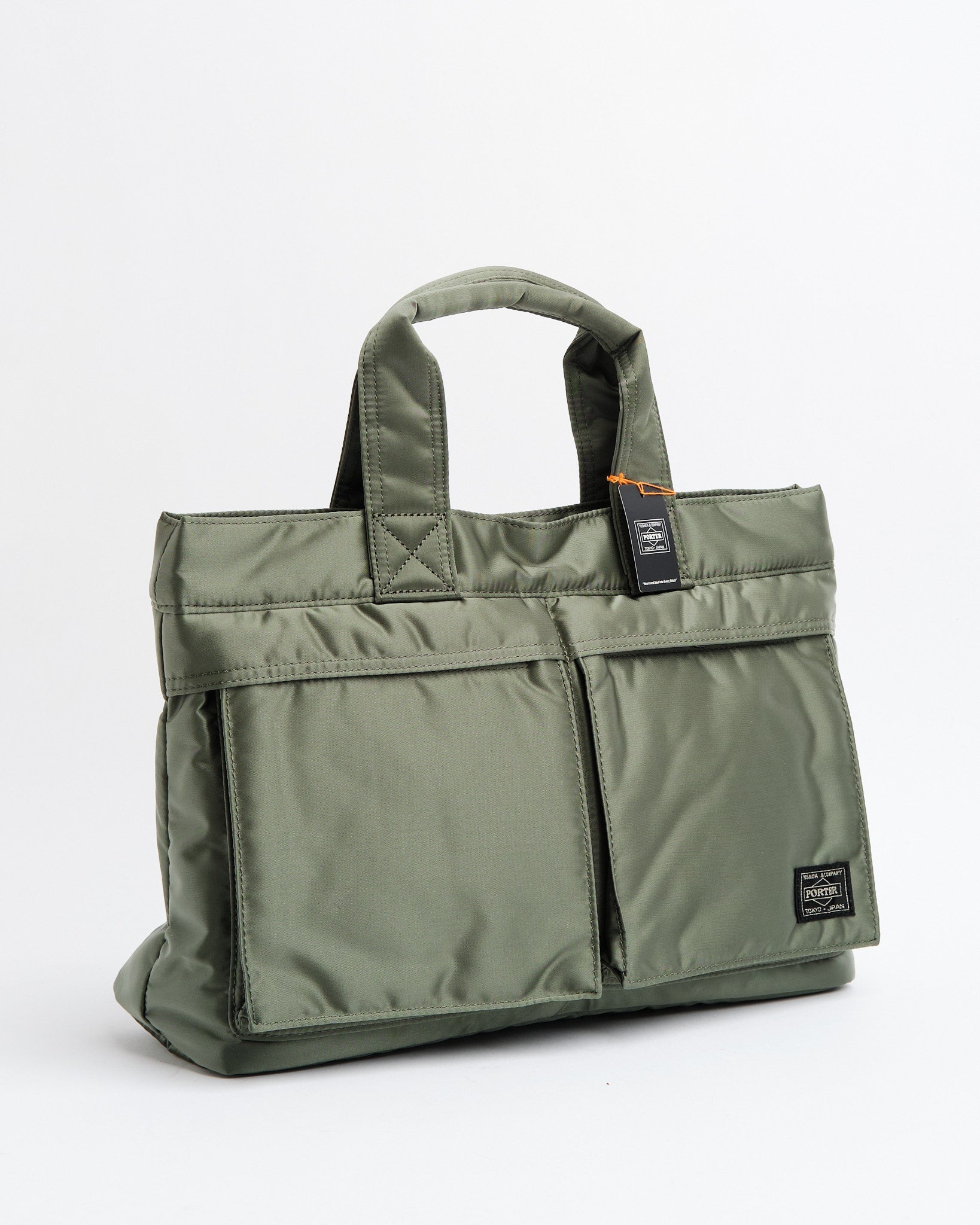 Tjek PORTER YOSHIDA 622 76995 30 TANKER TOTE BAG ud i en SALVIEGRØN nuance. Denne tote er en del af Tanker-serien, som havde sin debut i 1983 og hentede inspiration fra US Air Forces flyjakke MA 1. Fremstillet med en tre-lags blanding af nylon twill polyester bomuld og nylon taft, er denne taske let, men robust. Den livlige redningsorange foring tilføjer et pop af farve. Med et horisontalt design og to tanker-stil forlommer er den fantastisk til at bære must-haves som en 500ml vandflaske eller madkasse. Med målene B; 340mm, H; 240mm, D; 130mm (B; 13,4in H; 9,4in D; 5,1in) og en vægt på 325g (11,5oz) tilbyder den rigelig plads uden at gå på kompromis med stilen. Håndlavet i Japan viser denne taske Yoshida&Co.s sans for detaljer.