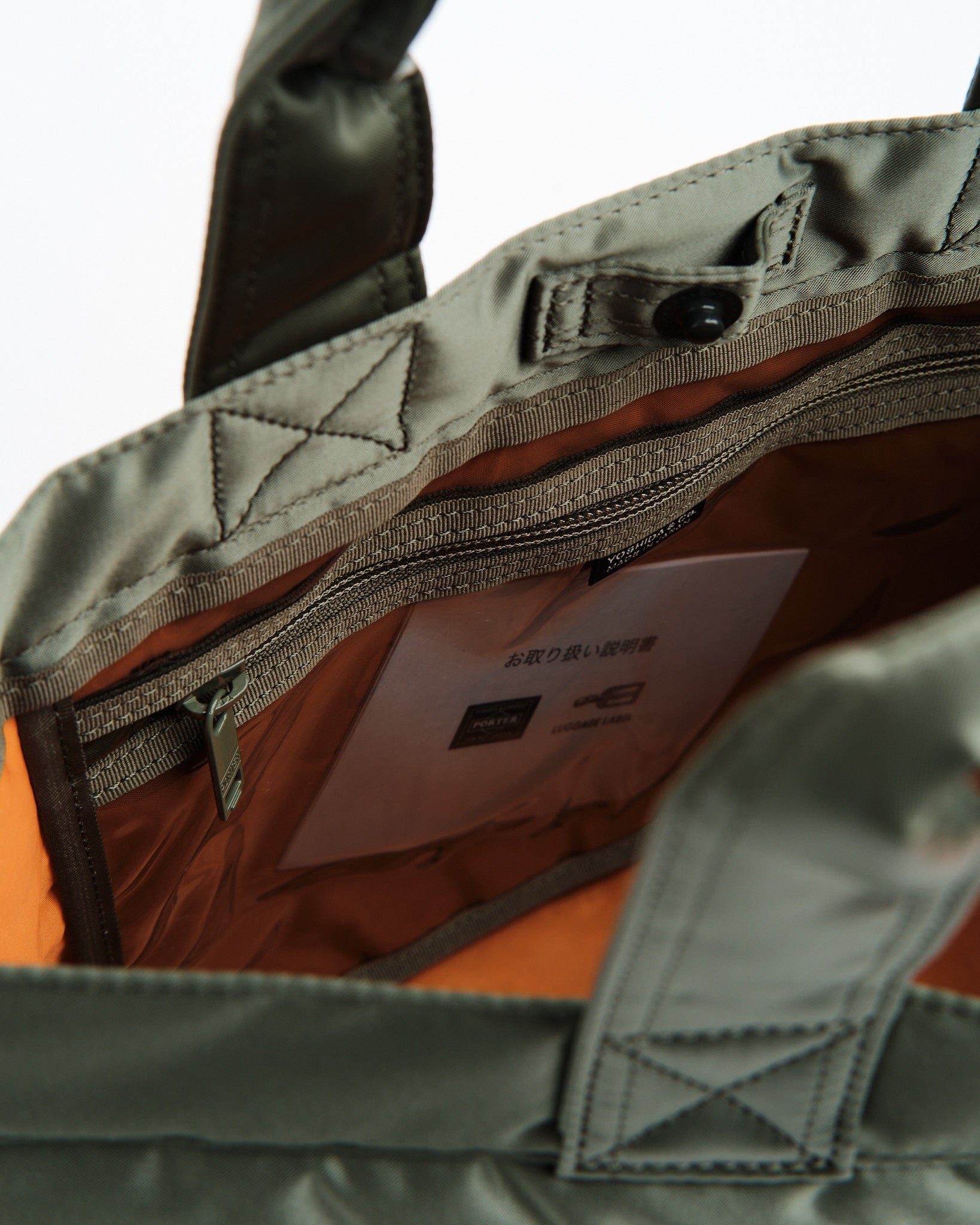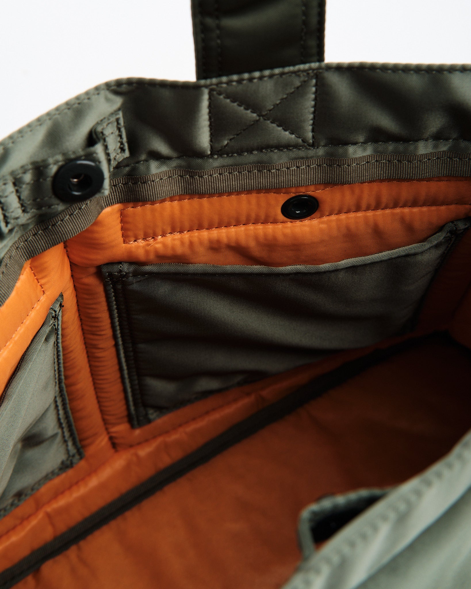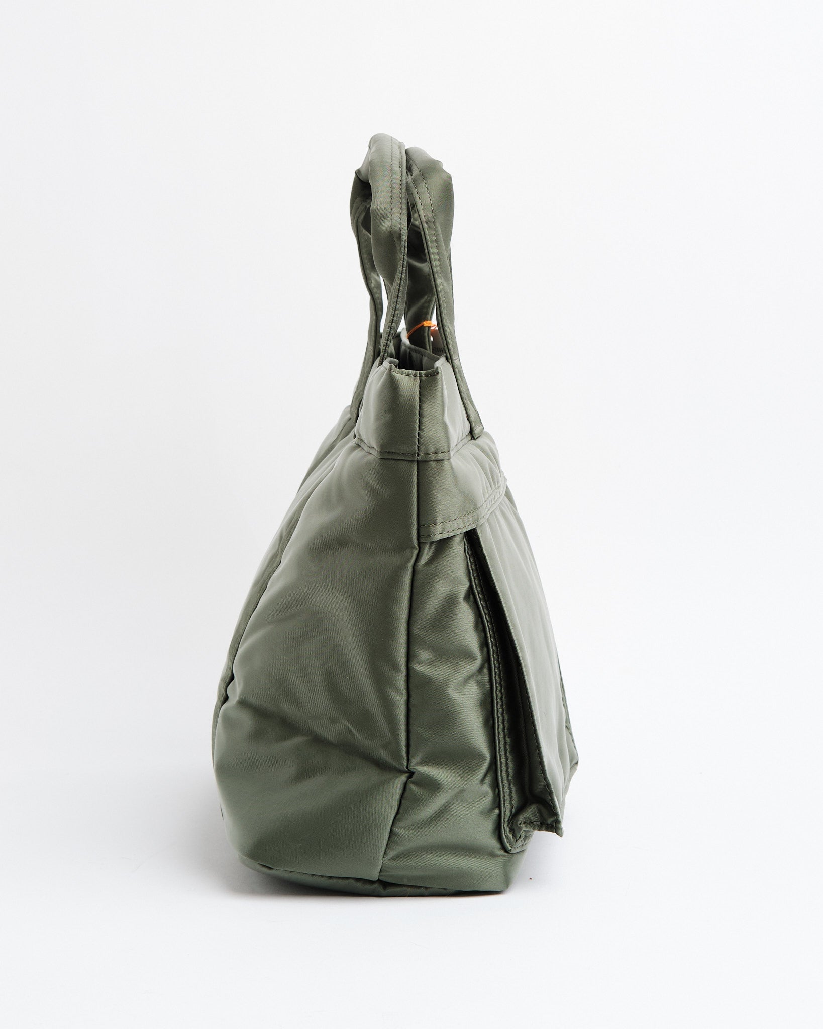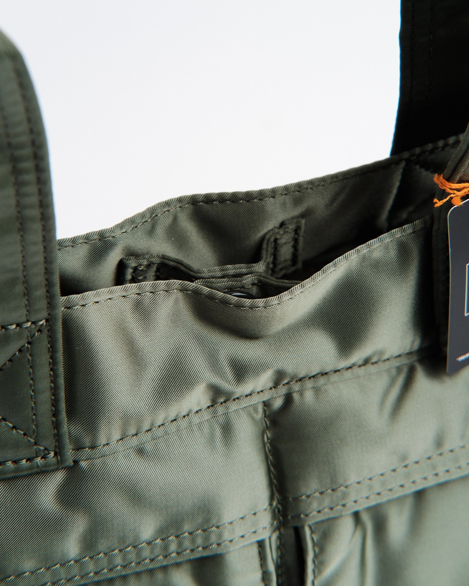 Tjek PORTER YOSHIDA 622 76995 30 TANKER TOTE BAG ud i en SALVIEGRØN nuance. Denne tote er en del af Tanker-serien, som havde sin debut i 1983 og hentede inspiration fra US Air Forces flyjakke MA 1. Fremstillet med en tre-lags blanding af nylon twill polyester bomuld og nylon taft, er denne taske let, men robust. Den livlige redningsorange foring tilføjer et pop af farve. Med et horisontalt design og to tanker-stil forlommer er den fantastisk til at bære must-haves som en 500ml vandflaske eller madkasse. Med målene B; 340mm, H; 240mm, D; 130mm (B; 13,4in H; 9,4in D; 5,1in) og en vægt på 325g (11,5oz) tilbyder den rigelig plads uden at gå på kompromis med stilen. Håndlavet i Japan viser denne taske Yoshida&Co.s sans for detaljer.