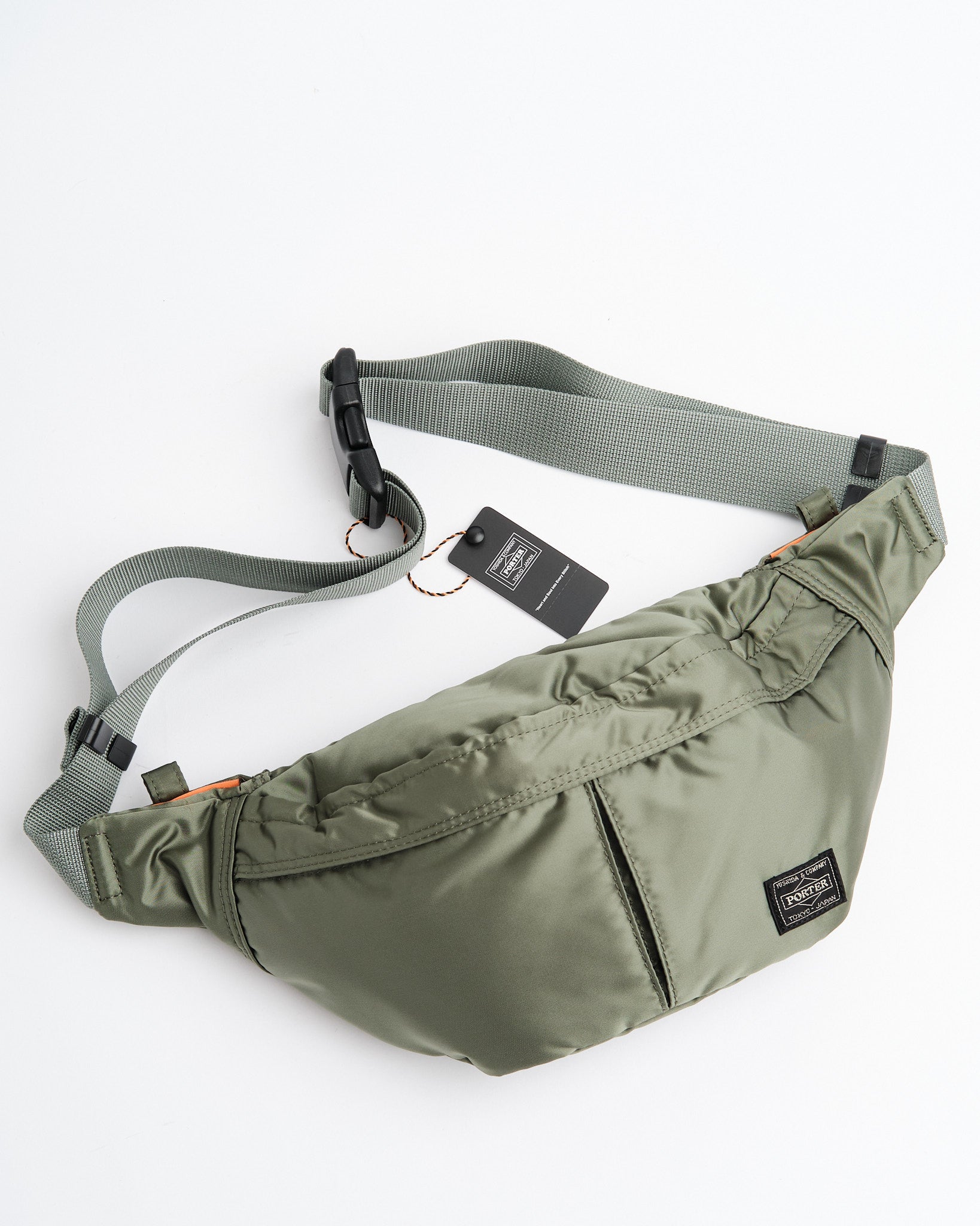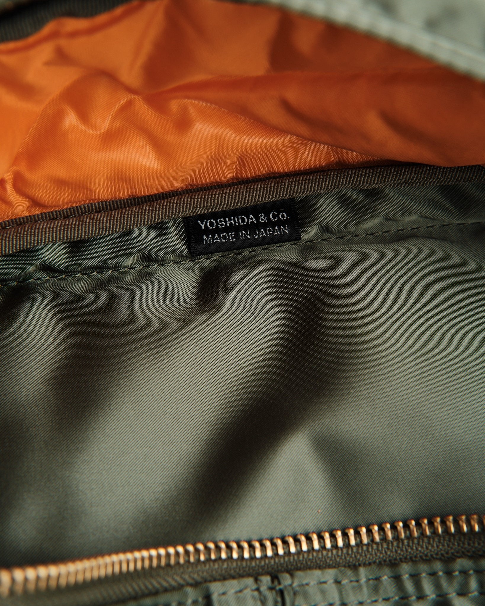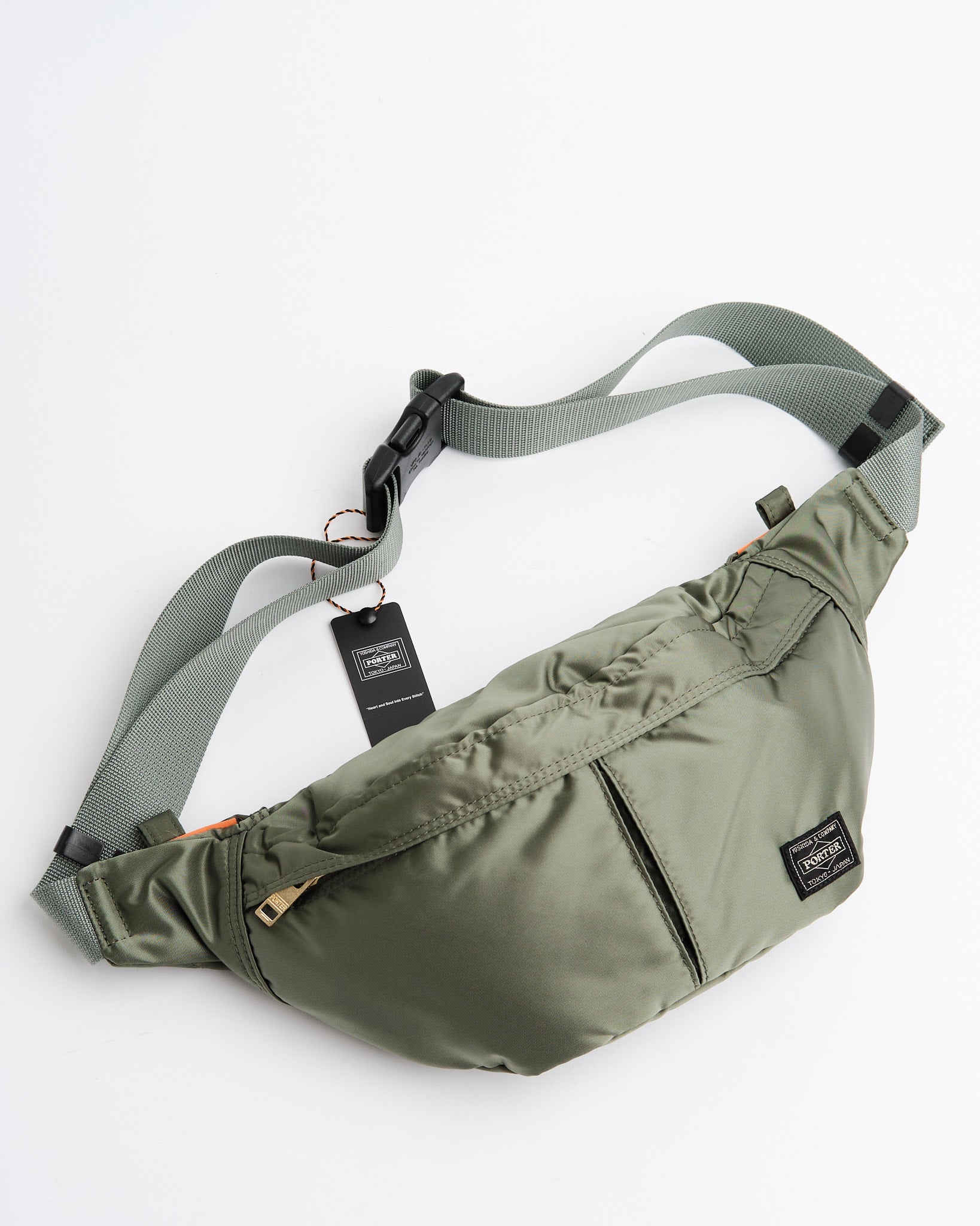 Introduktion af PORTER YOSHIDA 622-76629-30 TANKER WAIST BAG (S) i SAGE GREEN. En del af Tanker-serien, der først blev introduceret i 1983, anvender denne bæltetaske et unikt stof, der oprindeligt blev skabt til US Air Forces flyjakke MA 1, som inkluderer en livlig redningsorange indvendig foring. På trods af dens størrelse passer den bekvemt på kroppen og kan bæres som både en bæltetaske og en skuldertaske. Ideel til at bære nødvendigheder, som smartphones og tegnebøger, den kommer med tre lommer, to indvendige lommer, en bæltelomme og en baglomme med lynlås. Det lagdelte stof lavet af nylon twill polyester bomuld og nylon taffeta er letvægts, men holdbart og viser Yoshida&Co.s opmærksomhed på detaljer i håndværket ved hver vending.