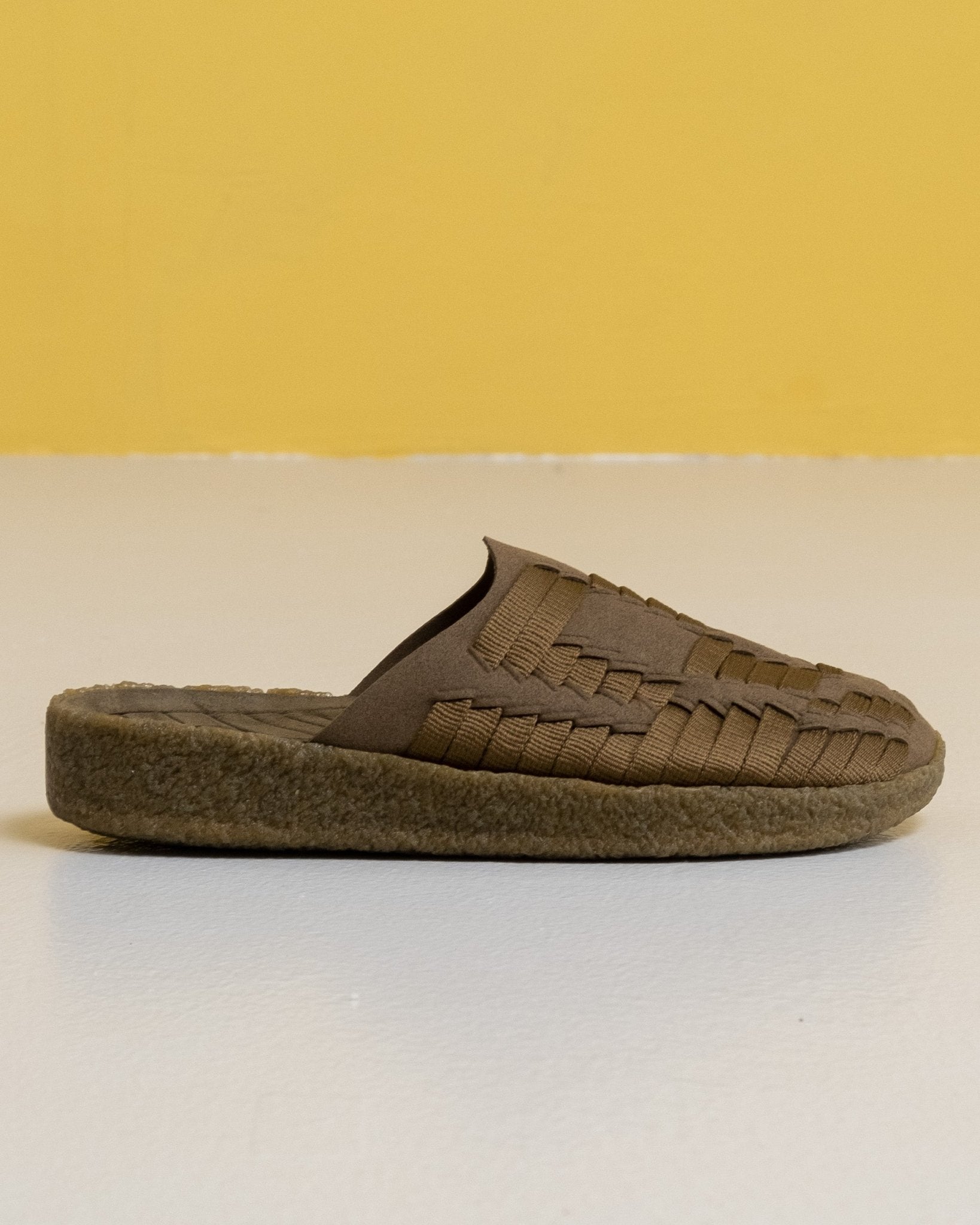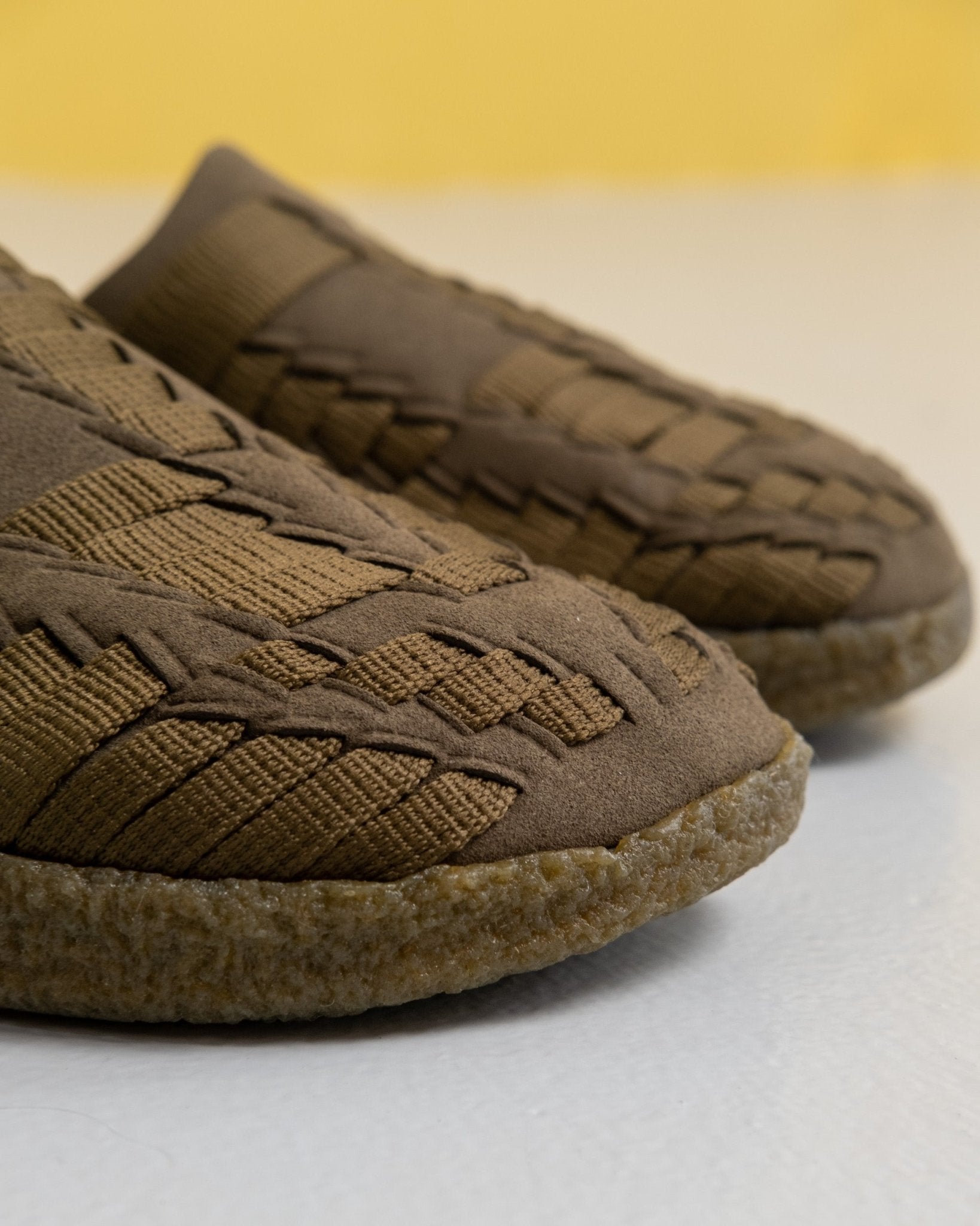 Thunderbird Suede/Vegan Læder Nylon Crepe Gum Sandaler Olive fra Malibu Sandals. Håndvævet mule overdel der tilbyder stor støtte med nylon og ruskind/vegansk læderremme lavet af syntetisk mikrofiber. Med en robust dobbeltdensitets ydersål polstret med en ergonomisk fodseng. Sålen er lavet af malaysisk crepe gummi ydersål. Passer i sand størrelse. Fremstillet i Cambodja.