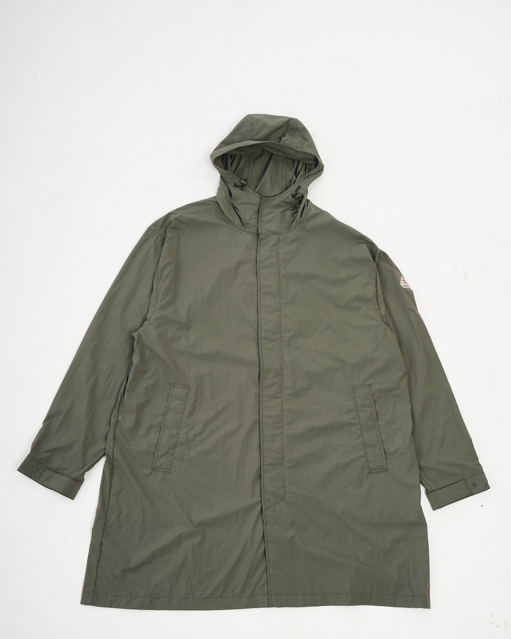 Pyrenex TORRENT 2 WINDBREAKER i Jungle er en unisex lang vindjakke, der forener elegance af en trenchcoat med praktisk anvendelighed af en ultralight frakke. Fremstillet af 100% genanvendt polyamid i overensstemmelse med vores tilgang til cirkulær økonomi, er denne jakke et miljøbevidst valg. Den har vandafvisende stof, der beskytter dig mod elementerne, samtidig med at den sikrer åndbarhed for at lede sved væk. Kompakt og nem at opbevare i dens dedikerede taske, er Torrent 2 en ideel rejsepartner til naturvandringer eller byudforskning. Den kommer udstyret med justerbar hætte og manchetter, lynlåslommer og det ikoniske Pyrenex mærke på venstre ærme. Kan vaskes ved 30° og egnet til tørretumbling ved lav temperatur.