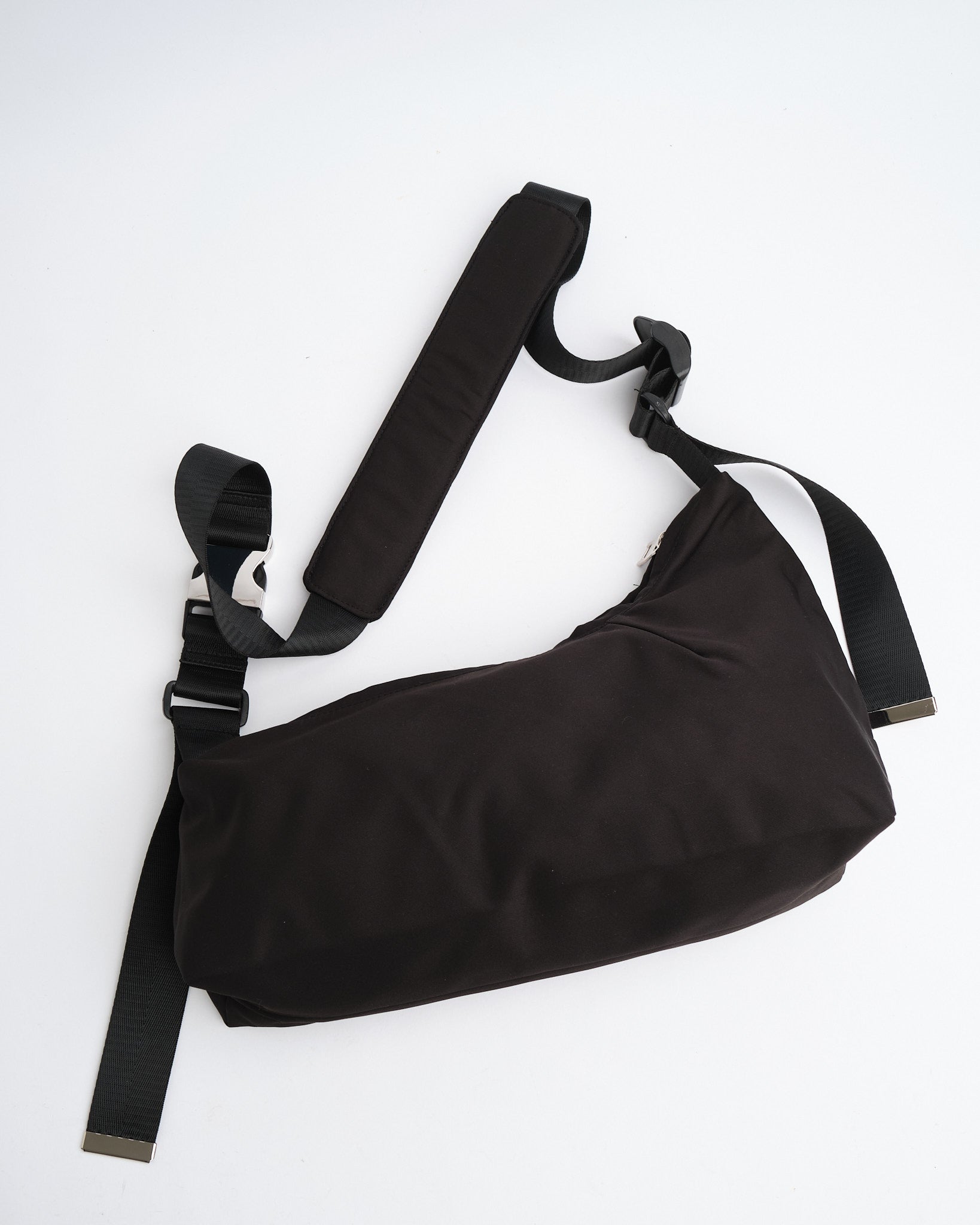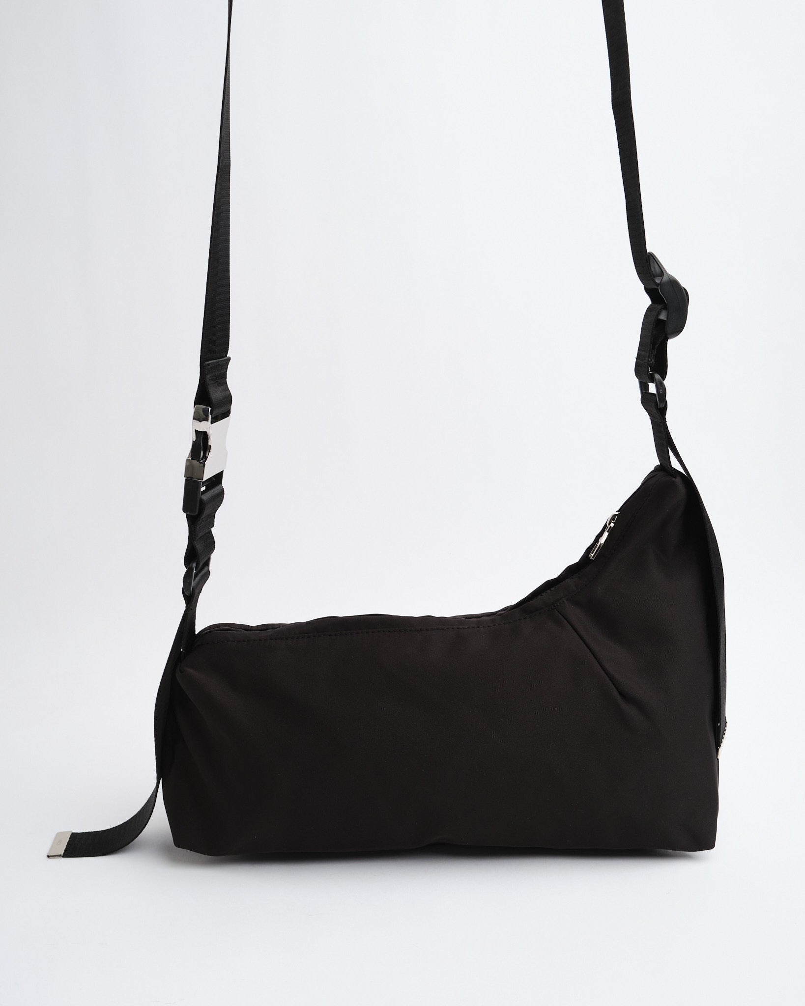 Bæredygtigt Materiale: Fremstillet af genanvendt polyester udledt fra plastikflasker, fremmer miljøansvar. Unikt Asymmetrisk Design: Har en karakteristisk form, der tilføjer et moderne touch til ethvert outfit. Justerbar Polstret Strop: Giver tilpasbar længde og øget komfort til brug på tværs af kroppen. Signatur Metalbeslag: Udstyret med mærkede metalaccents, forøger holdbarheden og stilen. Rummeligt Hovedrum: Tilbyder masser af plads til nødvendigheder, egnet til daglige aktiviteter. Intern Lomme: Indeholder en indvendig pose til organiseret opbevaring af mindre genstande. Stykkefarvet Stof: Hver taske gennemgår en unik farvningsproces, hvilket resulterer i unikke farvevariationer. Let Konstruktion: Sikrer nem bæring uden at gå på kompromis med holdbarheden. Alsiddig Sort Farve: En klassisk nuance, der komplementerer forskellige stilarter og lejligheder. Etisk Produceret: Afspejler ARCS Londons dedikation til ansvarlige produktionspraksisser.