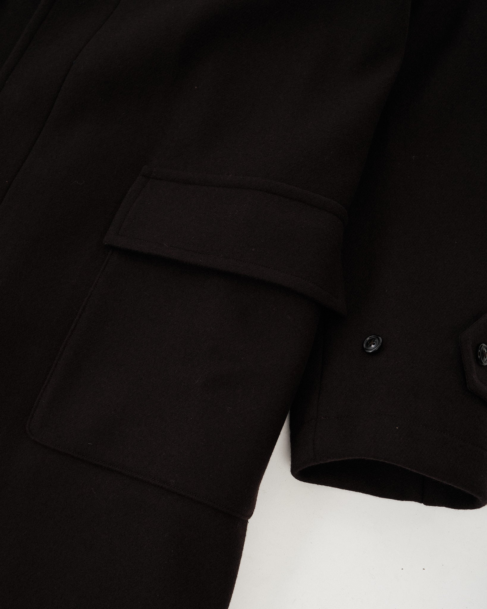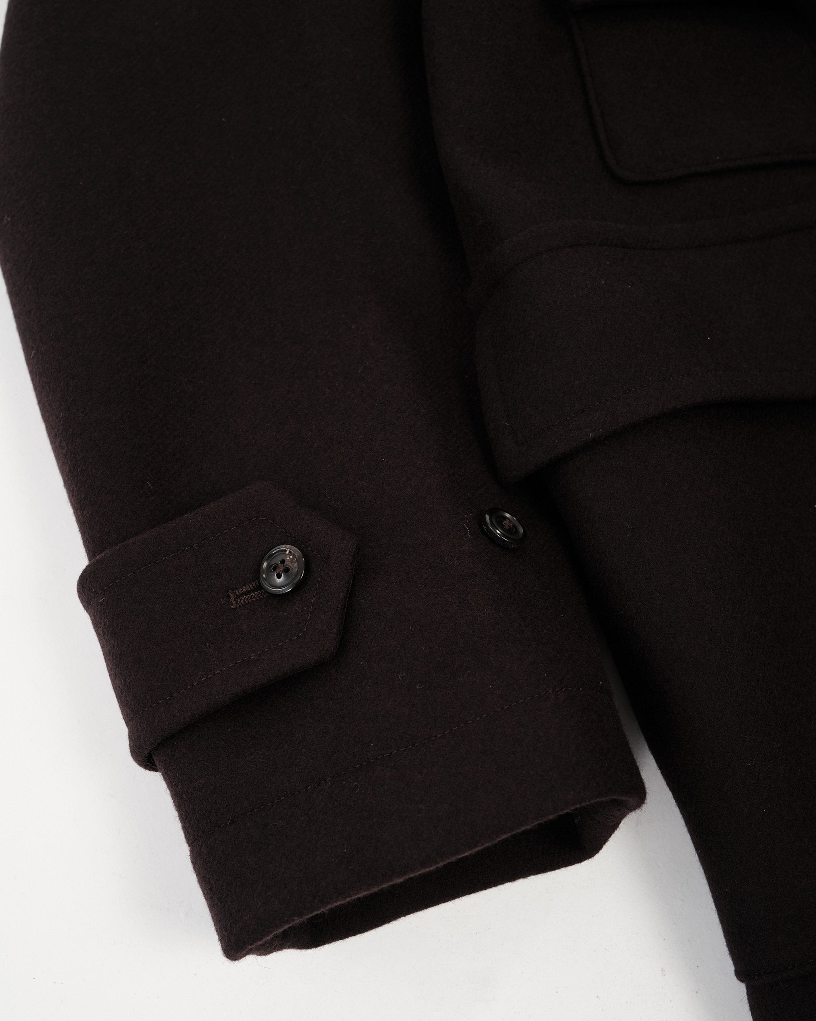 • Reverse Double Cloth Melton: Fremstillet af Super140's uldfibre for en perfekt balance af fasthed og lethed