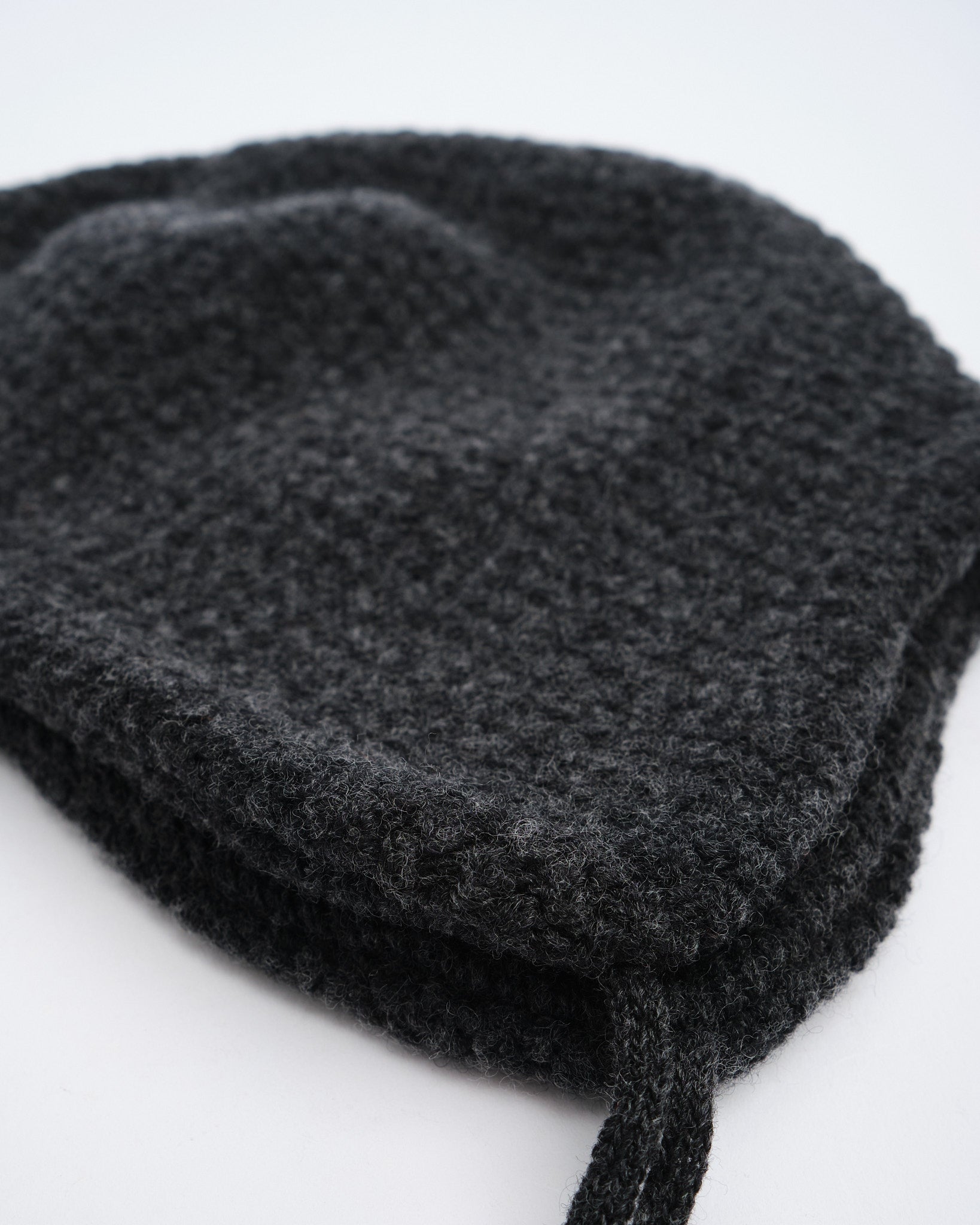 Trek Beanien i Charcoal fra Found Feather leverer varme, struktur og et subtilt udendørspreg. Fremstillet i Japan af en vaskbar lammeuldsblanding, den har et dobby kabelstrik mønster med et blødt børstet indre for hyggelig brug. De 8,5 cm ørepaneler giver ekstra dækning, mens selvgarn snøre og kvaster tilføjer klassisk detalje. Designet med en enkeltpanelet konstruktion og en unisex pasform, den er afsluttet med et vævet mærke og et QR-kodet plejemærke — den perfekte blanding af praktisk anvendelighed og stil.