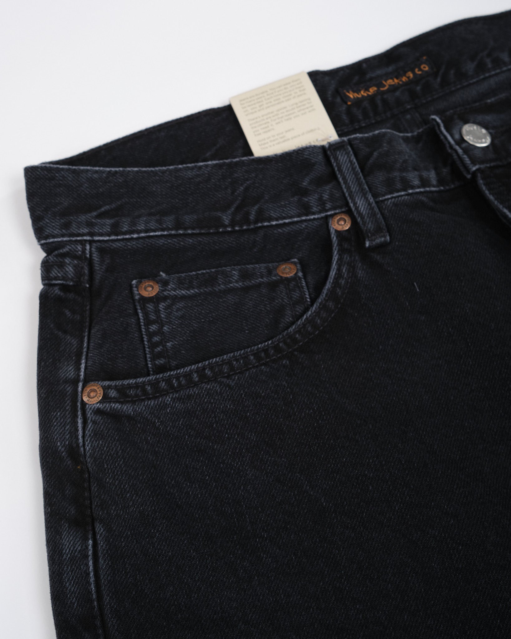Produktkode: 114756 Fremstillet af 100% økologisk bomuldsdenim. Afslappet pasform med et lige ben-silhuet. Sort Vintage vask med subtil falming for et autentisk look. Klassisk fem-lomme design for tidløs appel. Forstærket syning for øget holdbarhed. Afspejler Nudies engagement i bæredygtighed. Alsiddig stil til afslappet og hverdagsbrug. Designet for komfort og langvarig brug. Fremstillet af Nudie Jeans Co, kendt for høj kvalitet inden for denimhåndværk.