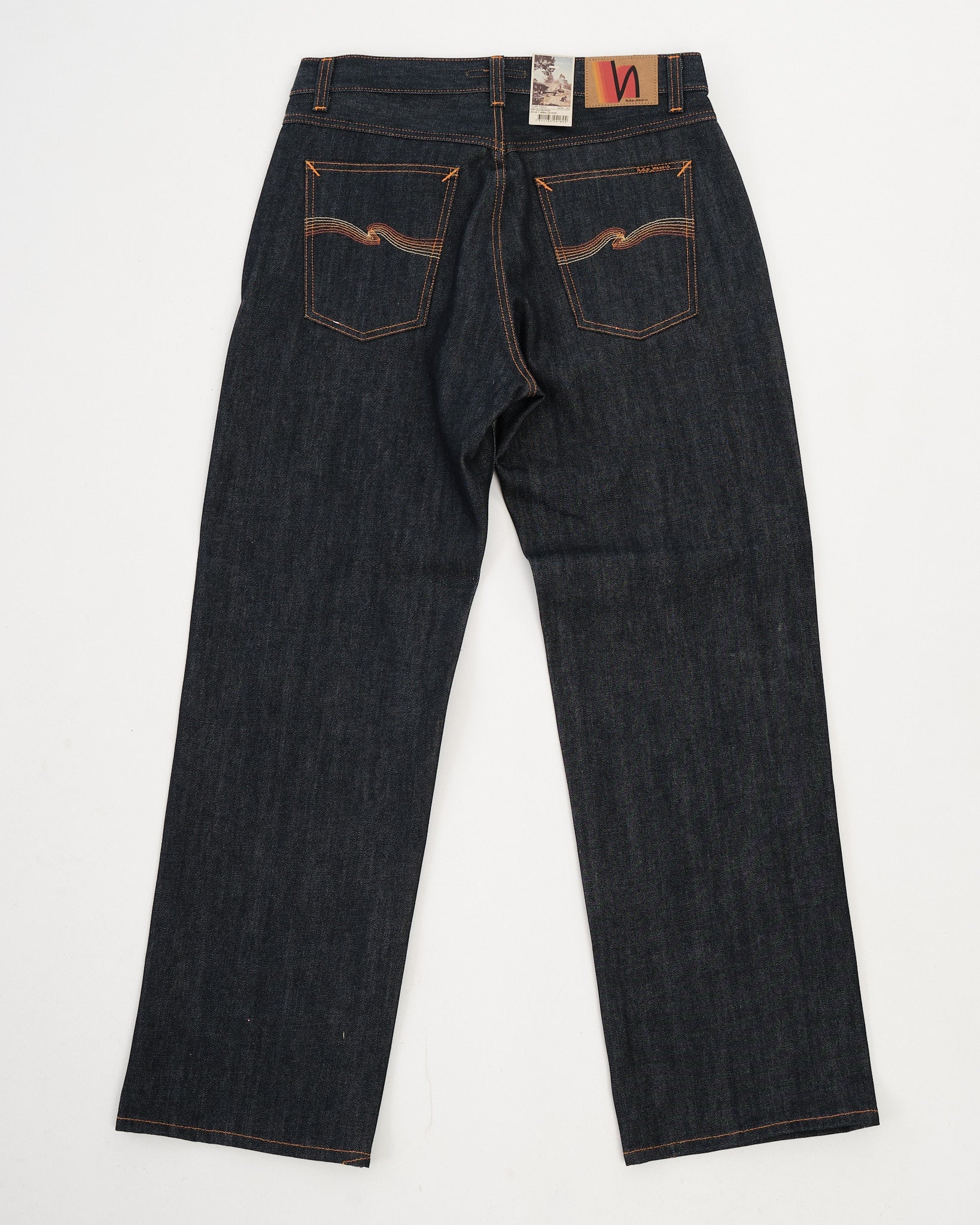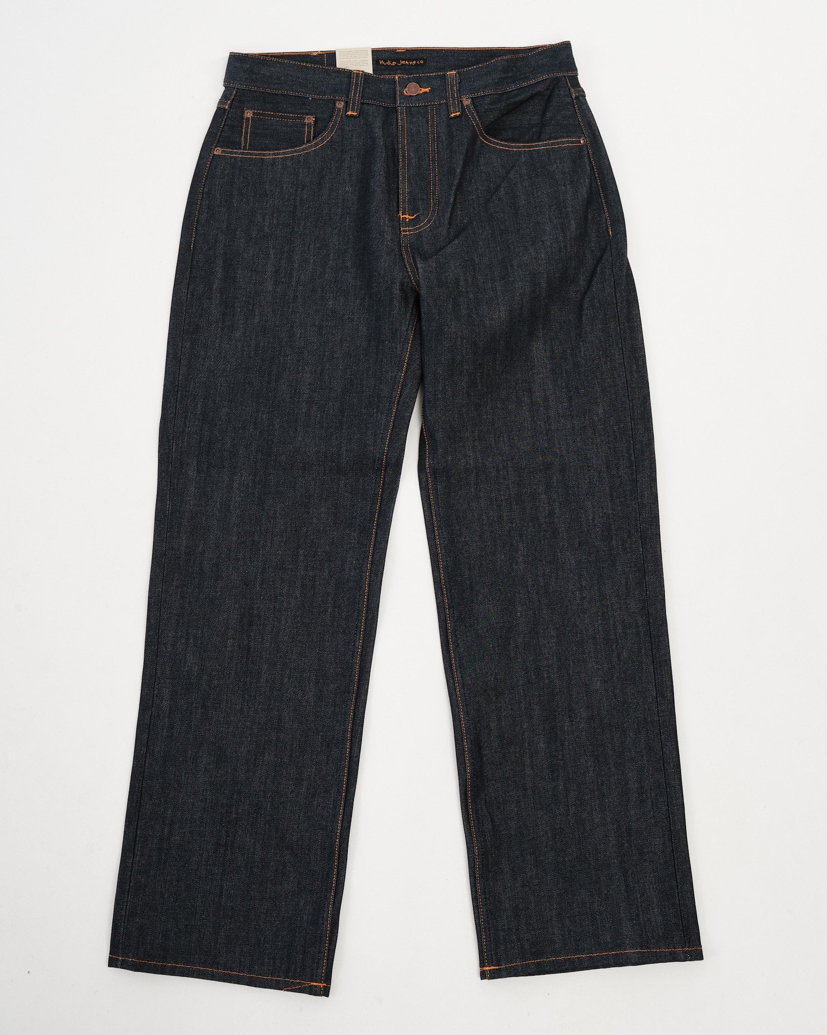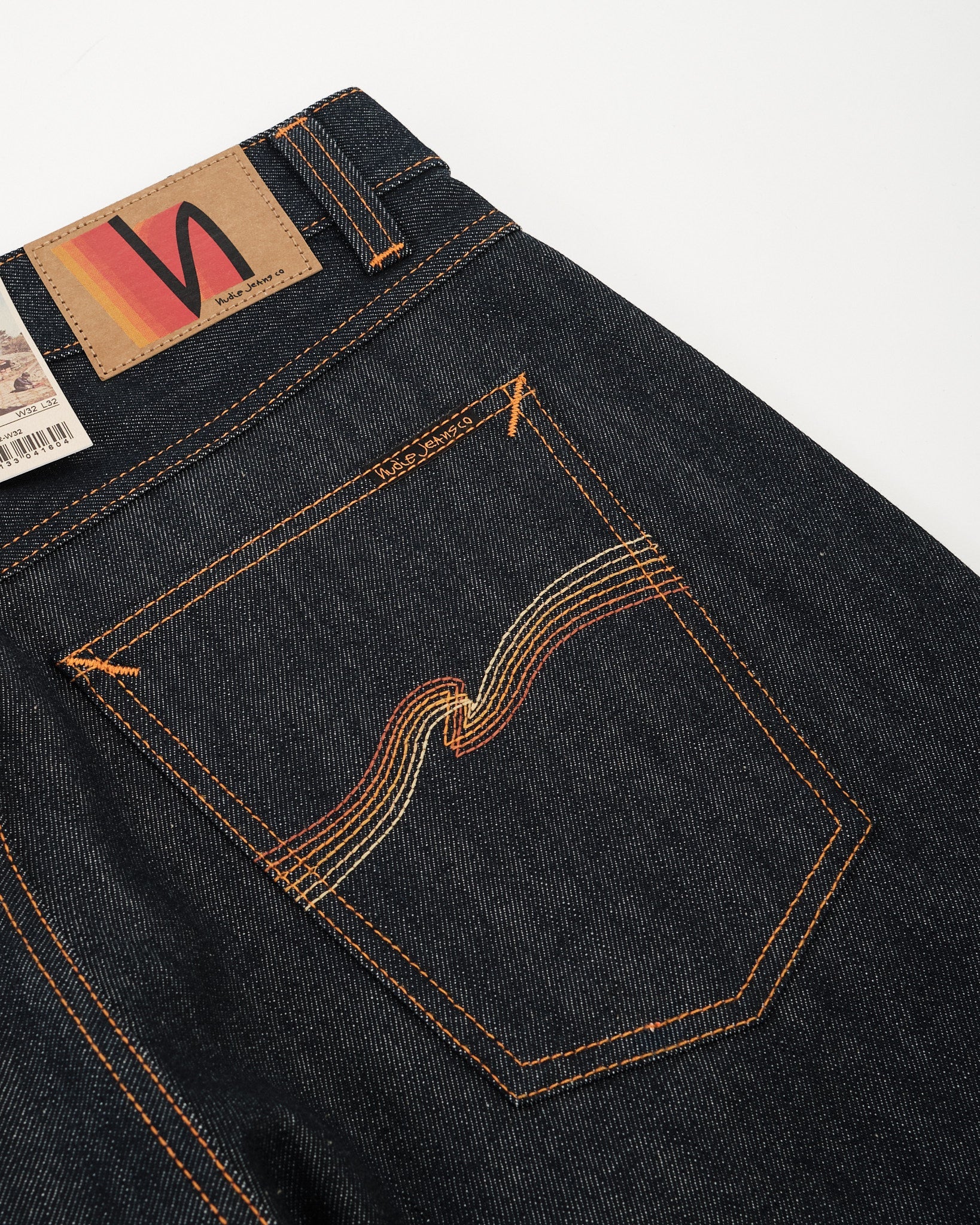 Mød Tuff Tony i Dry Sunburns — et udsagnsjeans, der blander Nudies kærlighed til stivt denim med et iøjnefaldende twist. Fremstillet af 14,2 oz regenerativt økologisk bomuld, bringer dette denim både holdbarhed og ansvarlighed til bordet. Det fremtrædende træk? En gradient "sunburns" broderi på baglommerne, der tilføjer et legende, men raffineret touch. Med en løs pasform, høj talje og bredt ben, er den bygget til dem, der kan lide deres jeans med personlighed og formål. Afsluttet med orange tråd, kobbertrim og Nudies signatur jacron patch, er dette par klar til at vende hoveder.