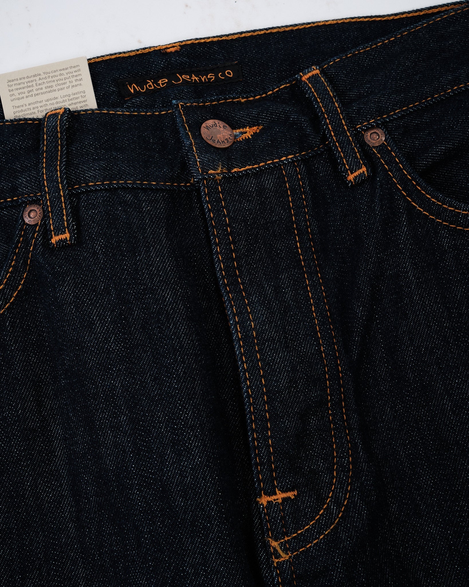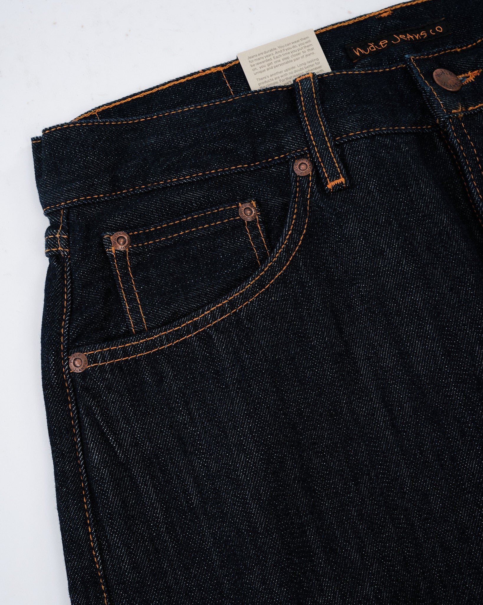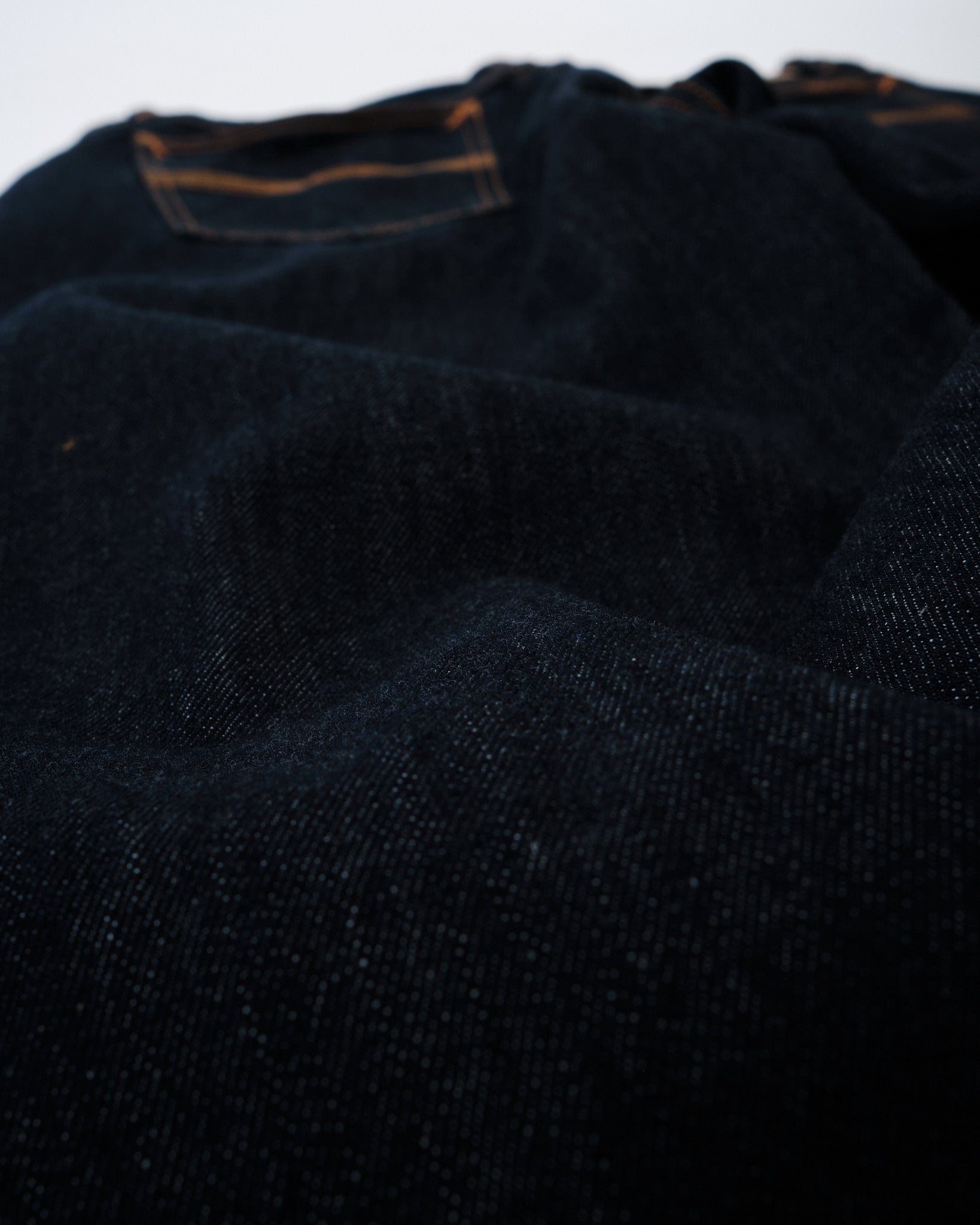 Inspireret af den simple skønhed ved en enkelt hjemmevask af tør denim, har dette par en dyb blå vask, der naturligt skifter fra mørkeblå til en rig, rødlig blå over tid. Fremstillet af vintage-stil dyb indigo denim med medium slub karakter, gennemgår stoffet en transformation—som forbedrer dets tekstur fra glat til smukt uregelmæssigt og robust.