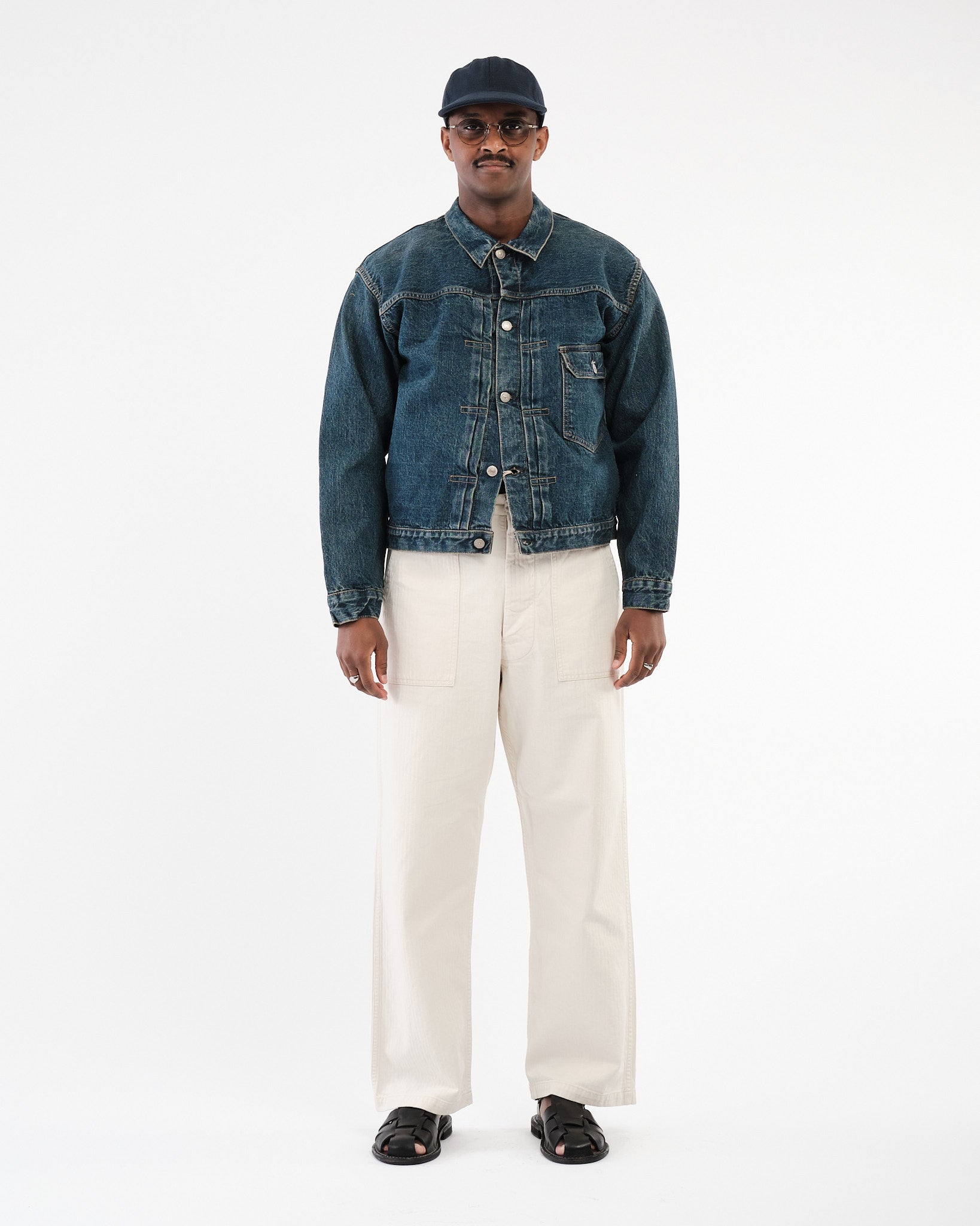 The orSlow Type 1 40's Pleated Front Blouse i 2 Year Wash er en hyldest til klassisk arbejdstøj fra 1940'erne, genfortolket med førsteklasses håndværk og en tidløs æstetik. Fremstillet af 100% bomuld selvedge denim, kombinerer dette stykke holdbarhed, komfort og en smukt ældet finish, der replikerer to års naturlig slid.