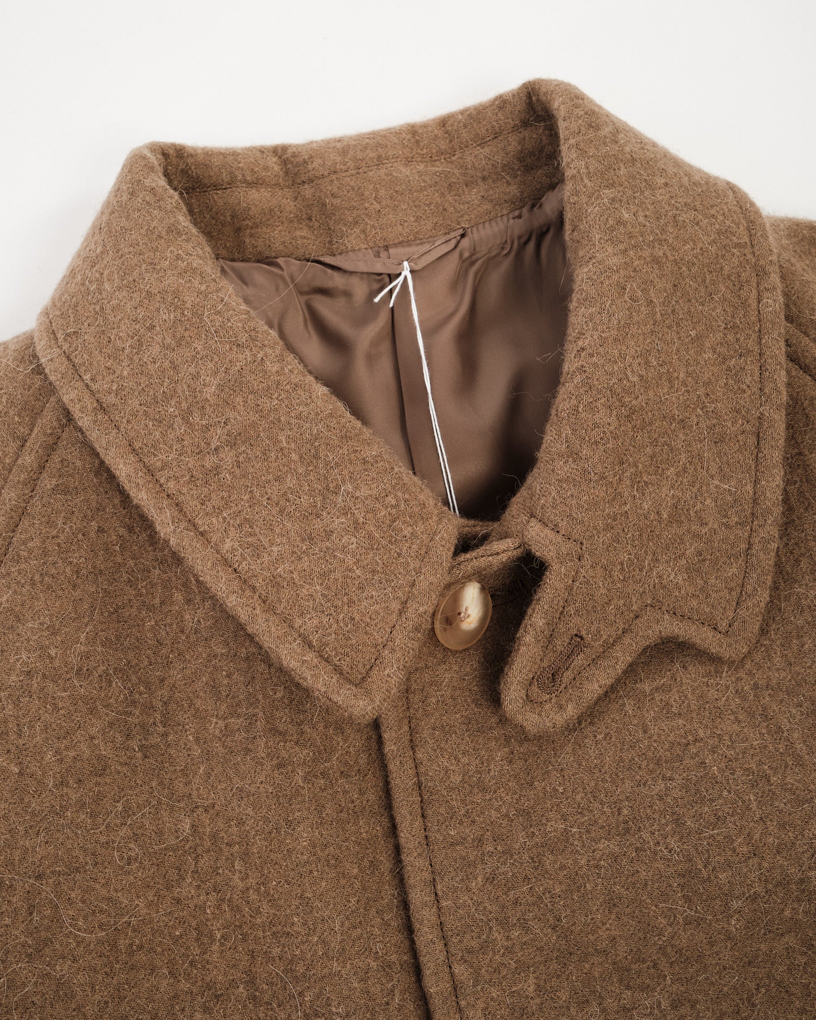 The Umbrella Coat from Kaptain Sunshine is a masterclass in Japanese craftsmanship and refined outerwear design. Made from a luxurious double cloth woven slowly and densely from a warm blend of llama alpaca and merino wool, it offers both softness and structure. The fabric has been carefully felted to add body and texture without excess weight. Fully lined for comfort, this relaxed-fitting coat drapes beautifully while keeping you warm through the colder months. Made in Japan with Kaptain Sunshine’s signature dedication to quality and timeless style.
