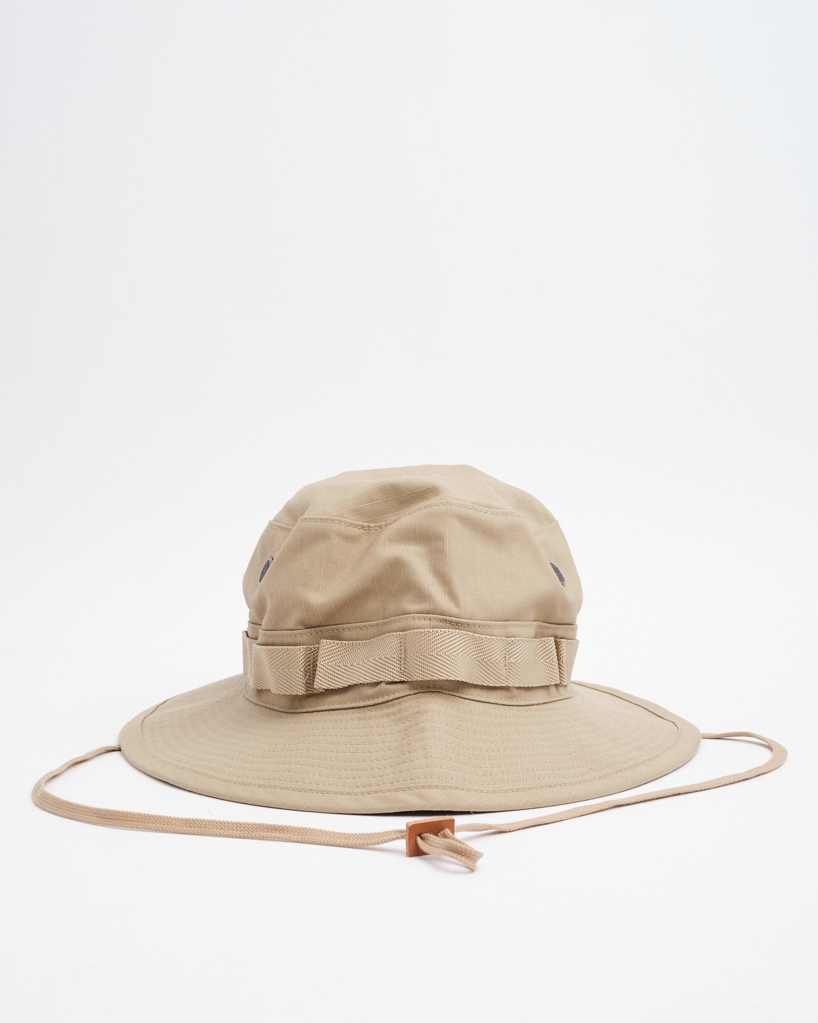 Præsenterer orSlow US Army Jungle Hat i Ripstop Beige—en unisex, sæsonfleksibel hovedbeklædning perle, der pakker stil og funktionalitet. Fremstillet i Japan af 100% bomuld ripstop, er den designet til holdbarhed og alsidig anvendelse. Hatten har mesh ventilation og nylon nyttesløjfer, hvilket gør den til dit foretrukne valg til ethvert eventyr.